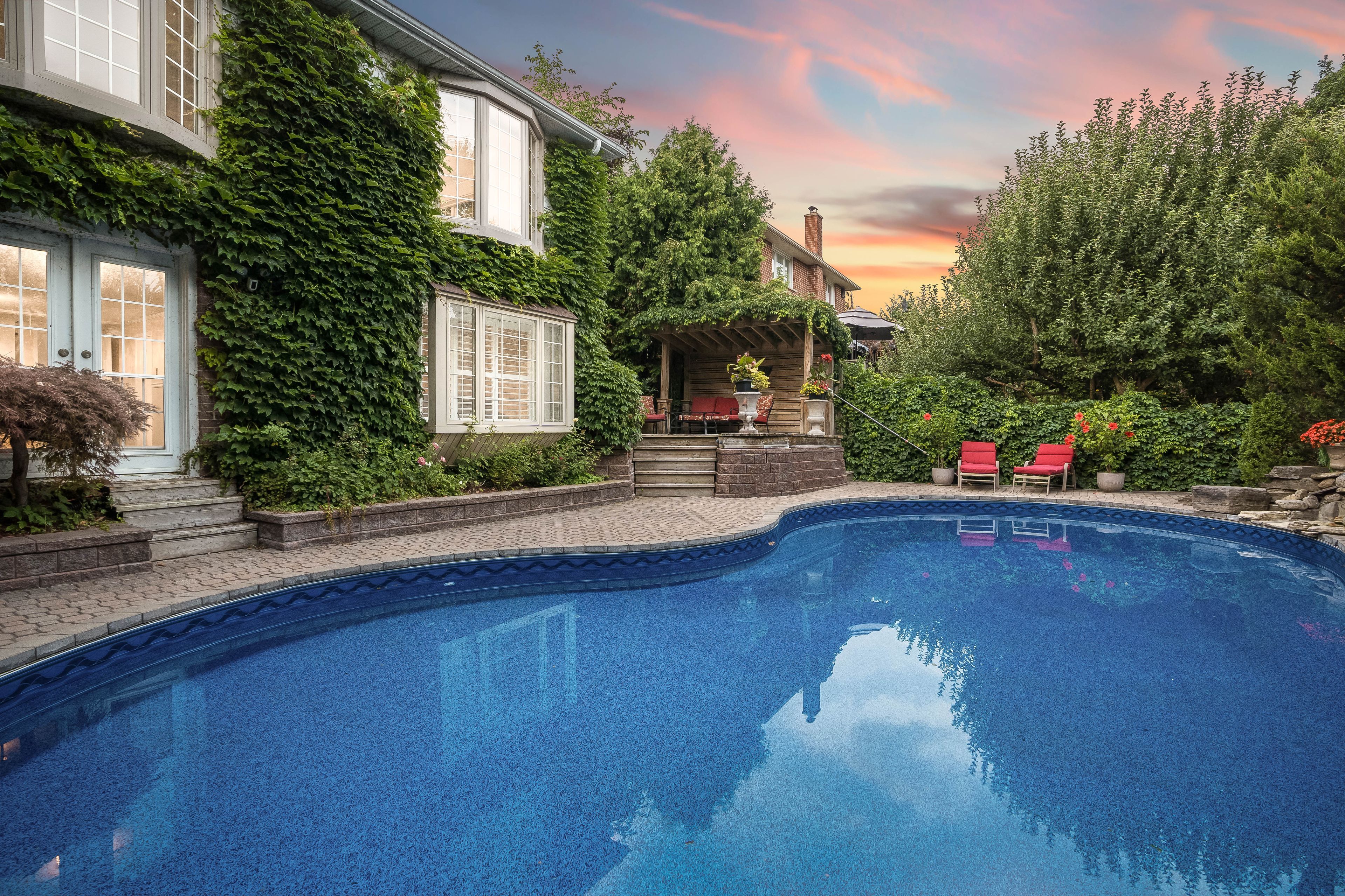 Top 5 reasons you will love this home: 1) welcome to this meticulously cared-for custom residence, perfectly situated in one of newmarkets most prestigious executive neighbourhoods, quietly tucked away on a family-friendly court just steps from top-tier schools, premier shopping, daily essentials, and convenient transit 2) retreat to your private backyard oasis on a premium pie-shaped lot, showcasing an 18'x36' saltwater pool with a brand-new water cell pump and liner, a serene waterfall, a rejuvenating hot tub, and multiple walkouts designed for seamless indoor-outdoor living, ideal for hosting or unwinding under the stars 3) enhanced by a custom top-level addition completed in 2007, this home exudes both charm and practicality, featuring a striking central skylight, a piano staircase, and thoughtful touches like a convenient laundry chute that make everyday living effortless 4) the centre piece of the home is the spectacular bloomsbury kitchen (2019), a true entertainers haven with oversized islands, refined finishes, sleek recessed lighting, elegant crown moulding, and four direct walkouts to the outdoor living spaces 5) a fully finished basement presents exceptional flexibility, easily configured as an in-law suite or income-generating apartment, with abundant living space and a layout that adapts to meet the needs of modern family life. 3,079 above grade sq. Ft. Plus a finished basement. *please note some images have been virtually staged to show the potential of the home.