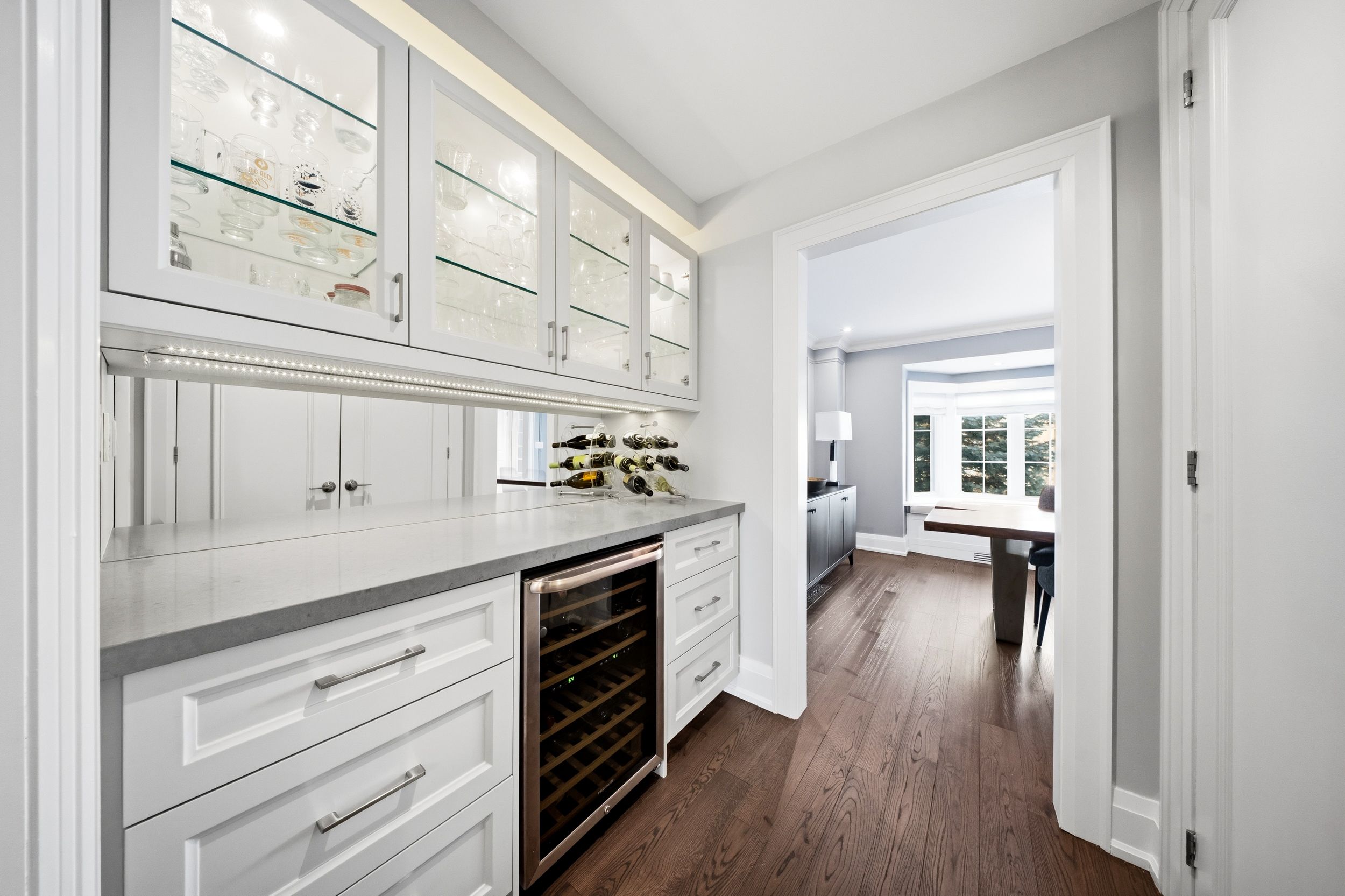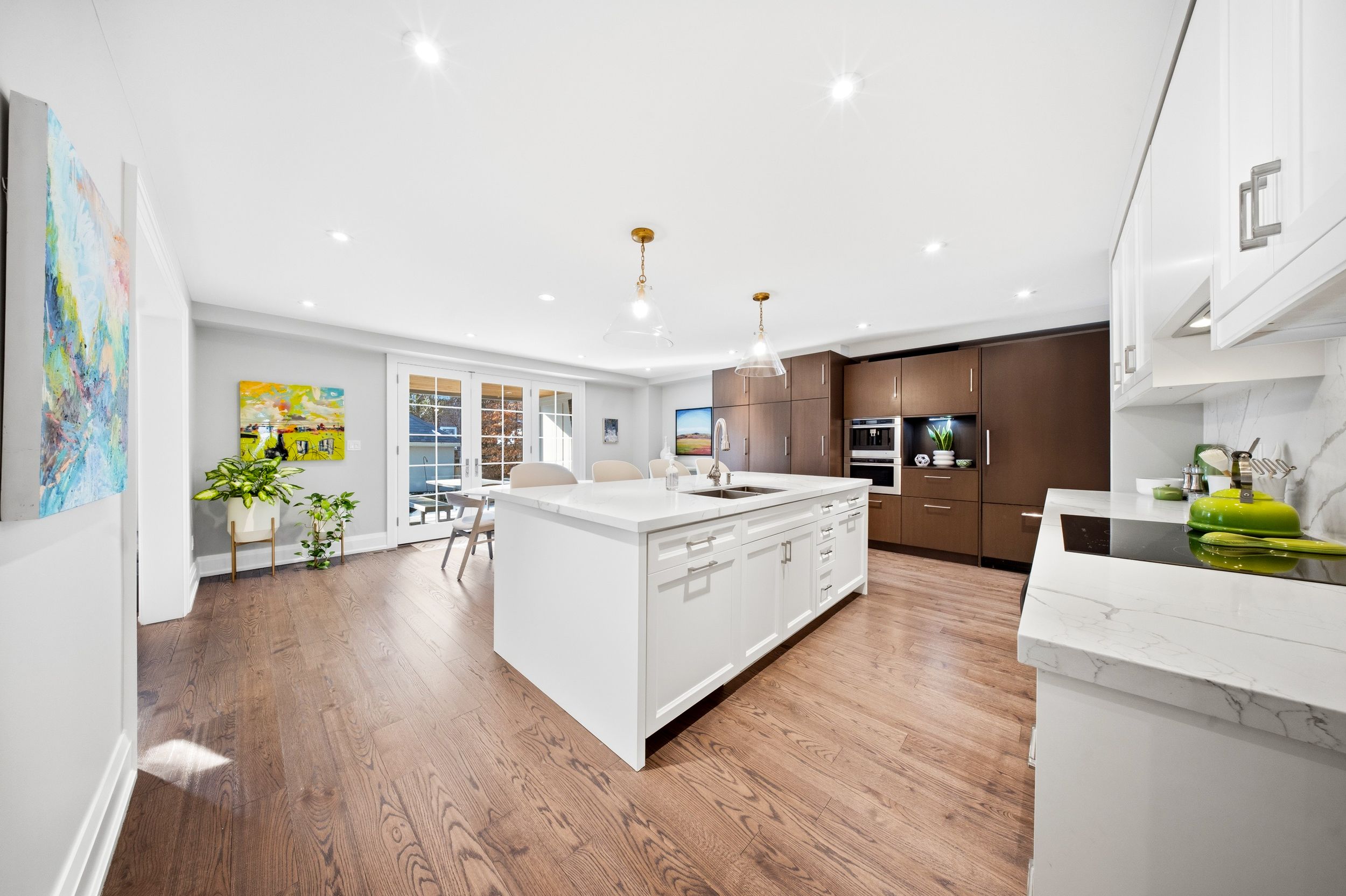 Fully renovated and thoughtfully updated, this exceptional 4+2 bedroom, 4-bath residence blends timeless design with everyday functionality. Set on a coveted kingsway street with a striking natural stone exterior, the home features refined finishes throughout, including limestone and marble floors with inlays, " oak hardwood, custom cabinetry and millwork, decorative plaster mouldings and wainscoting, solid core doors, and beautifully proportioned principal rooms. Offering approximately 3,855 sq ft of well-planned living space, every detail is designed for both stylish entertaining and comfortable family living. Professionally landscaped and fully fenced, the private backyard has been curated for both relaxation and play, featuring a covered rear patio, built-in bbq with fridge, and a putting green. A detached shed has been transformed into a year-round office space, ideal for working from home or creating a private studio retreat. Interior access to the garage adds everyday convenience, while the finished lower level provides excellent flexibility with potential for a nanny or in-law suite plus abundant storage. Just steps to the kingsway shops and dining, the subway, and located within the highly regarded lambton-kingsway school district.