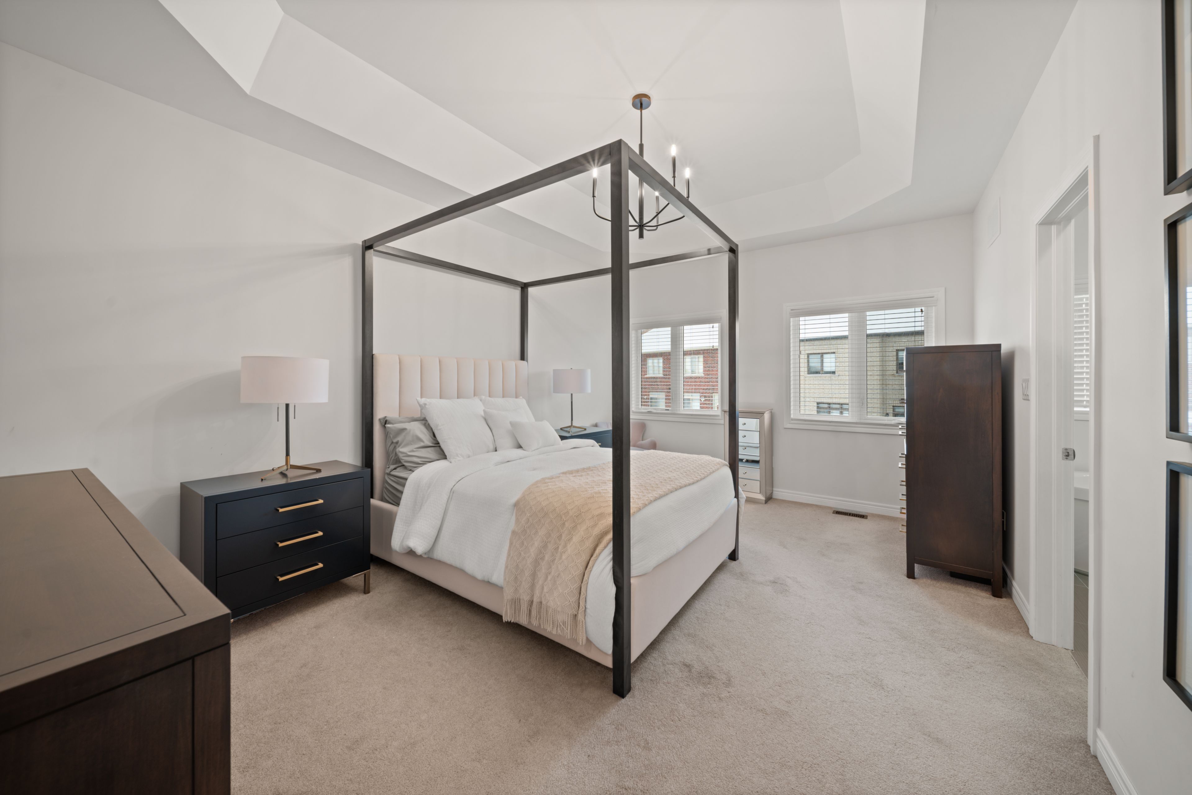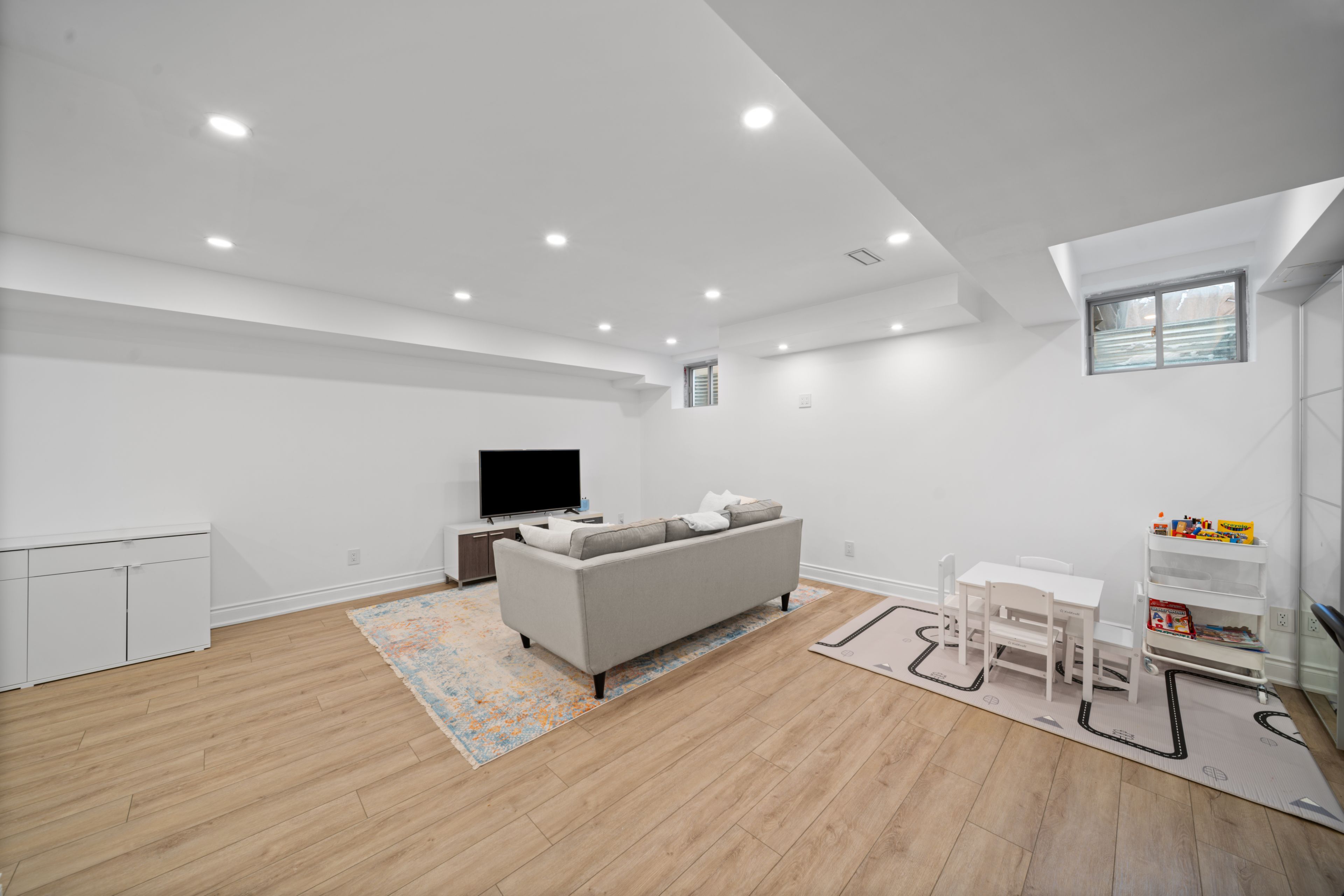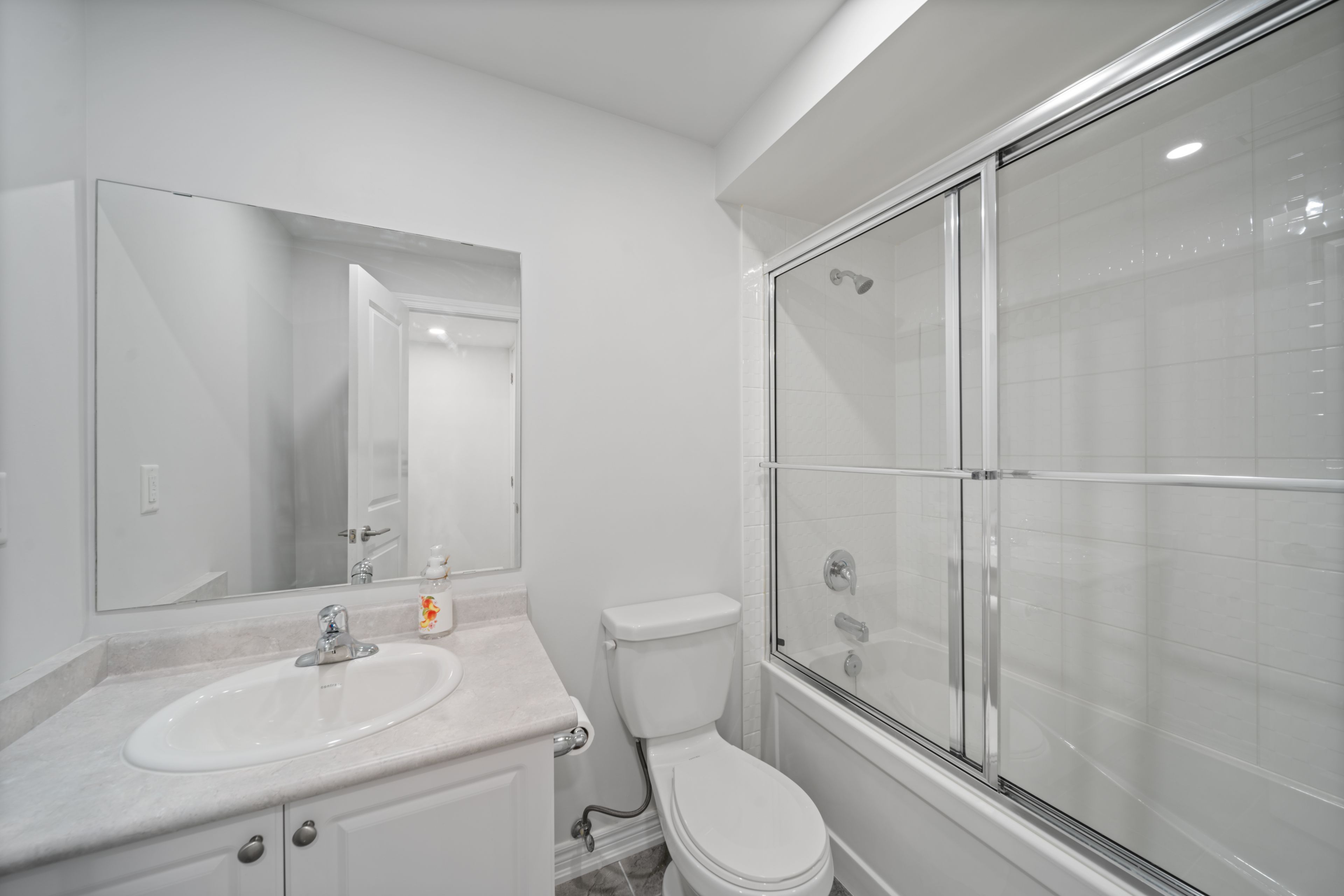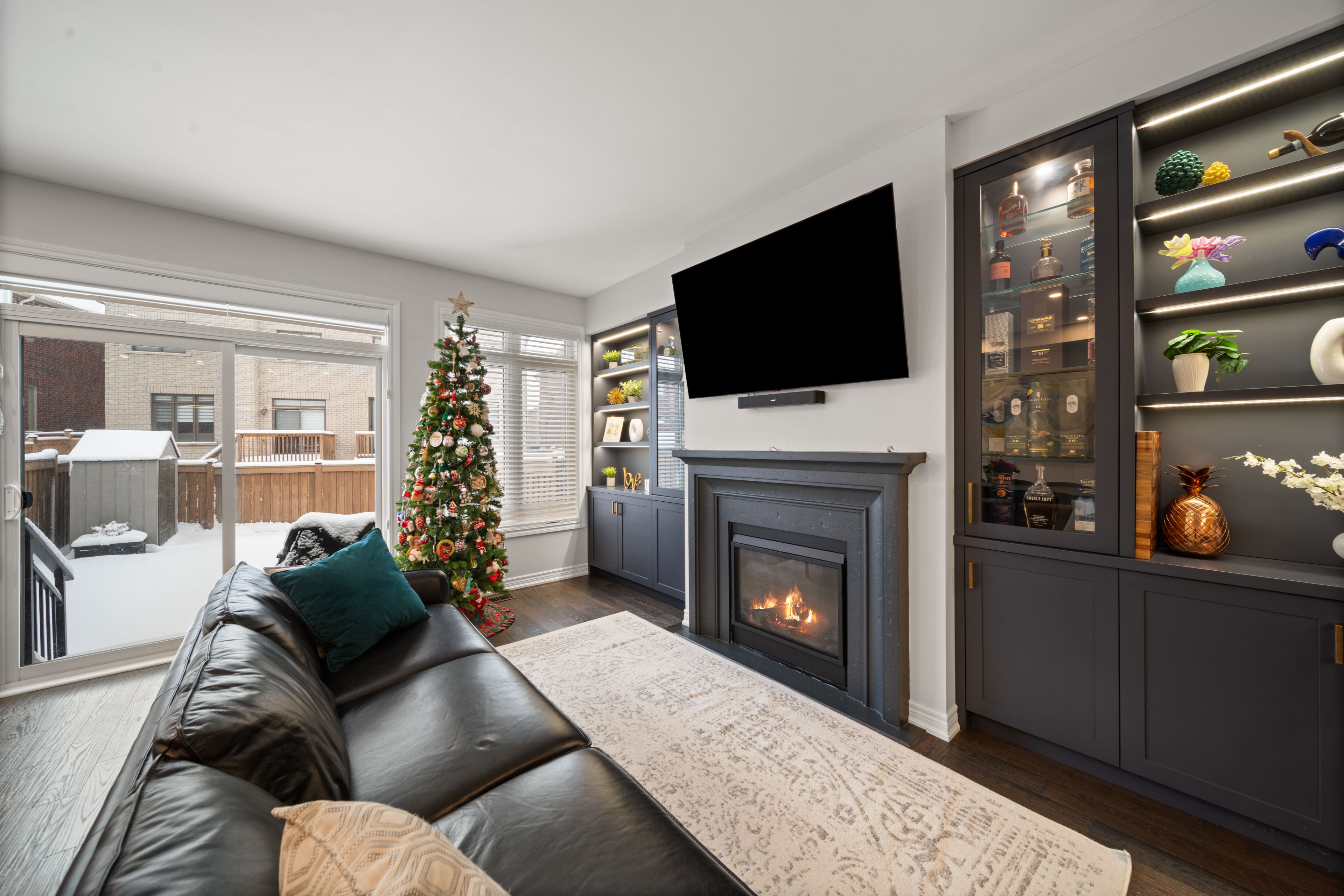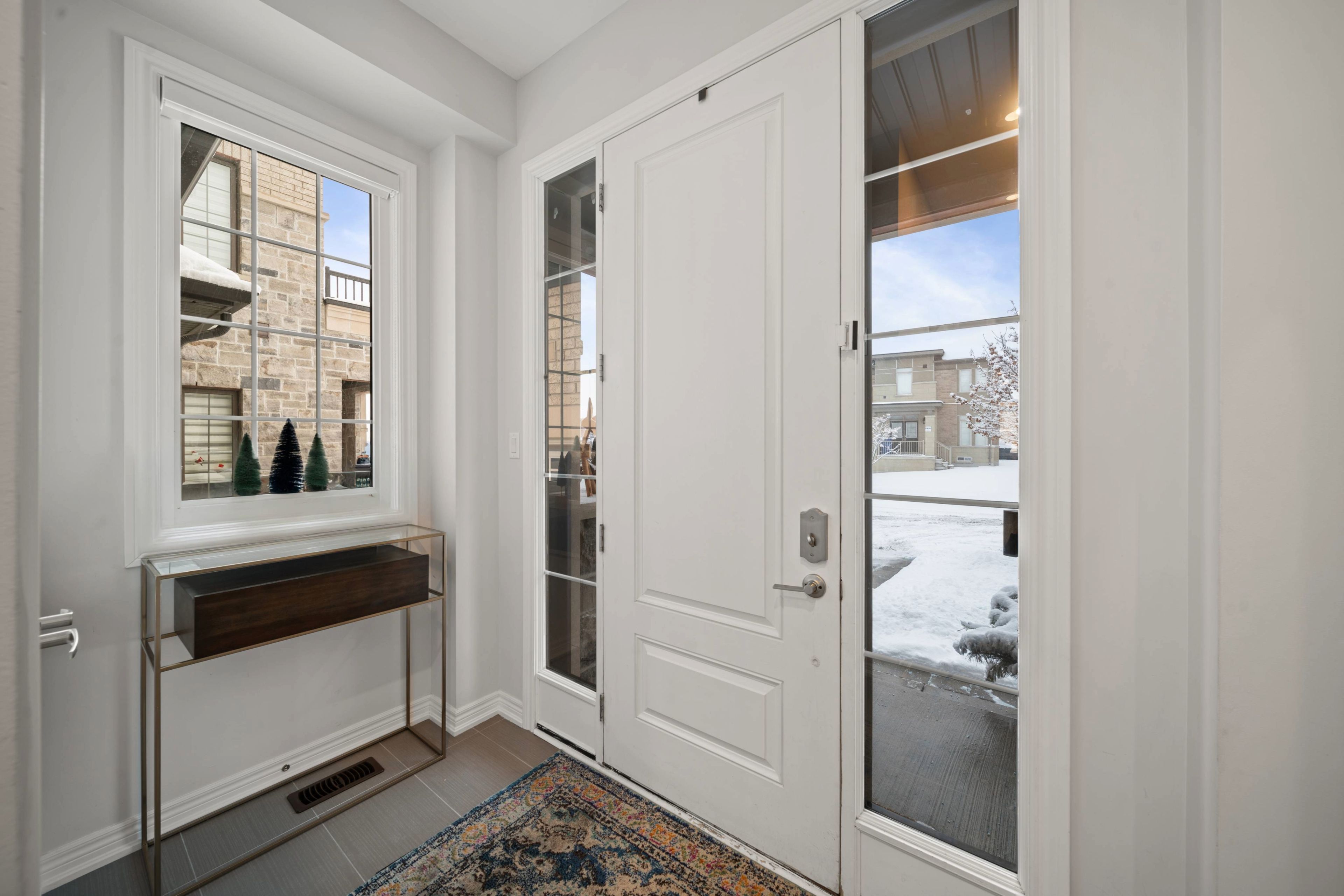 Welcome to this stunning townhouse located in the highly sought-after aurora trails community. This beautifully upgraded home features an open-concept design with smooth ceilings, pot lights, and hand-crafted hardwood throughout. The living area is anchored by a gorgeous fireplace surrounded by a built-in bookshelf. Spacious modern kitchen complete with granite countertops and large family sized island. Enjoy 9 ft. Ceilings on both the main and second floors. The home also includes a convenient second-floor laundry updated in 2021 and a fully finished basement renovated in 2023, perfect for additional living or entertainment space. The fenced backyard offers a patio, gas hookup for bbq and a shed set on a concrete base. The luxurious primary ensuite features a free-standing tub and a glass-enclosed shower. With countless upgrades throughout, this home is truly a must-see!