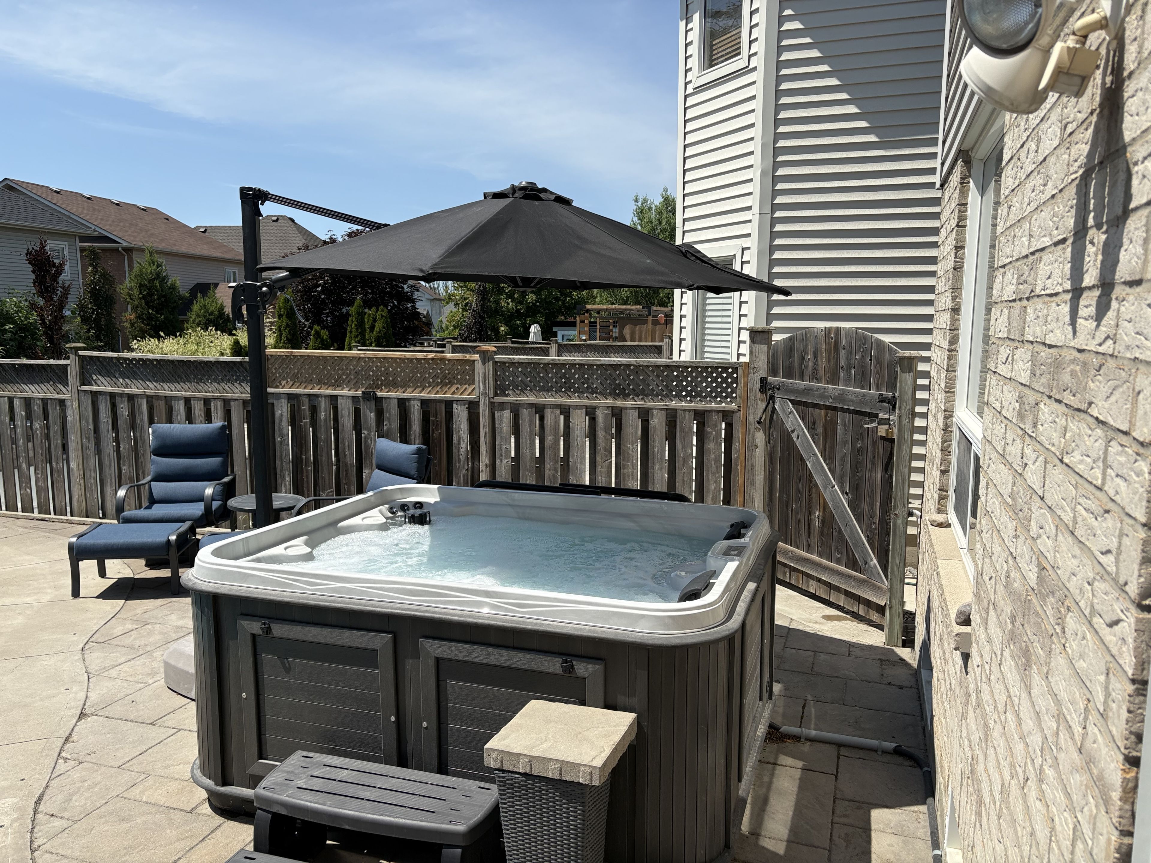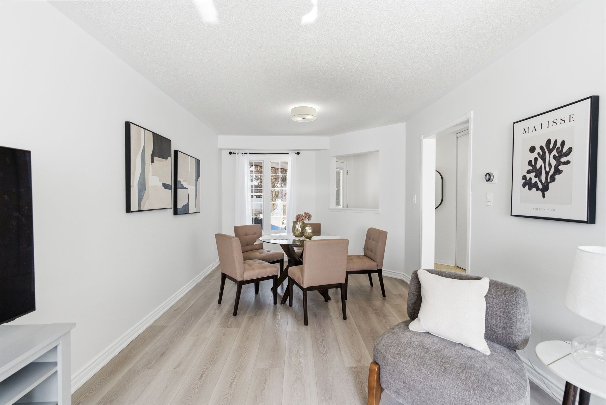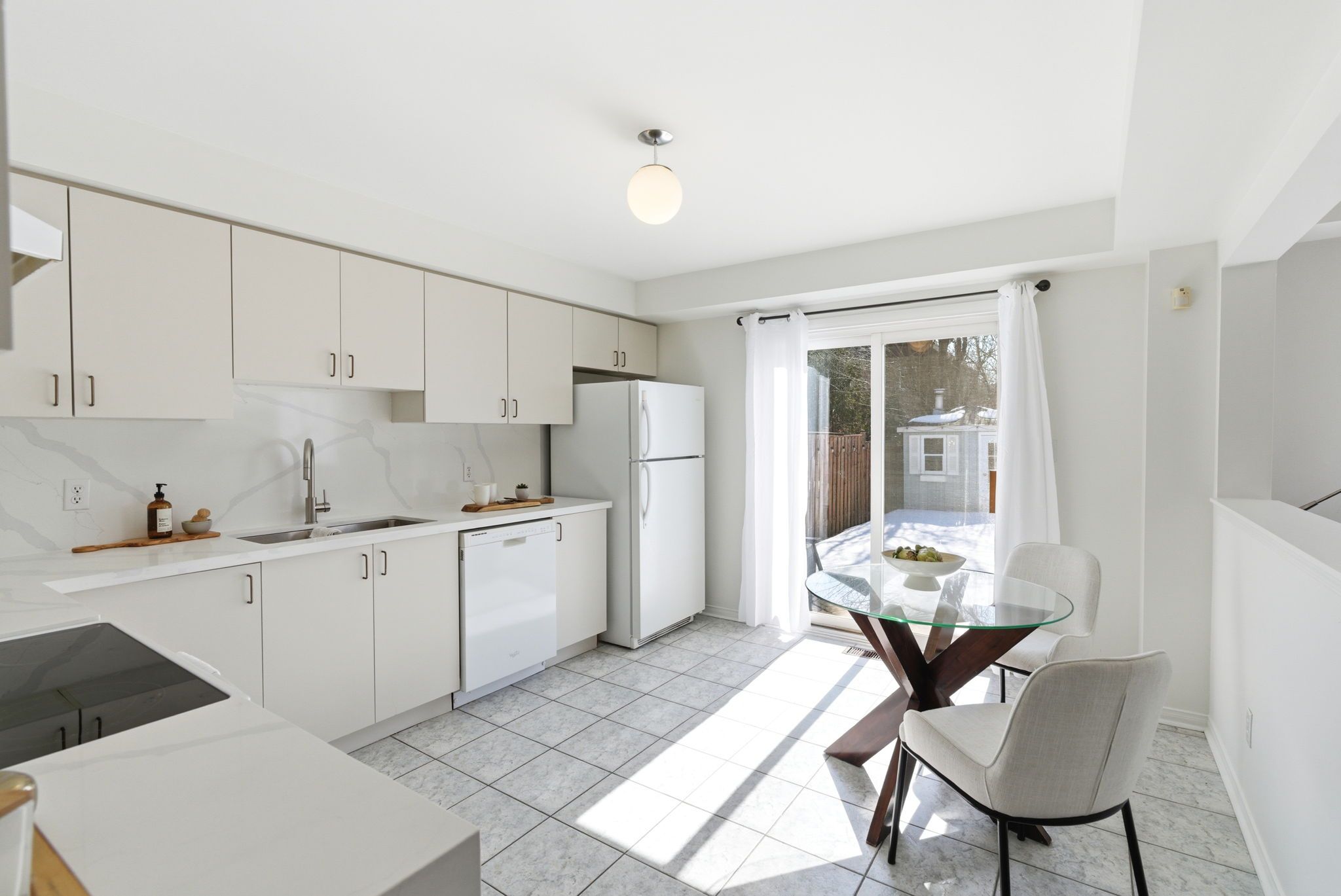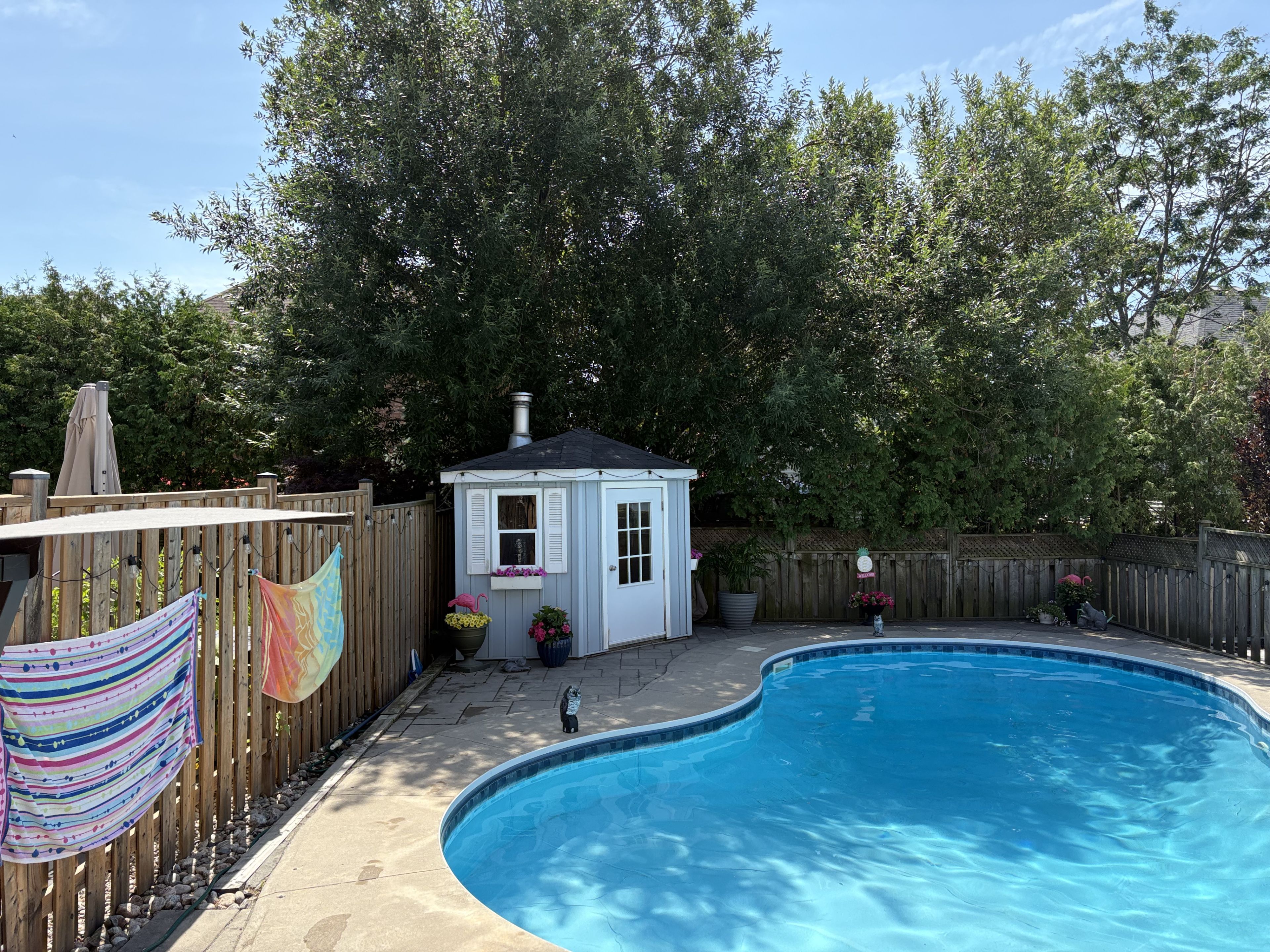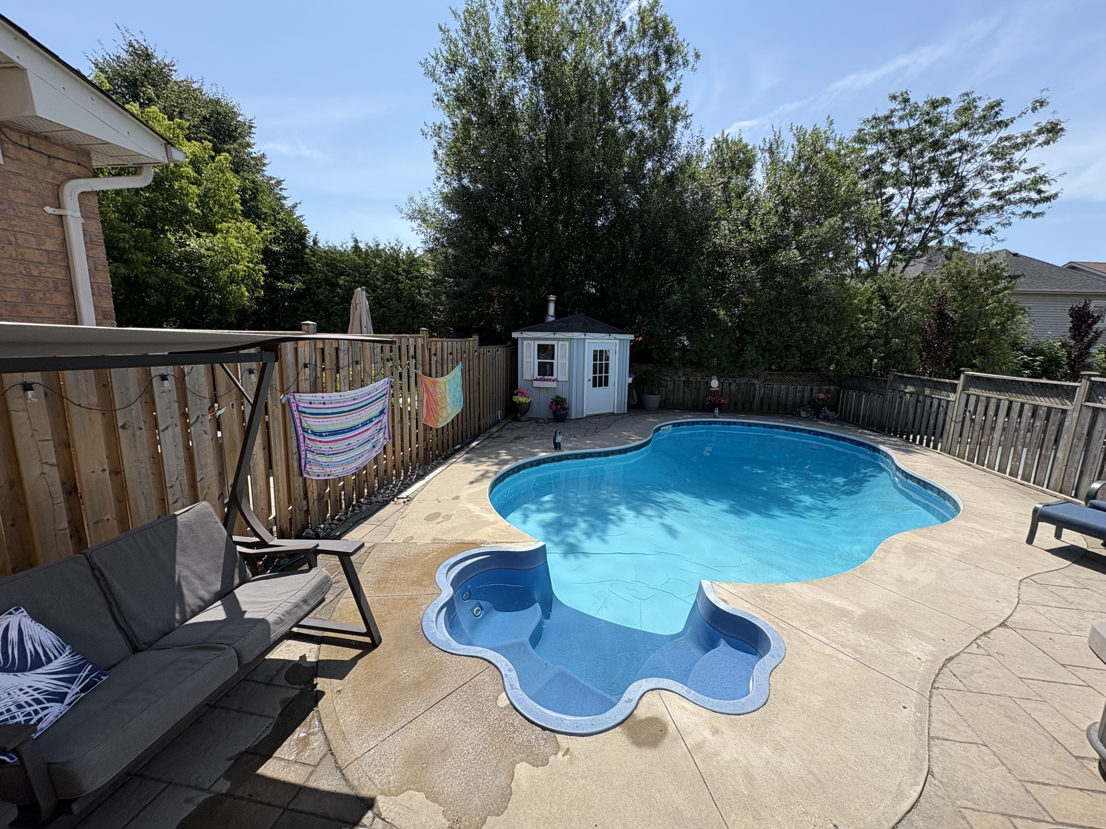 Welcome to this inviting family home offering bright, open living spaces and a beautifully landscaped backyard retreat, ideally located in the desirable port of whitby community just moments from the lake, waterfront trails, marina, and parks. The main level features a spacious open-concept living and dining room with luxury vinyl wide plank flooring, creating a seamless layout that is ideal for both everyday living and entertaining. The living room overlooks the backyard, while the dining area enjoys views of the front yard, filling the space with natural light. The eat-in kitchen offers ceramic flooring, ample space for family meals, and a convenient walkout to the backyard, perfect for easy indoor-outdoor living. Upstairs, the primary bedroom provides a comfortable and private retreat, complete with a walk-in closet and a four-piece ensuite bathroom. Two additional bedrooms on the second level feature broadloom flooring, closets, and bright windows, offering great space for family, guests, or a home office. The finished basement adds valuable living space with a large recreation room featuring broadloom flooring and windows, making it ideal for relaxing, entertaining, or creating a play or media area. Step outside to a fully landscaped backyard designed for summer enjoyment. The yard features a beautiful inground pool with a pool shed, a spacious deck perfect for outdoor gatherings, and a premium hot tub creating the ultimate private outdoor oasis.
