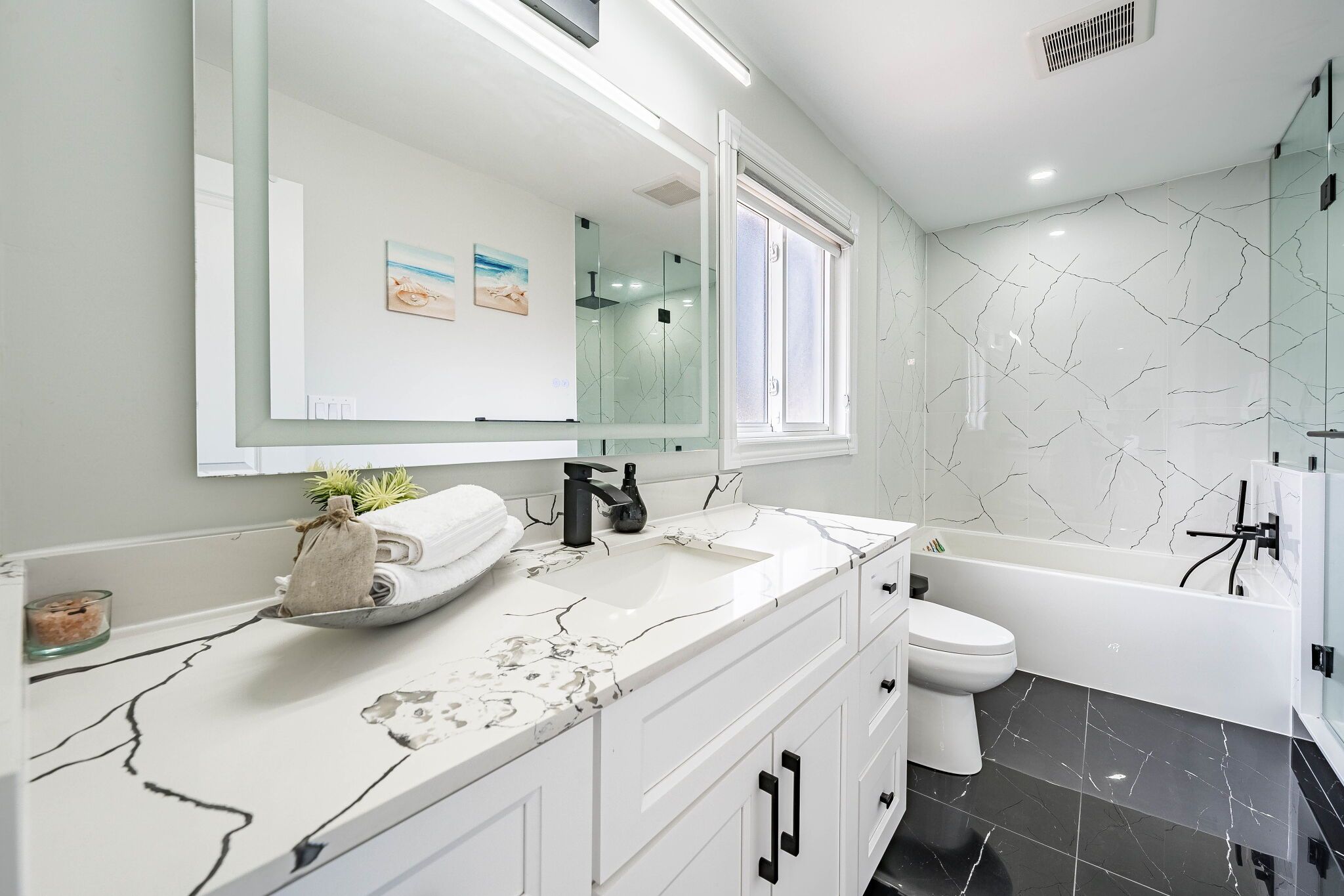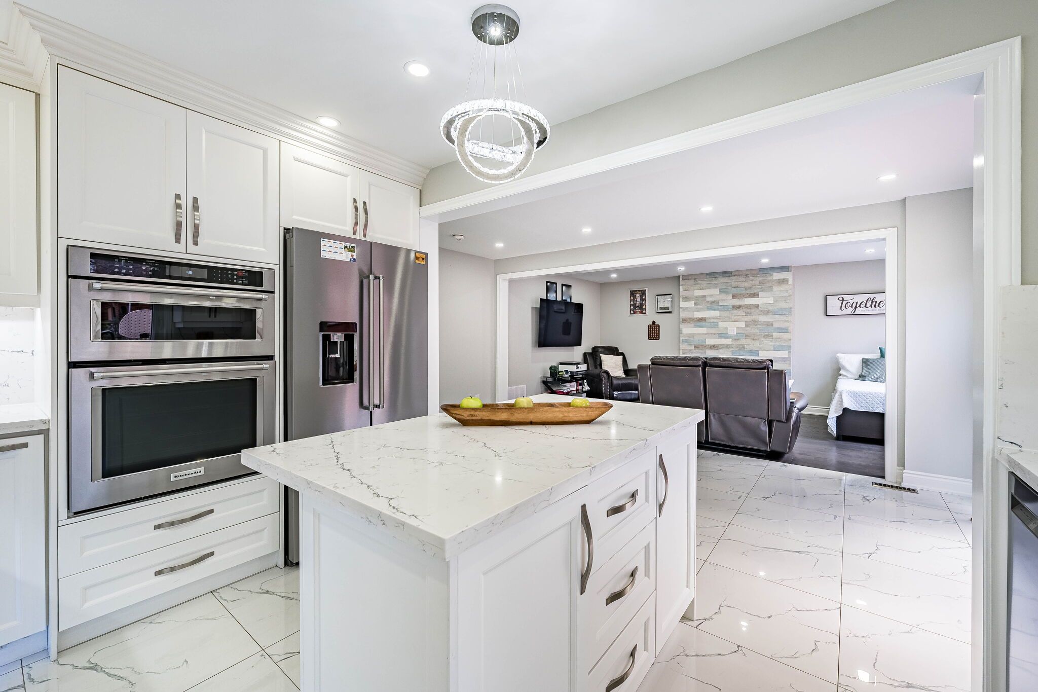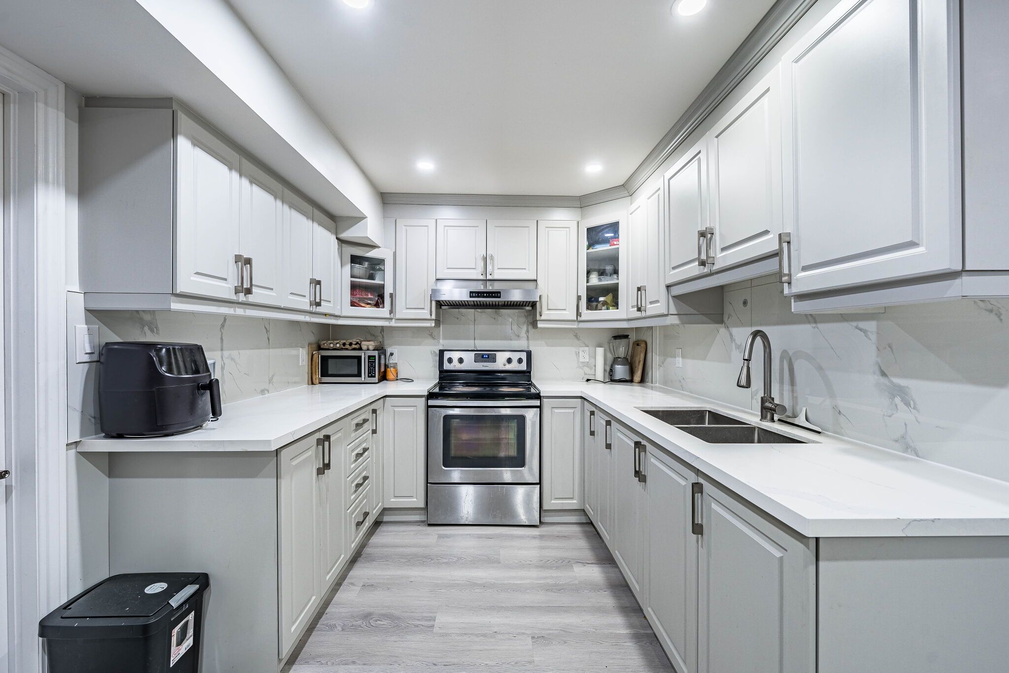 • Updated kitchen with built-in appliances and quartz counters for cooking enthusiasts.