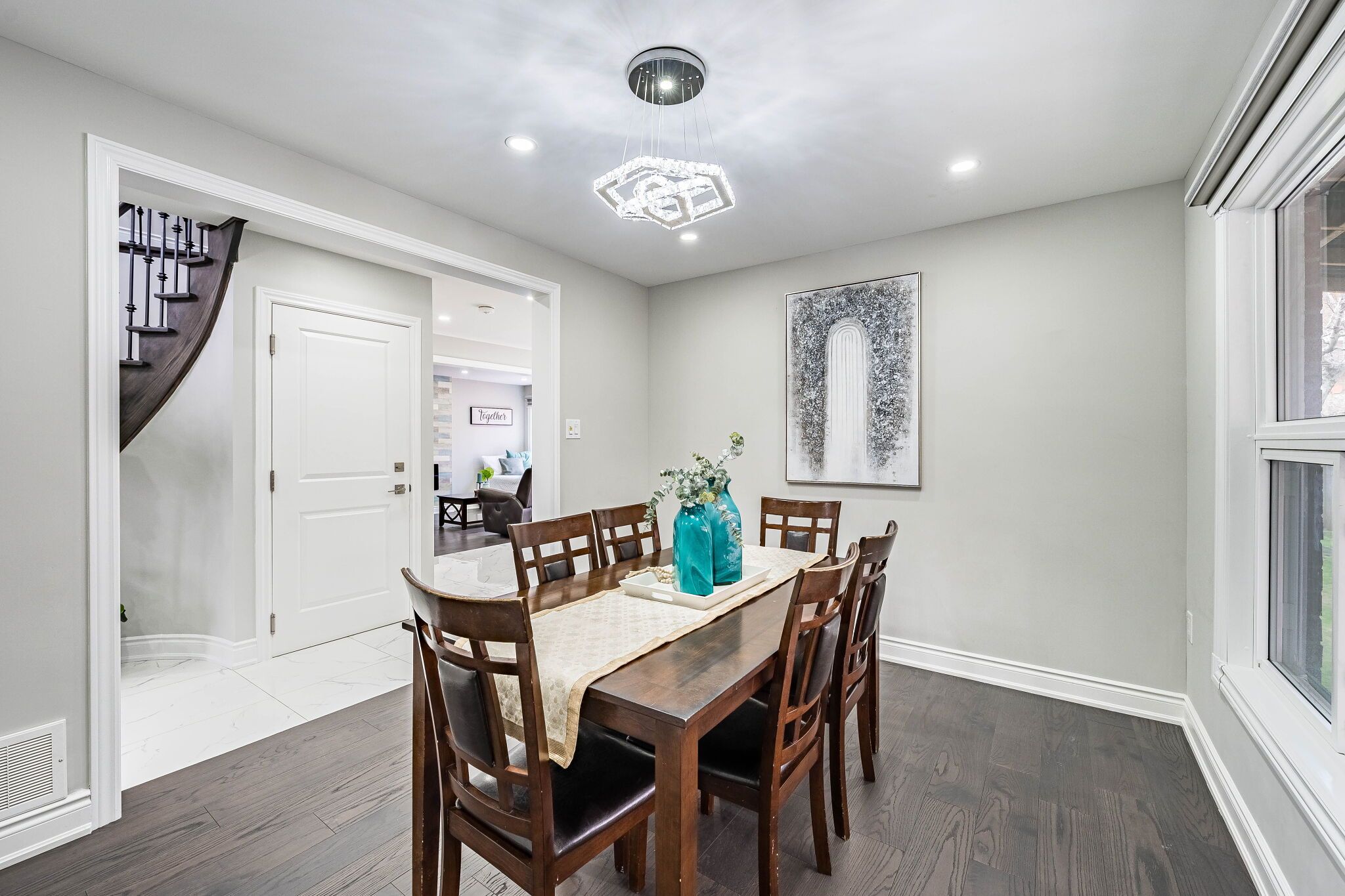 • Clean and modern main floor with stylish tiles and hardwood throughout.
