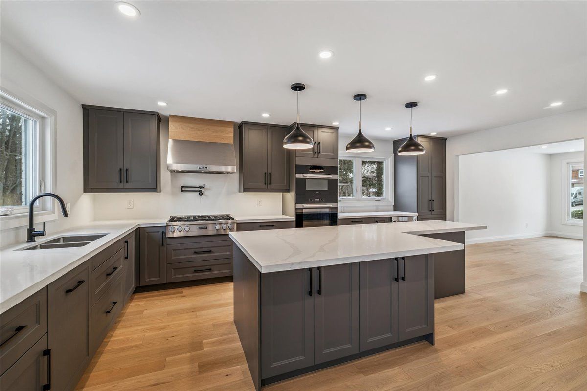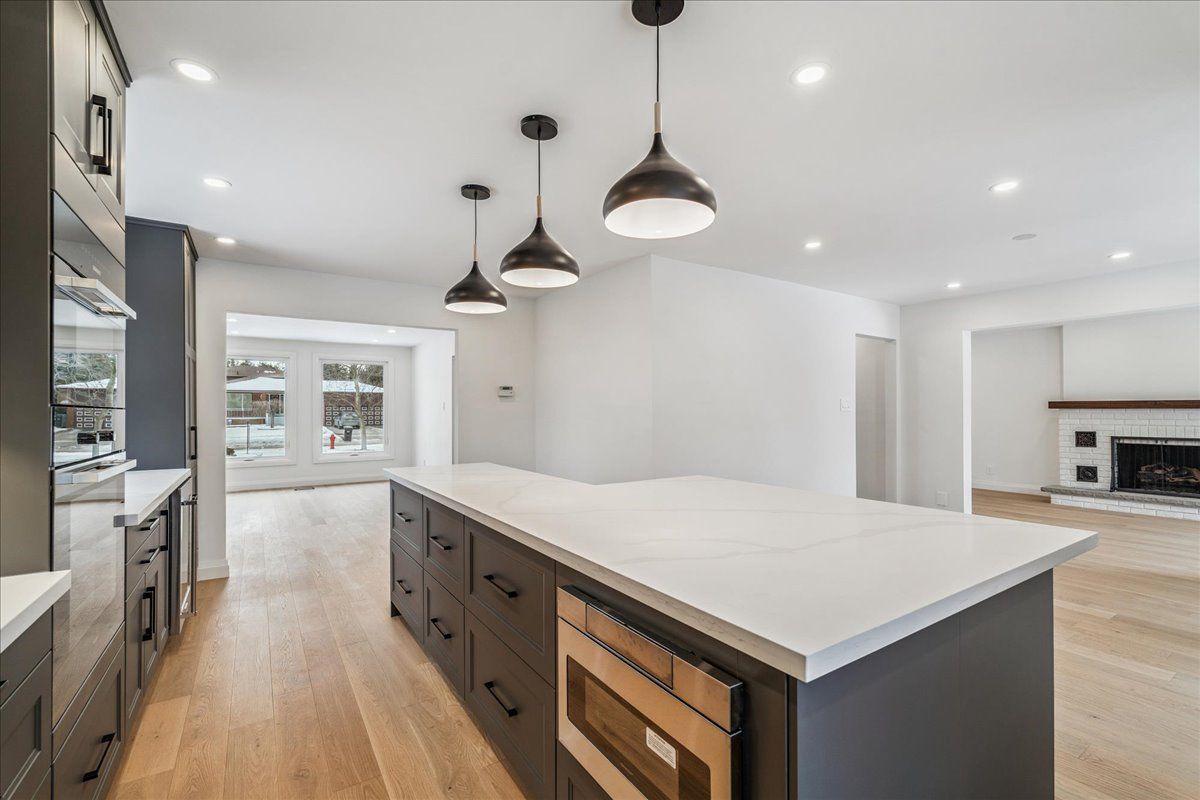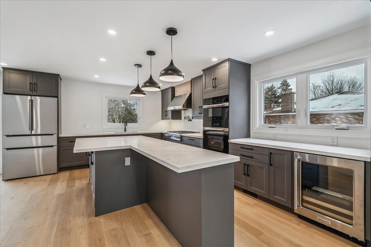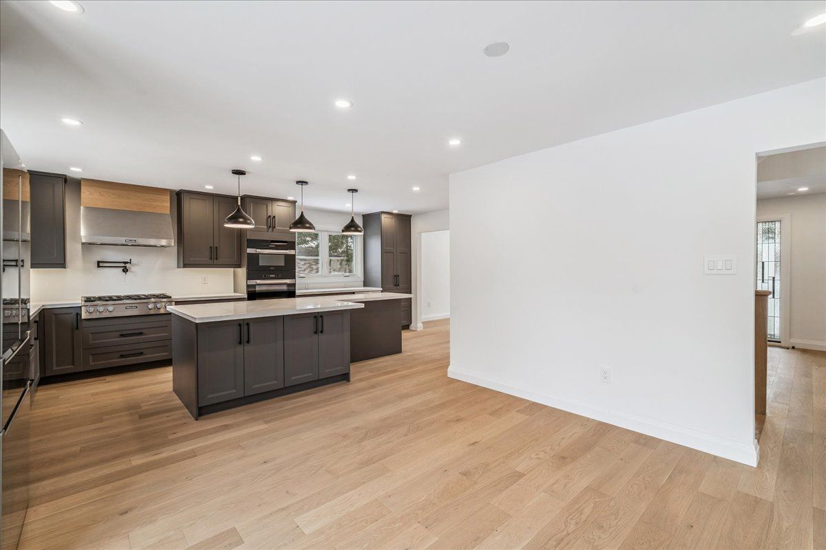 • Updated open concept kitchen featuring high-end Miele appliances for cooking.