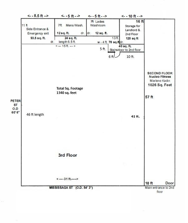 Prime downtown orilia - for lease upper 3rd floor for lease 1340 sq ft. - $1650. 00 pus hst and utilities. Desirable location -downtown orilia . Open concept. One large rectangular room. Shared common facilities with 2nd floor tenant , shared bathrooms (mens/womens) and strorage area.