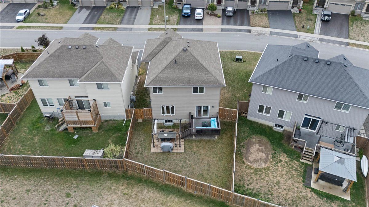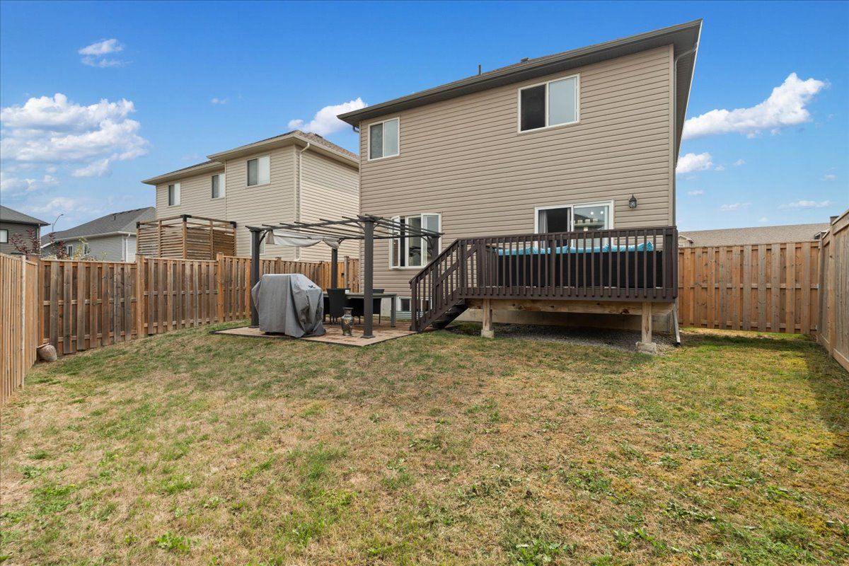 Welcome to this stunning, modern 3 bed, 2. 5 bath 2 storey home with an attached 2 car garage nestled on an extra-wide, irregular pie-shaped lot offering the ideal fusion of elegance, size, and utility in the highly sought-after heritage park community. Upon entry, you are welcomed by an attractive, free flowing floor plan. The polished, contemporary kitchen effortlessly connects to the dining room and the voluminous family room, providing a superb setting for leisure and social gatherings and a 2-piece powder room. The upper level reveals three spacious bedrooms and two complete washrooms. The primary sanctuary is a genuine haven, featuring a walk-in wardrobe and an exclusive four-piece ensuite. For ultimate convenience, an oversized laundry room is also thoughtfully located on the second floor. The unfinished lower level offers boundless potential for customization - envision your own bespoke fitness area, home study, or extra guest suite. Outdoors, the huge, fully enclosed backyard serves as your secluded haven, boasting a sweeping deck and an oversized patio with a pergola - perfectly suited for outdoor dining and summer festivities. Further attributes include a drywalled double garage and a double asphalt driveway. Positioned mere steps from a neighborhood park, school bus stop, the quinte sports & wellness centre, quinte mall, retail amenities and the 401, this residence is truly comprehensive. Secure your viewing appointment without delay!