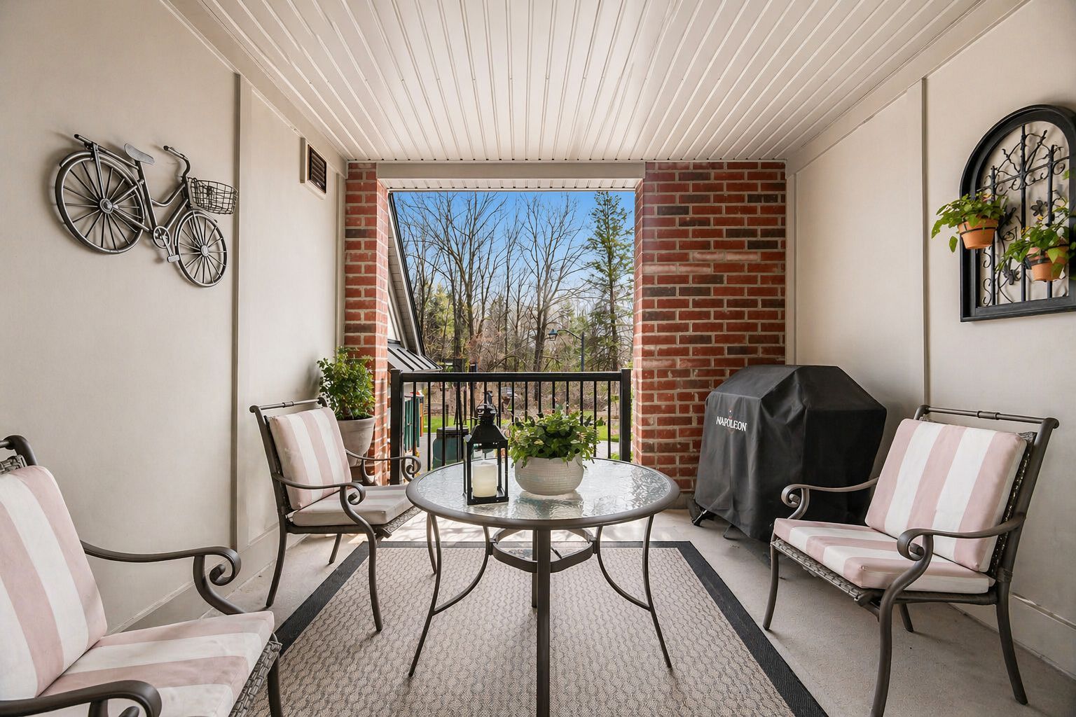 • Private balcony in the primary retreat with scenic ravine and pond views.
