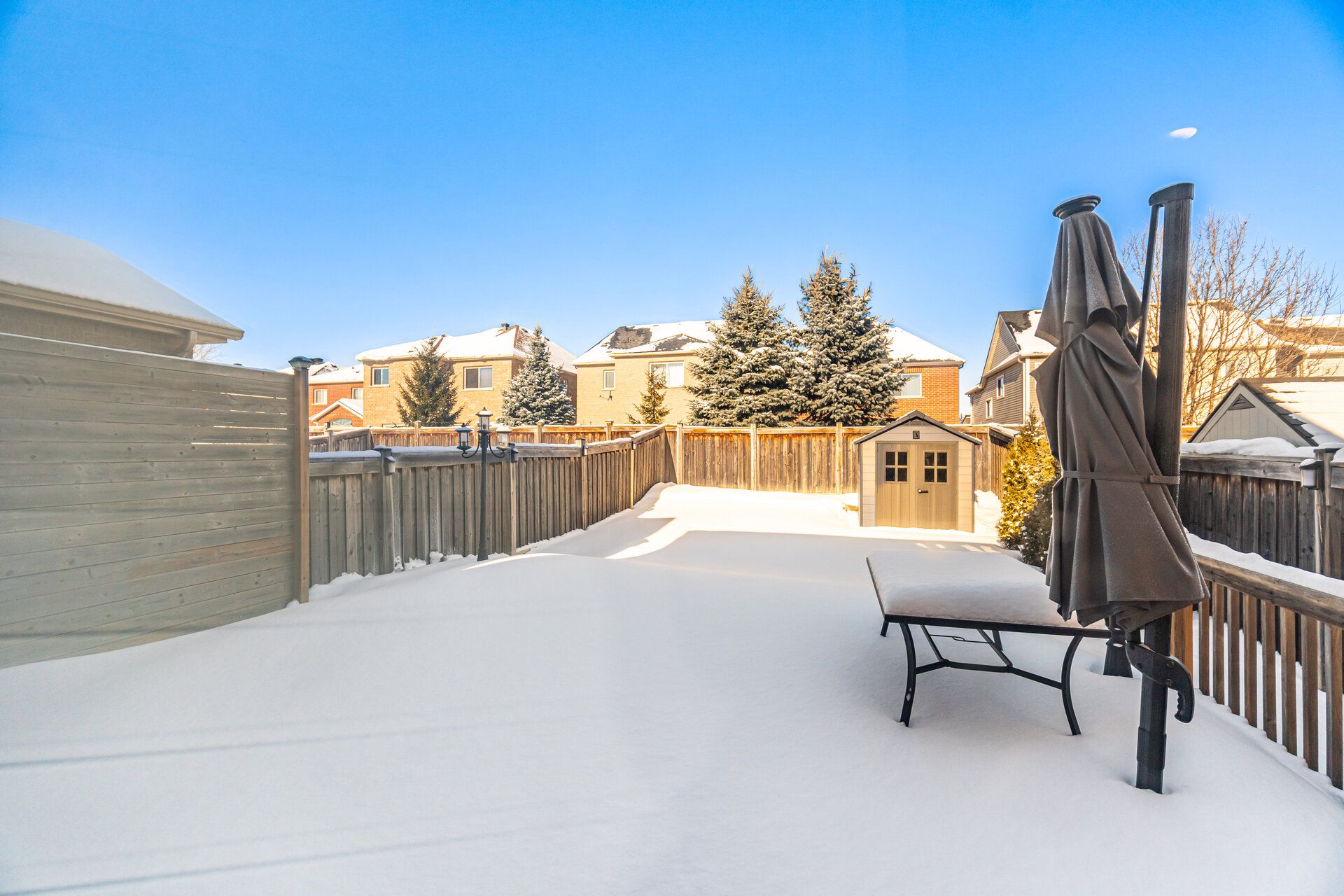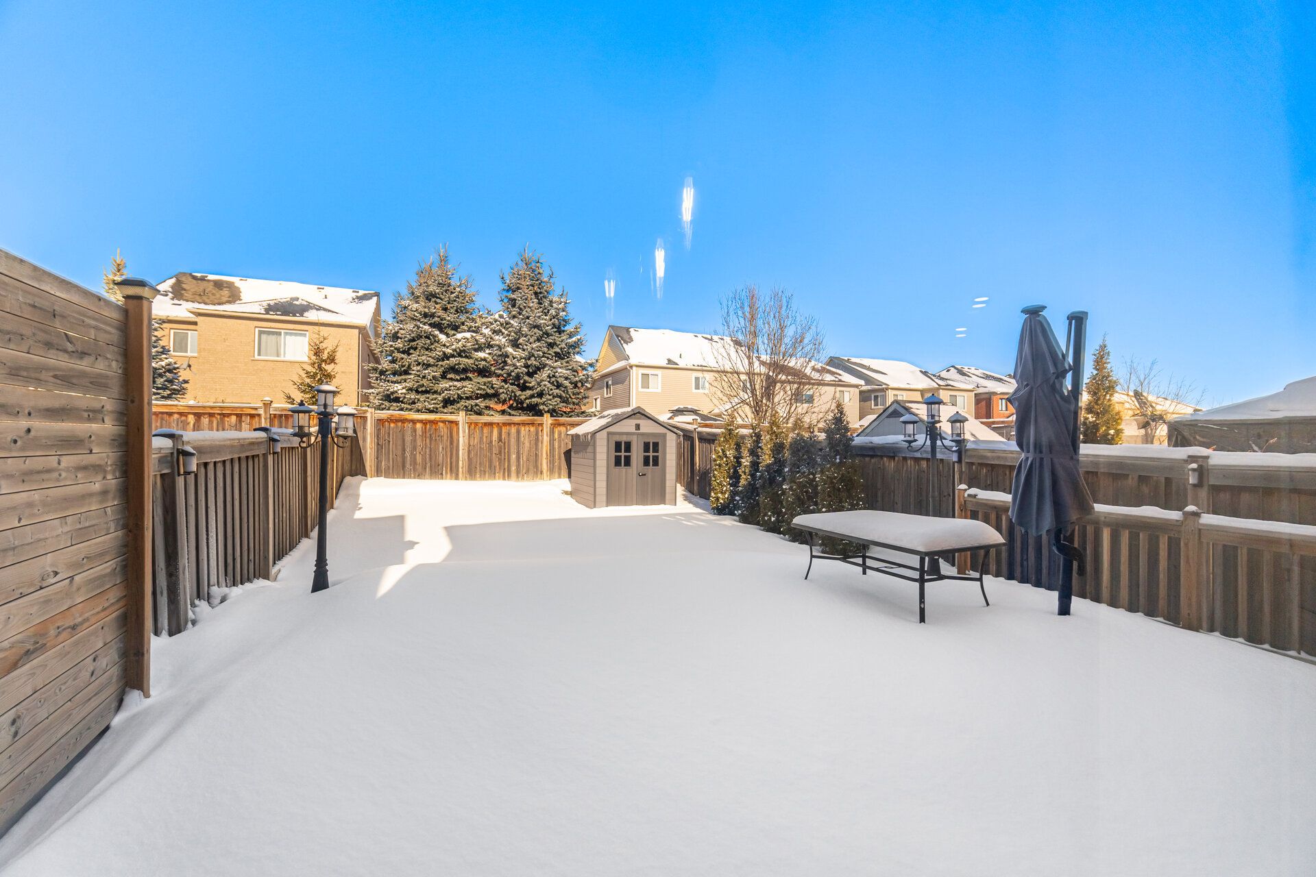 • Spacious backyard with a shed, garden, and mini-putt area.