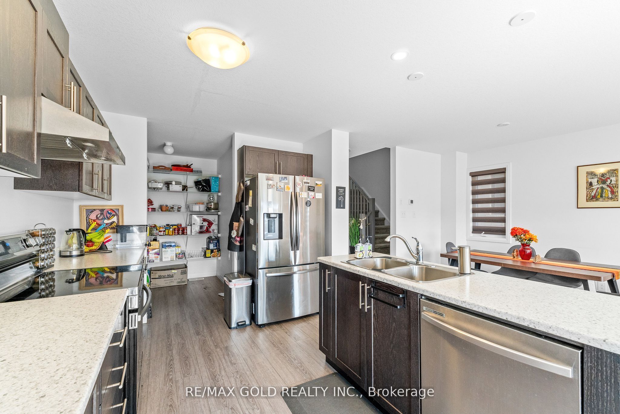 Stunning end-unit townhouse offering over 1,700 sq ft of beautifully designed living space that perfectly blends comfort, style, and functionality. The main floor features an open-concept layout with a spacious living and dining area adorned with zebra curtains, creating a warm and inviting atmosphere for both everyday living and entertaining guests. The upgraded kitchen showcases high-end stainless steel appliances, elegant cabinetry, a large pantry for extra storage, and a modern layout ideal for any home chef. Upstairs, you'll find three generous bedrooms, including two with walk-in closets and a luxurious master suite with a private3-pieceensuite. The large windows throughout the home allow plenty of natural light, enhancing the bright and airy feel. The unfinished walkout basement provides ample storage space and opens directly to school grounds, offering a peaceful and scenic view with no rear neighbors. Located in a highly desirable area, this home is within walking distance to schools, plazas, and a community center, while being just minutes from parks, trails, and st. Mary's general hospital. With excellent transit access only an 8-minute walk to the nearest bus stop and situated in a rapidly growing community, this property offers the perfect combination of modern living, convenience, and future value.