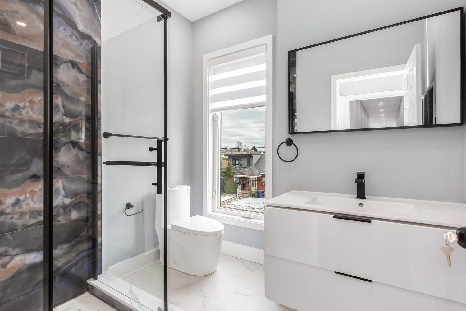 Rare opportunity to own an exceptionally large, brand new fully detached legal triplex with additional laneway access and a city-approved laneway house opportunity-drawings included and major infrastructure already completed (electrical, plumbing, drainage, water line and concrete foundation), offering the next owner the potential to significantly increase long-term income and value. This purpose-built property is ideal for investors, multi-generational families, or buyers looking to live in one unit while generating substantial rental income from the others. Thoughtfully designed and built with quality craftsmanship throughout, the property features three self-contained units with 3 kitchens, 7 bedrooms and 6 bathrooms, along with three separate hydro and gas meters. Each unit includes tankless hot water heaters, independent furnaces and air conditioners, private in-suite laundry, engineered hardwood flooring, pot lights throughout, and brand new stainless steel appliances. Security cameras are installed around the property for added peace of mind. Public transit is at the doorstep with a direct bus to the subway, making this a rare turn-key investment in a convenient location. The main floor unit offers 9-ft ceilings, a bright open layout with office space, two bedrooms and one bathroom, plus a spacious living room and modern kitchen with quartz countertops and stainless steel appliances leading to a private deck. The upper unit spans two levels with two bedrooms each featuring their own ensuite bathrooms, a large sun-filled living room and kitchen overlooking the backyard, while the upper level offers a private primary retreat with two balconies and a spa-inspired ensuite with quartz counters, double sinks, light-up mirror and tunnel skylight. The basement suite features 8-ft ceilings, two bedrooms each with its own ensuite bathroom, a spacious living and dining area, and a bright kitchen with walk-up access to the backyard.
