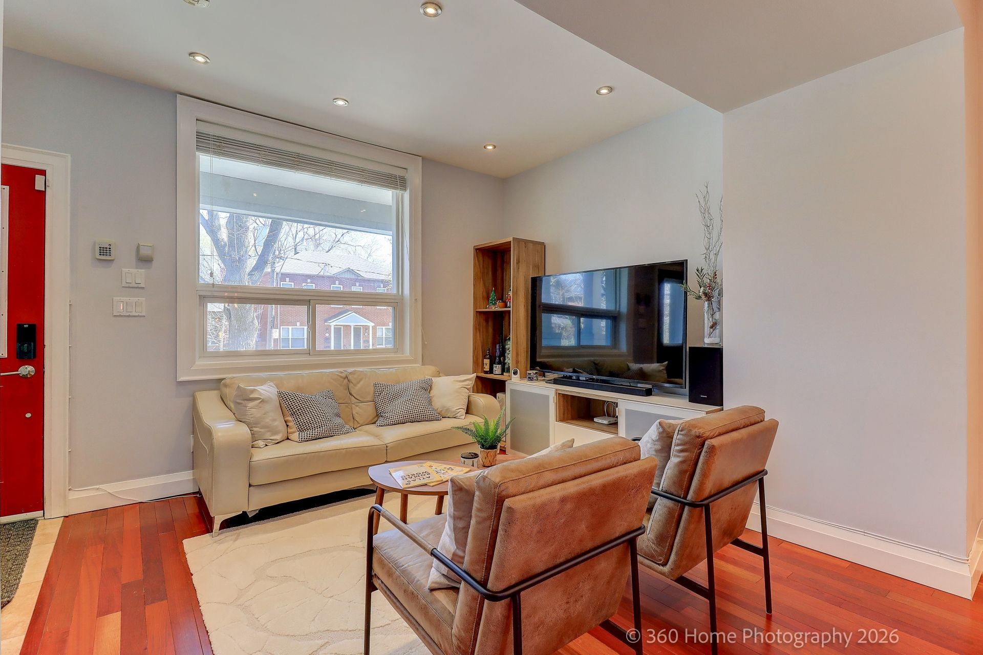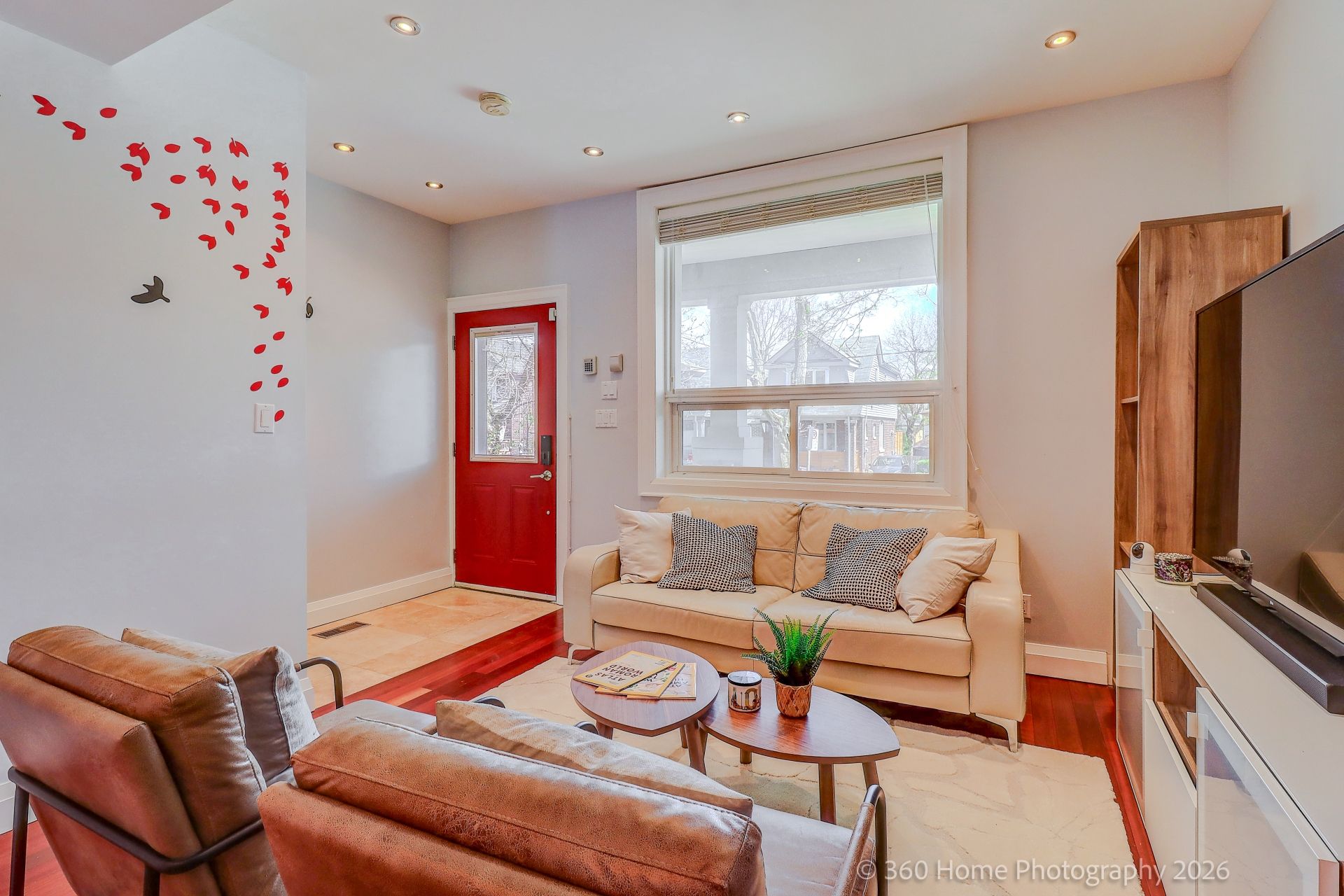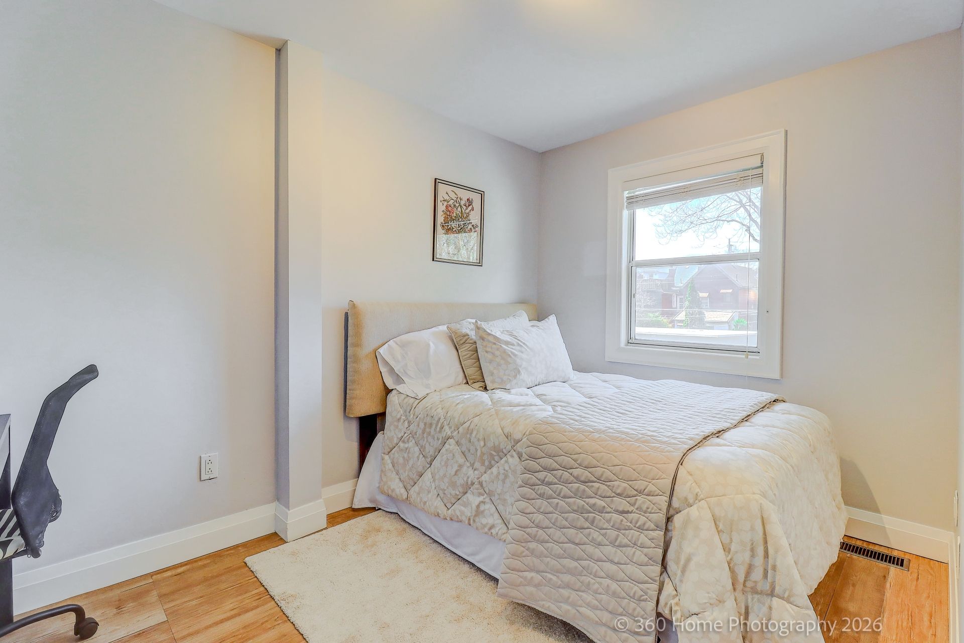 • Bright home with private driveway on a quiet, tree-lined street.