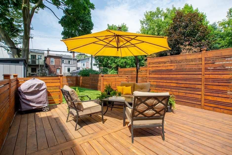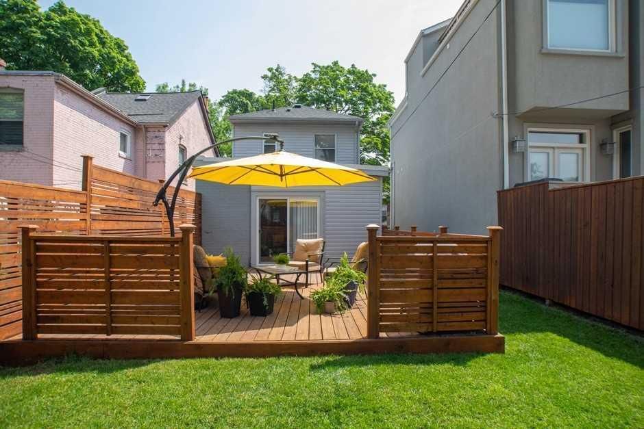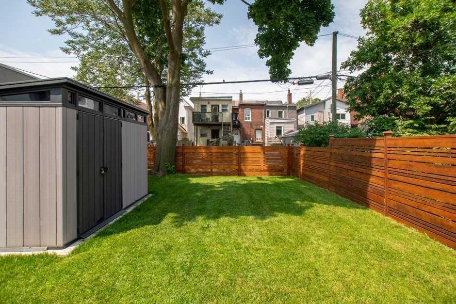 Bright detached home with private driveway parking on a family-friendly, tree-lined street, set on a 25 x 108 foot lot with lots of potential. The open-concept main floor features hardwood, pot lights and a handy powder room, leading to a kitchen equipped with stainless steel appliances, generous cabinet and counter space, and a separate breakfast area that walks out to a large west-facing fenced yard backing onto a laneway, with a substantial deck and potential for future garage/parking off the lane if desired. The second level offers two well-proportioned bedrooms with closets, hardwood floors and a full bath and a skylight, while the unfinished basement provides excellent storage and future flexibility. Major components are well looked after, including an owned water heater, upgraded heat pump and 200 amp electrical panel, all in a highly walkable location close to gerrard street east, leslieville, transit, parks and schools.