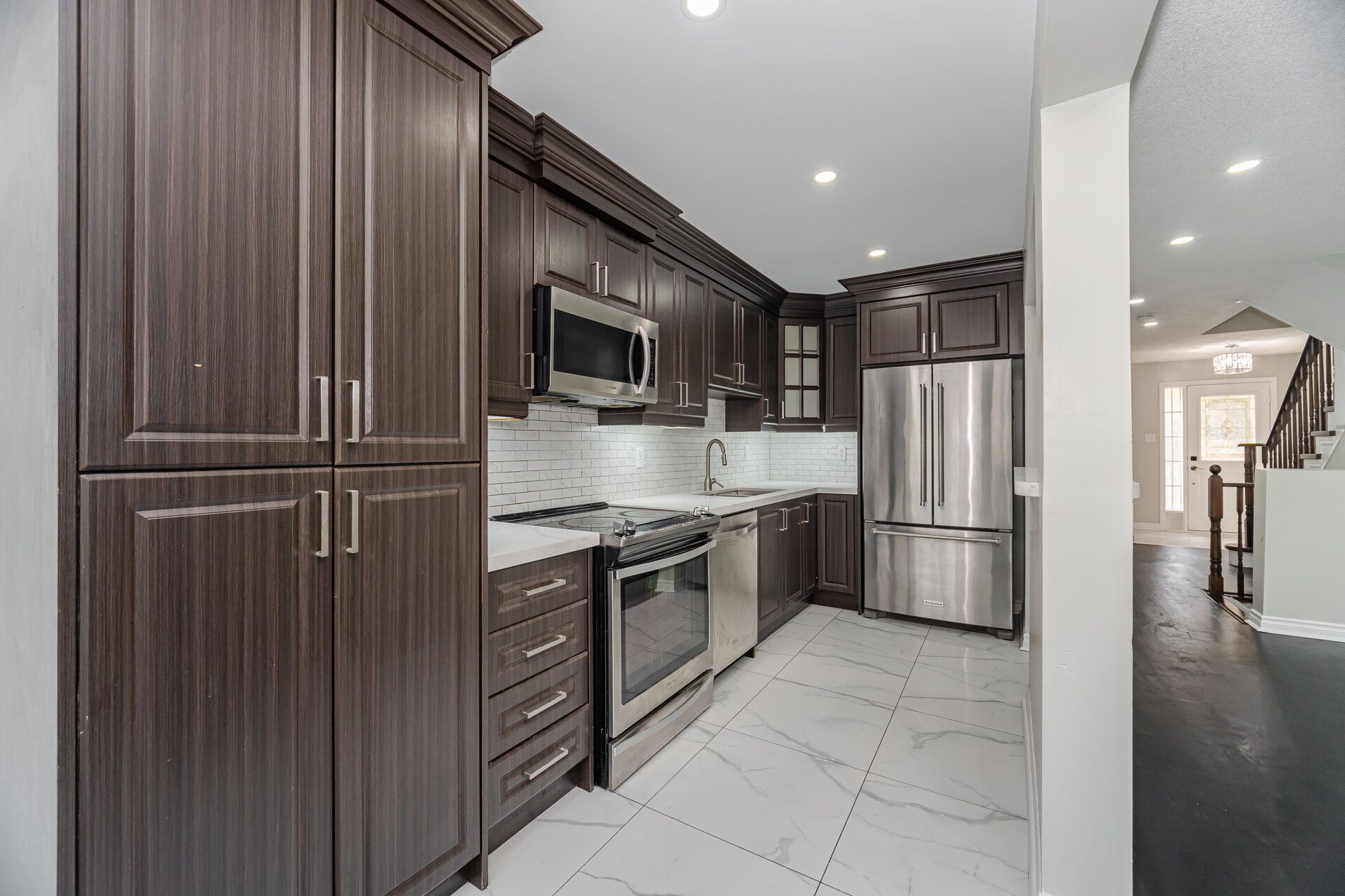 • Eat-in kitchen features stainless steel appliances and breakfast bar.