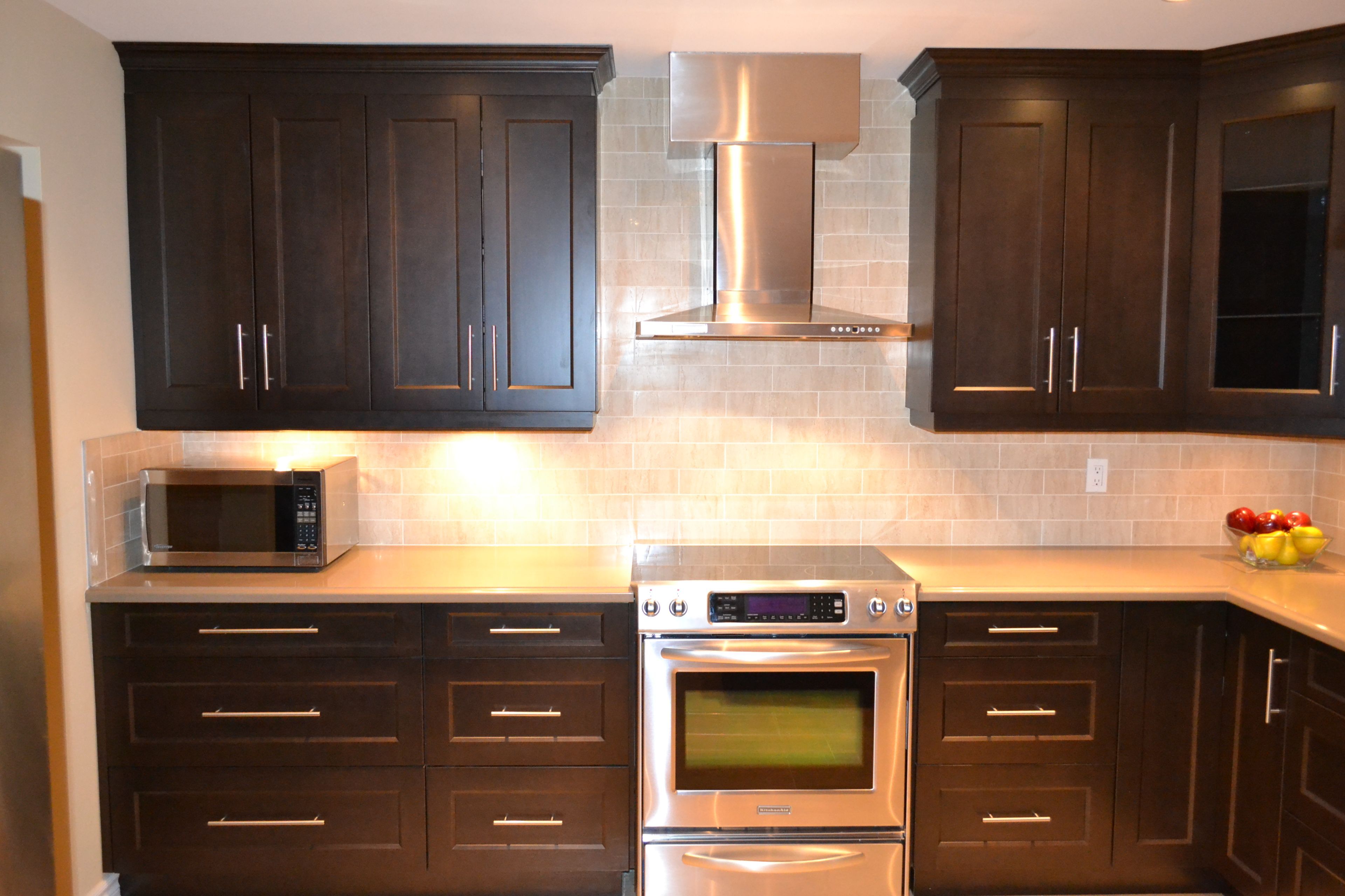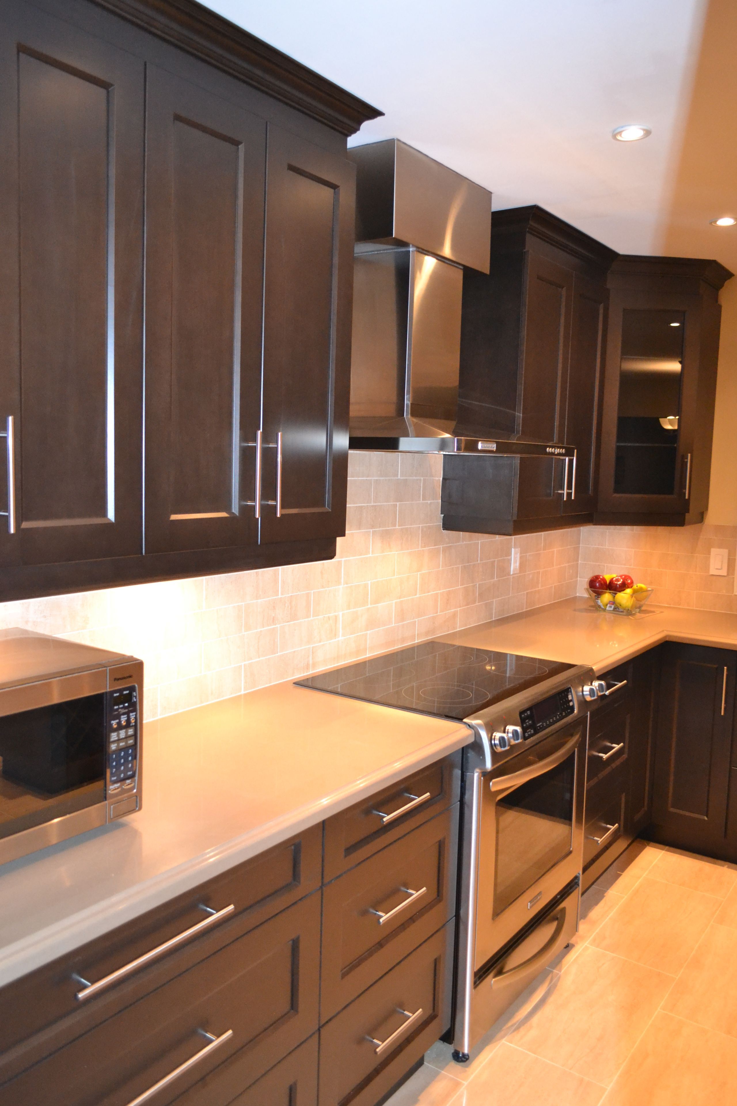 • Designer kitchen features quartz counters and stainless appliances for cooking.