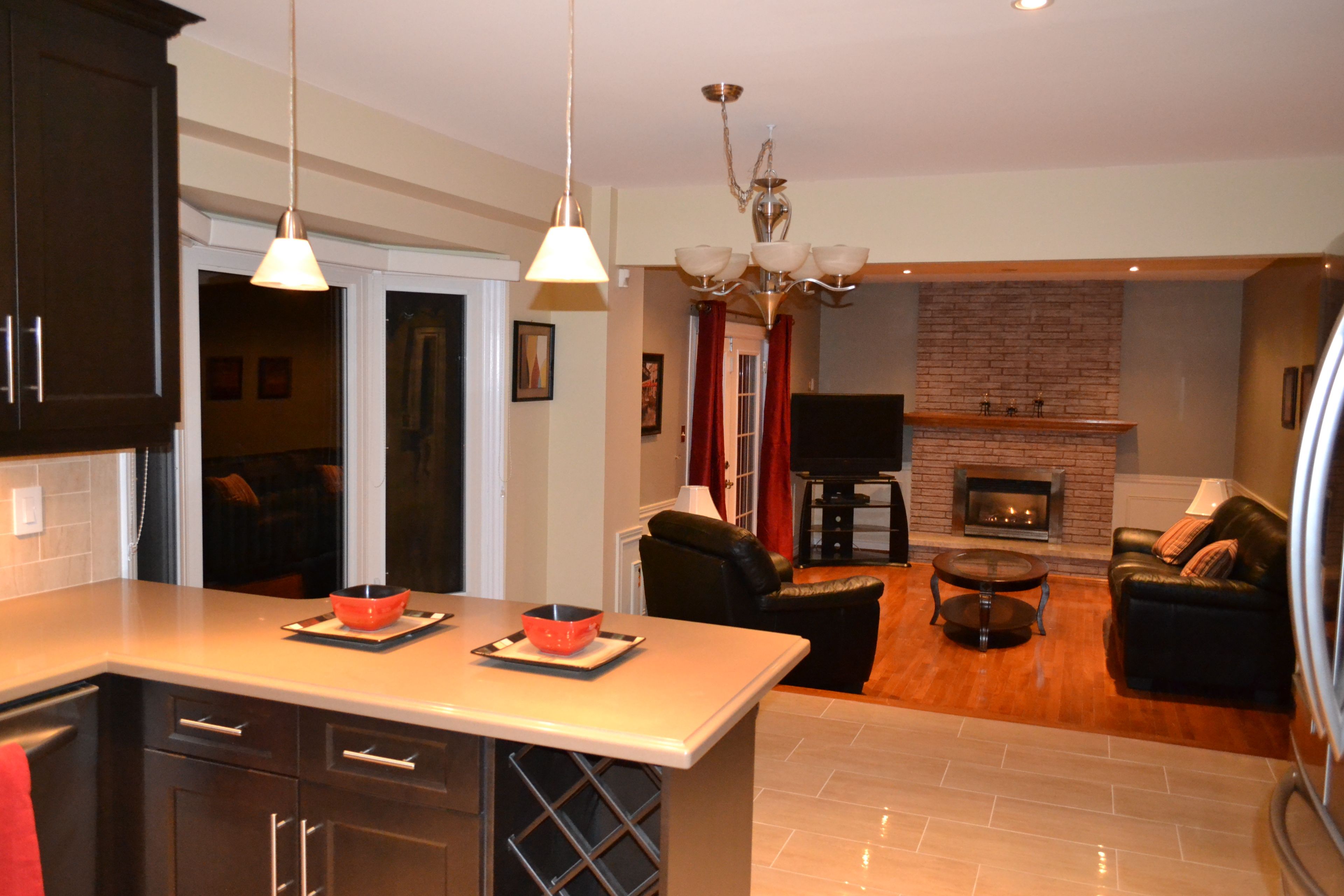 • Sunken family room with fireplace and direct access to a spacious deck.