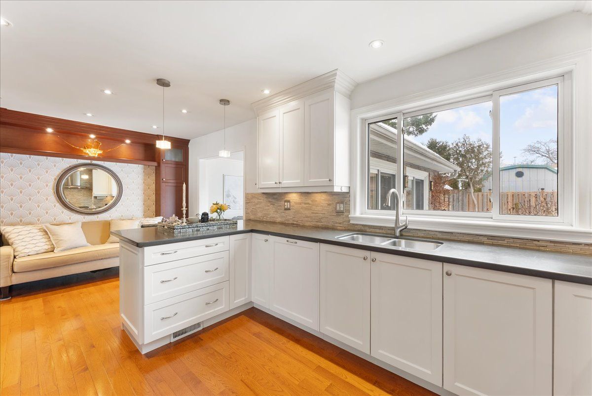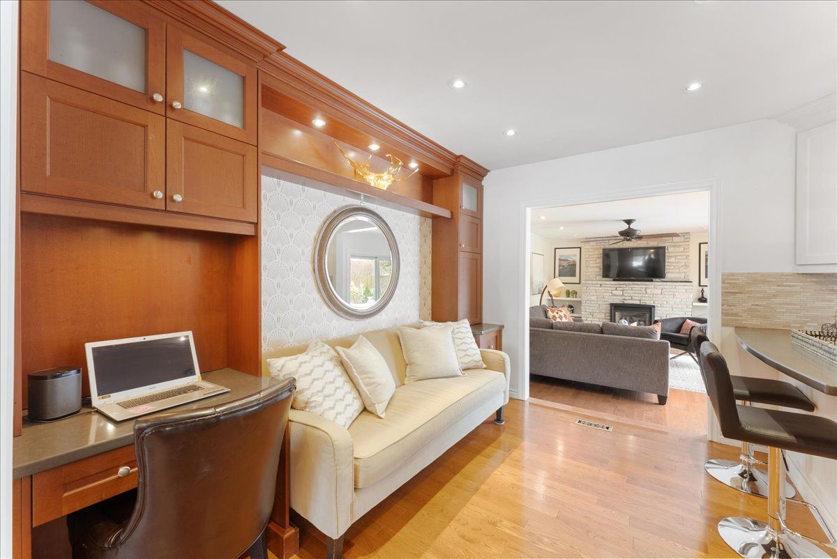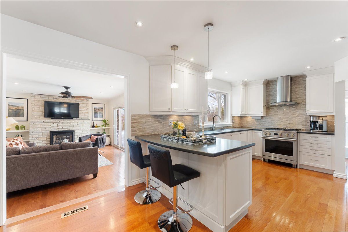 Welcome to this beautifully updated 4-bedroom, 3-bathroom detached family home located in one of pickering's most desirable waterfront neighbourhoods. Situated on a mature, private, fully fenced lot, this move-in ready property offers exceptional indoor-outdoor living &parking for up to four vehicles. A charming covered front porch welcomes you into a spacious, functional layout designed for modern family living. The oversized great room addition is a true showstopper, featuring pot lights, a cozy fireplace, custom built-in shelving, &2 w/o's to your backyard oasis. The renovated kitchen offers abundant cabinetry &counter space, stainless steel appliances, a breakfast bar, &a built-in desk w/extra storage - ideal for busy families or work-from-home convenience. The spacious living room overlooking the front gardens is currently styled as a dining room &easily accommodates large family gatherings &entertaining. Upstairs, you'll find four generously sized bedrooms w/built-in closet organizers &a beautifully renovated 4-piece bathroom w/ample storage. The side entrance leads to a bright, thoughtfully designed 1-bedroom basement in-law suite featuring a full kitchenette, 3-piece bathroom, double closet, open-concept living space, &soundproof flooring - an excellent opportunity for multi-generational living, rental income potential, or extended family. Step outside to enjoy perennial gardens, an oversized patio w/dedicated lounging &dining areas, plus a bright, versatile "she shed" - perfect as a home office, studio, kids' playroom, or additional storage space. The generous green space provides plenty of room for children &pets to play. This versatile home checks all the boxes for first-time buyers, growing families, upsizers, downsizers, &investors alike. Turn-key. Updated. Income potential. Prime location. See attached list of upgrades for full details. *improvements: kitchen'10/ bathrooms'19/22/14/ windows'02ish/ shingles'20/ furnace'25/ ac'18/ front door'23/ shed'20*