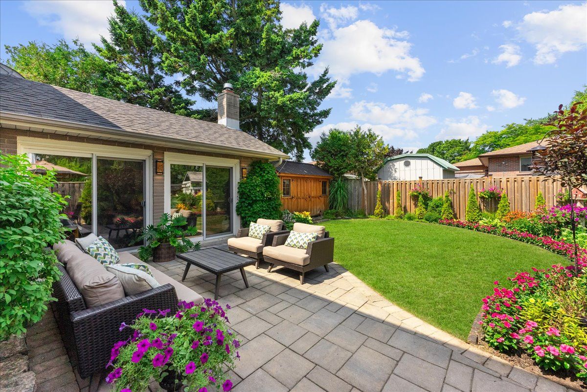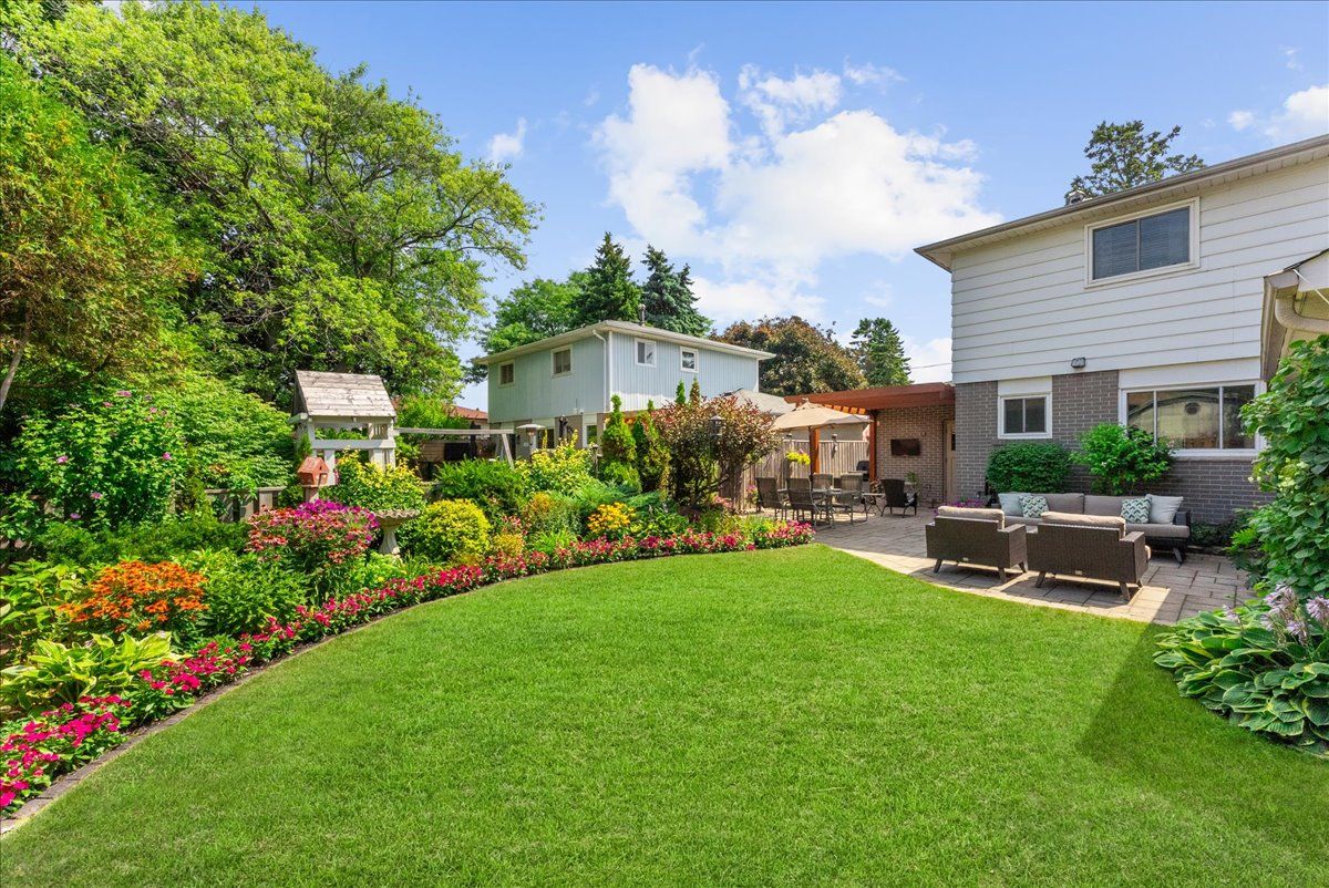 • Large outdoor space with perennial gardens and versatile patio areas.
