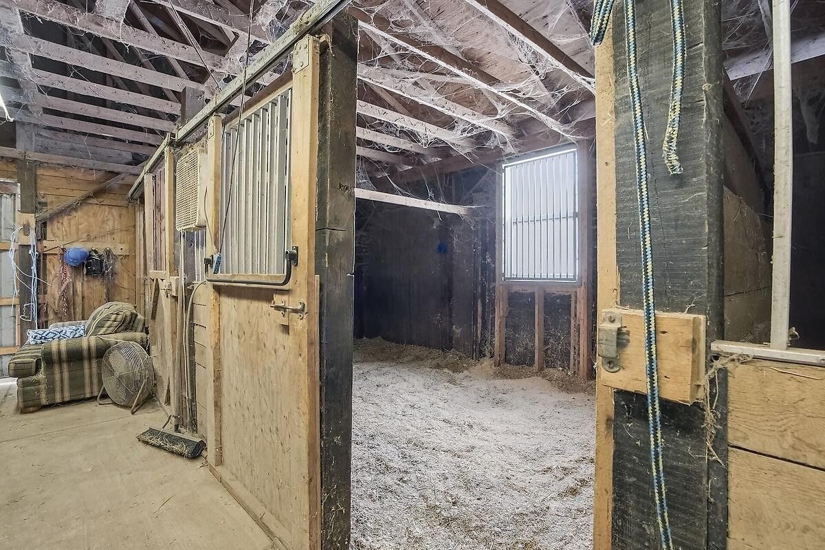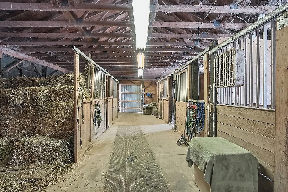 • Six-stall horse barn and paddocks for equestrian enthusiasts.
