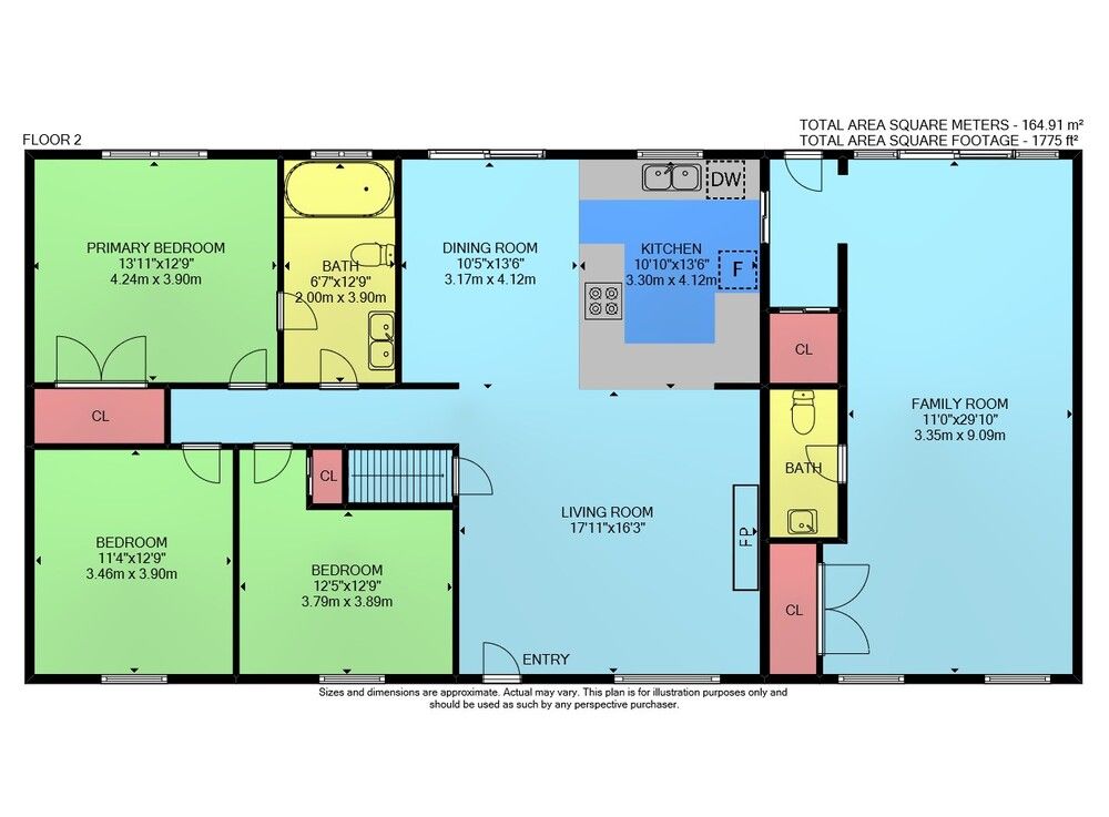 • Ranch-style home with spacious living areas and a wood-burning fireplace.