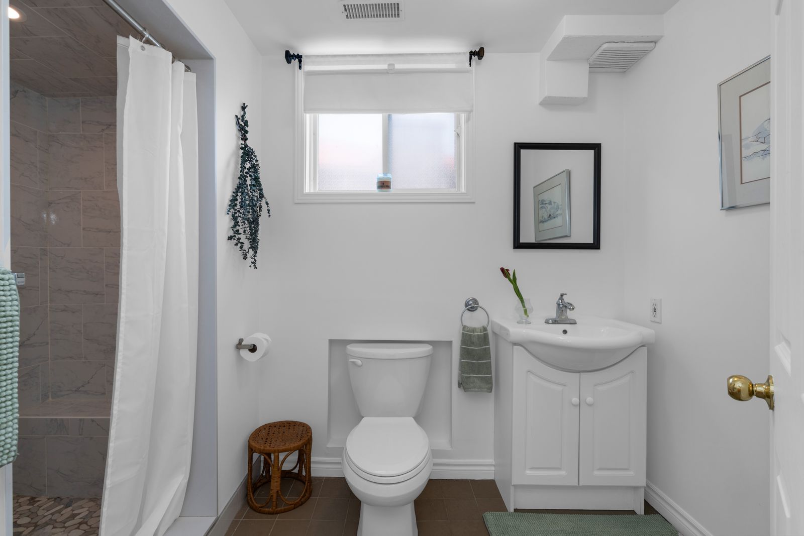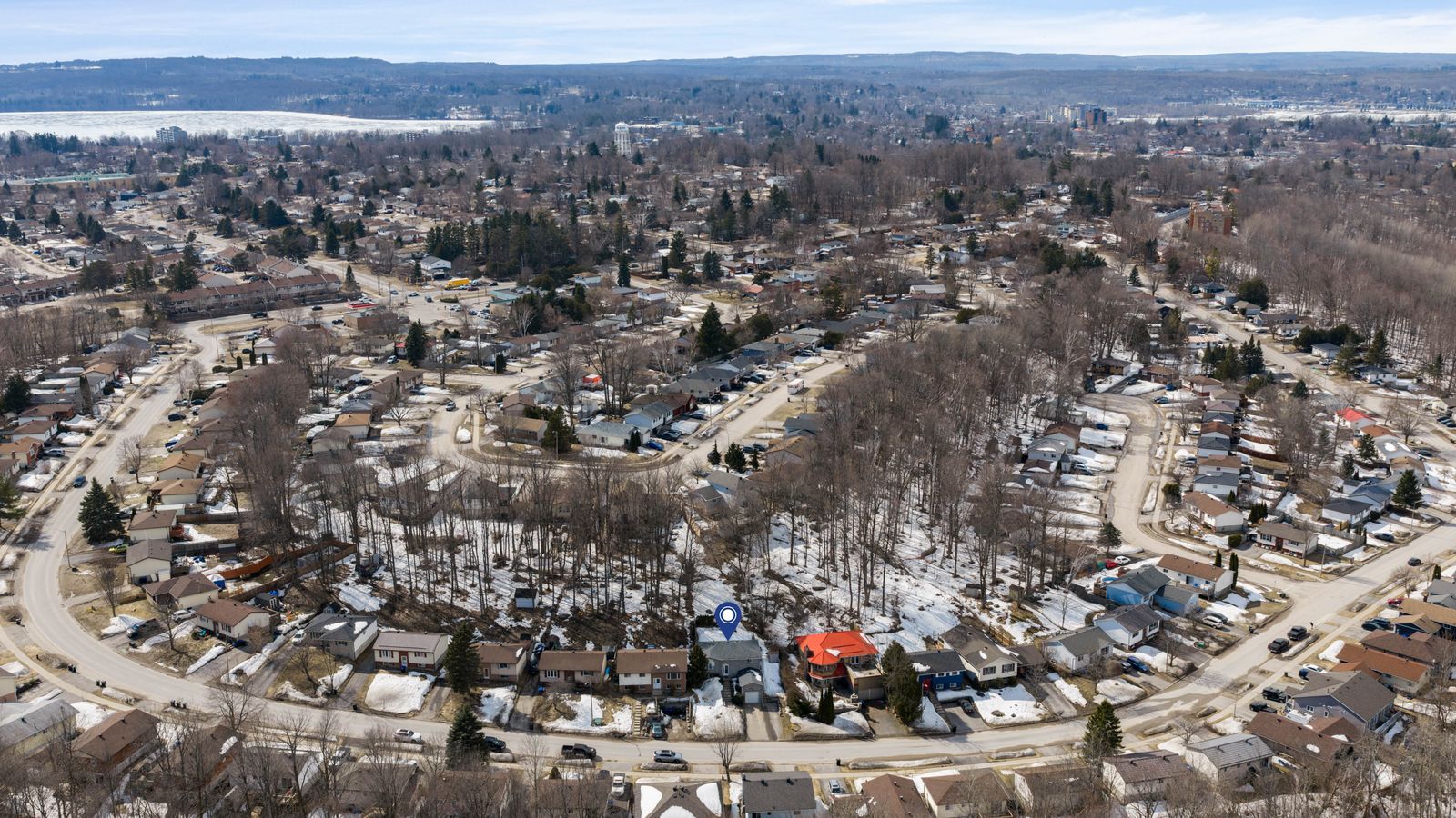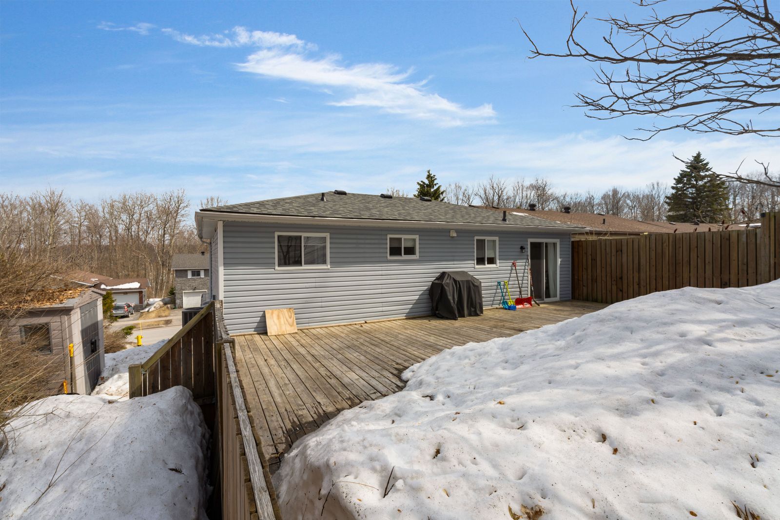 Beautifully maintained home just minutes to midland bay with modern updates, generous outdoor space, & flexible lower level potential! Set in a peaceful, well-treed neighbourhood just a short walk to midland bay, this charming raised bungalow invites you to embrace a lifestyle rich in nature and convenience. Enjoy effortless access to the forested trails of quota park, connecting to the trans canada trail, the scenic midland rotary waterfront trail, and family-friendly tiffin park, while being just five minutes from the vibrant heart of midland for shopping, dining, cultural attractions, and everyday essentials. Outdoor enthusiasts will love the proximity to hiking, beaches, water recreation, golf, and winter adventures at mount st. Louis moonstone ski resort, along with natural escapes like wye marsh wildlife centre and awenda provincial park. At home, the property makes a lasting impression with a generously sized lot, perennial gardens, and mature greenery that enhance its curb appeal. The expansive rear deck overlooks a peaceful, treed setting, creating a private outdoor retreat ideal for relaxing or entertaining. Inside, the open-concept main floor feels bright and inviting, with vaulted ceilings and oversized windows filling the front living space with natural light. The updated eat-in kitchen features newer appliances, stylish countertops, a modern backsplash, and a sliding glass walkout to the deck, making everyday living and hosting effortless. Two spacious bedrooms and a refreshed 4-piece bathroom complete the main level. The finished lower level adds flexibility with a large recreation room, a sunlit bedroom, a full 3-piece bathroom, laundry facilities, and a versatile bonus room, with separate garage entry and newer flooring. Ample parking for five vehicles, an attached single garage, and a recently replaced roof complete this exceptional #hometostay, delivering everyday comfort, privacy, and a lifestyle connected to all that midland has to offer.