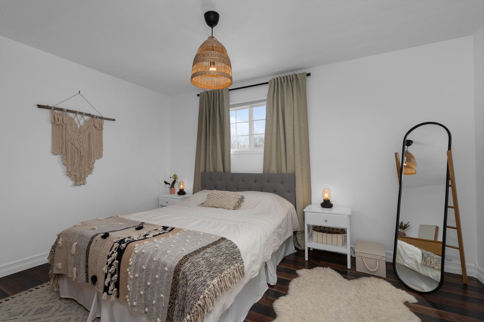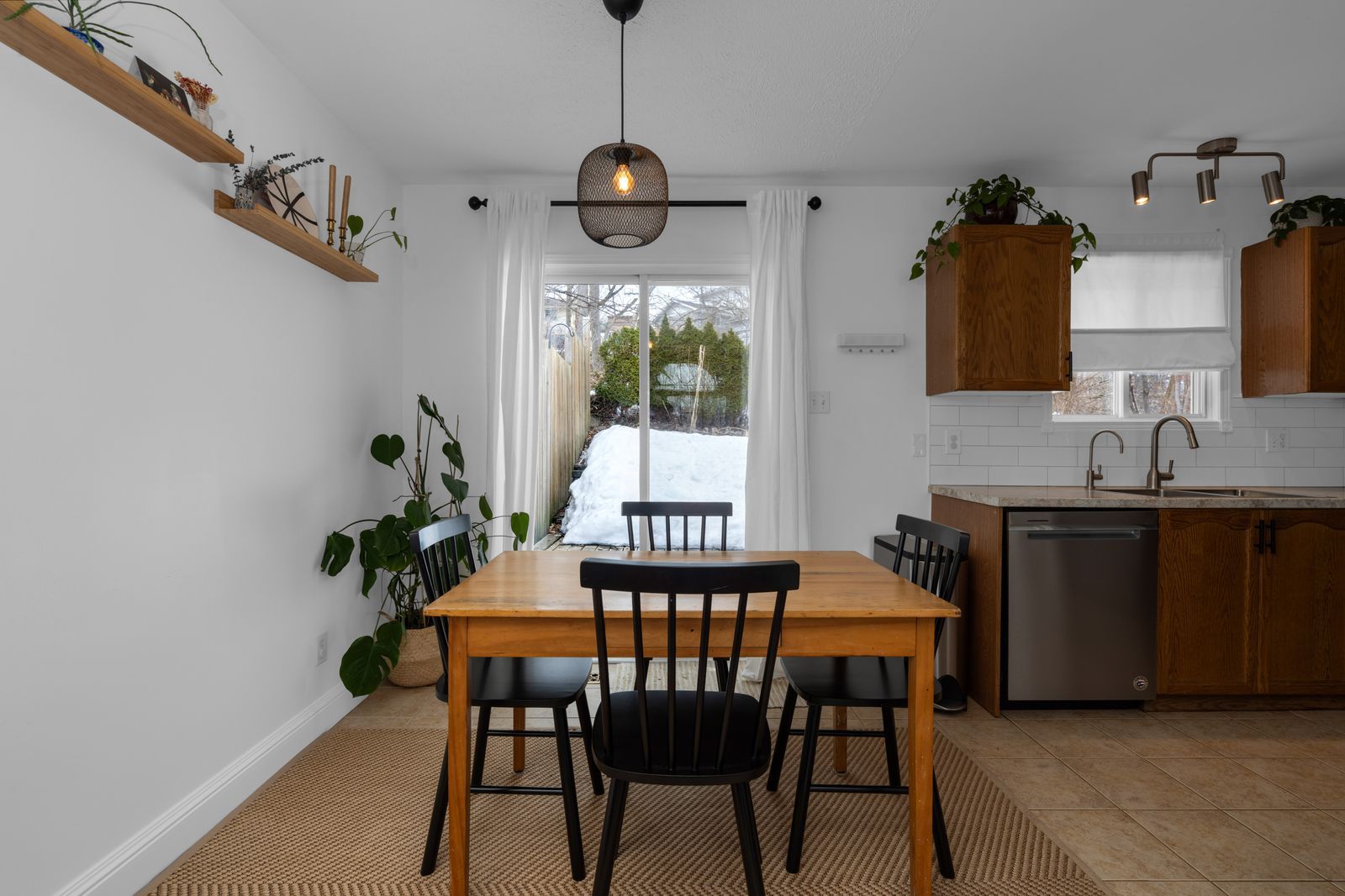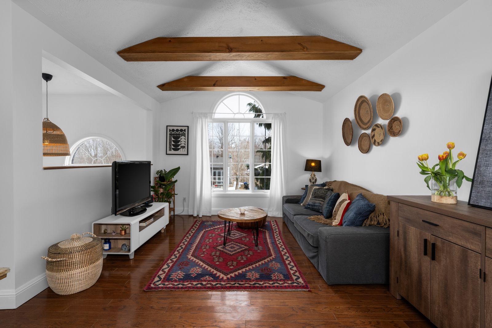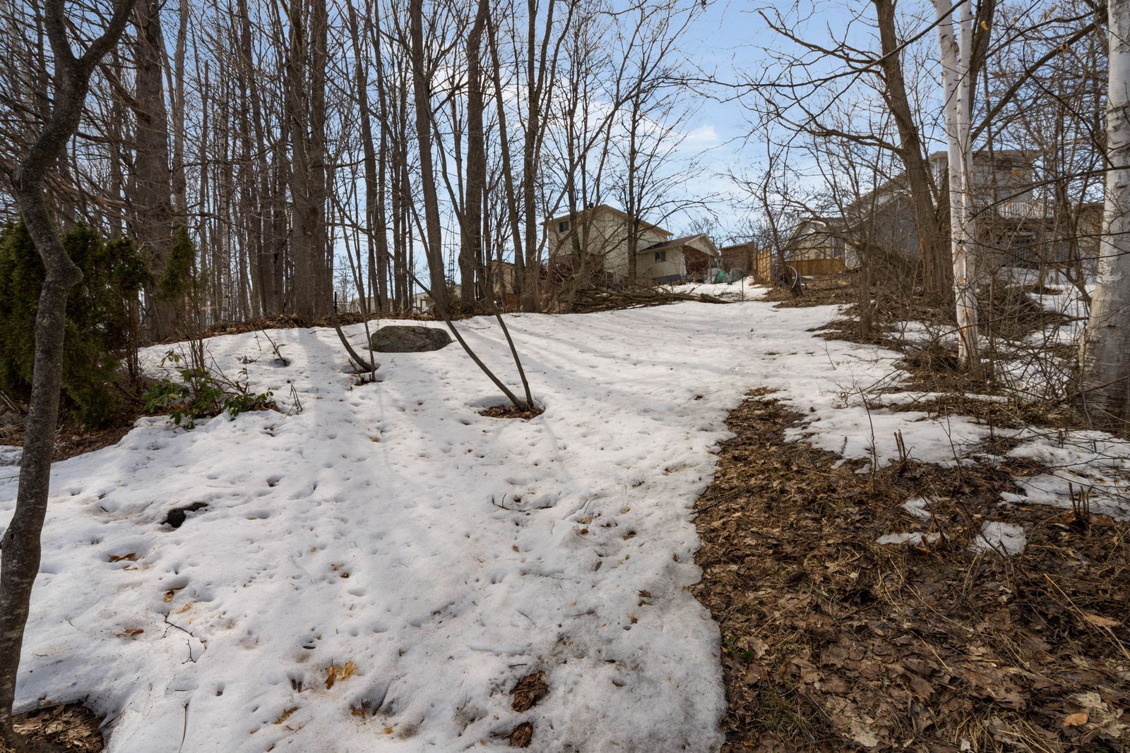 Beautifully maintained home just minutes to midland bay with modern updates, generous outdoor space, & flexible lower level potential! Set in a peaceful, well-treed neighbourhood just a short walk to midland bay, this charming raised bungalow invites you to embrace a lifestyle rich in nature and convenience. Enjoy effortless access to the forested trails of quota park, connecting to the trans canada trail, the scenic midland rotary waterfront trail, and family-friendly tiffin park, while being just five minutes from the vibrant heart of midland for shopping, dining, cultural attractions, and everyday essentials. Outdoor enthusiasts will love the proximity to hiking, beaches, water recreation, golf, and winter adventures at mount st. Louis moonstone ski resort, along with natural escapes like wye marsh wildlife centre and awenda provincial park. At home, the property makes a lasting impression with a generously sized lot, perennial gardens, and mature greenery that enhance its curb appeal. The expansive rear deck overlooks a peaceful, treed setting, creating a private outdoor retreat ideal for relaxing or entertaining. Inside, the open-concept main floor feels bright and inviting, with vaulted ceilings and oversized windows filling the front living space with natural light. The updated eat-in kitchen features newer appliances, stylish countertops, a modern backsplash, and a sliding glass walkout to the deck, making everyday living and hosting effortless. Two spacious bedrooms and a refreshed 4-piece bathroom complete the main level. The finished lower level adds flexibility with a large recreation room, a sunlit bedroom, a full 3-piece bathroom, laundry facilities, and a versatile bonus room, with separate garage entry and newer flooring. Ample parking for five vehicles, an attached single garage, and a recently replaced roof complete this exceptional #hometostay, delivering everyday comfort, privacy, and a lifestyle connected to all that midland has to offer.