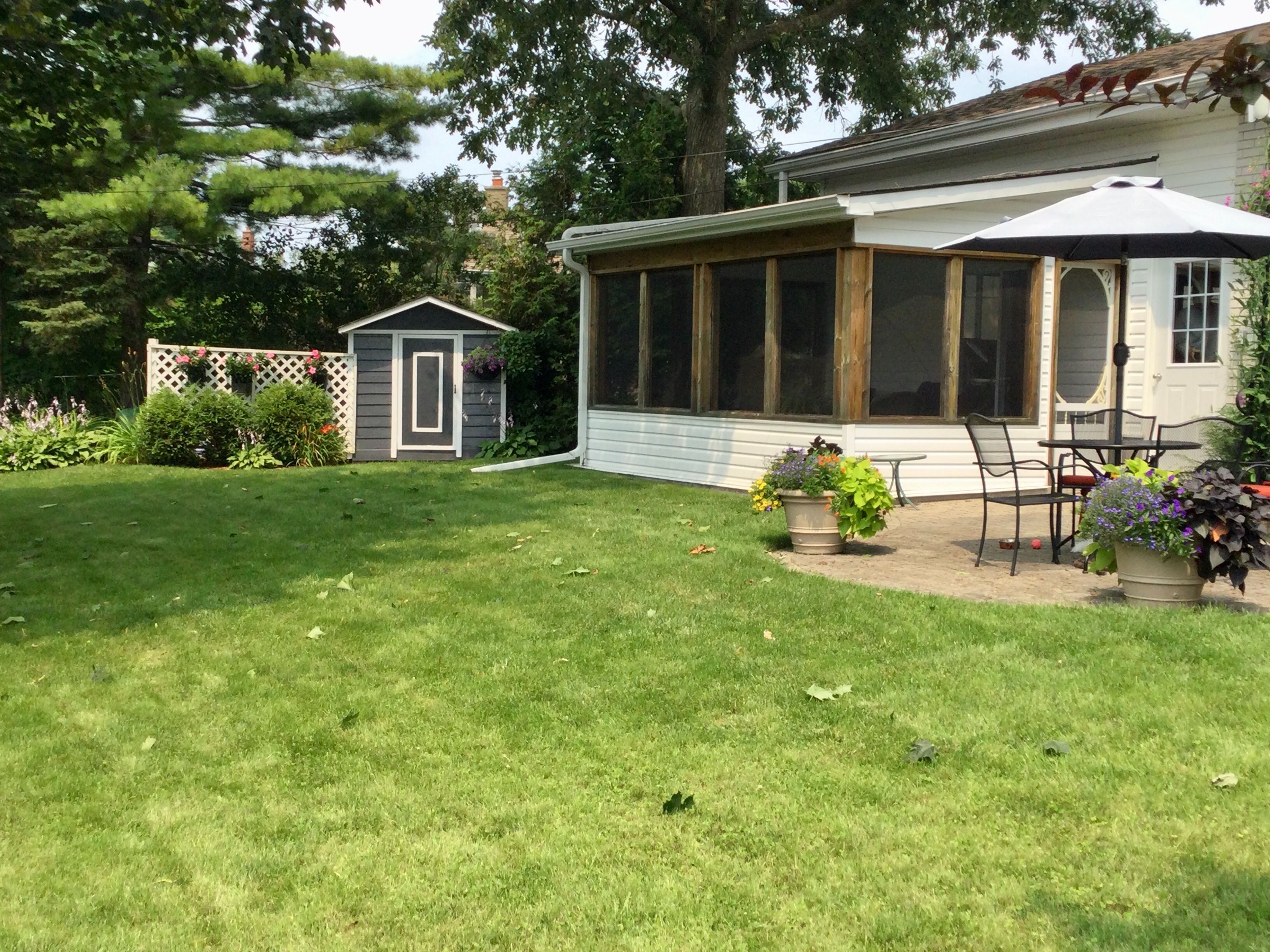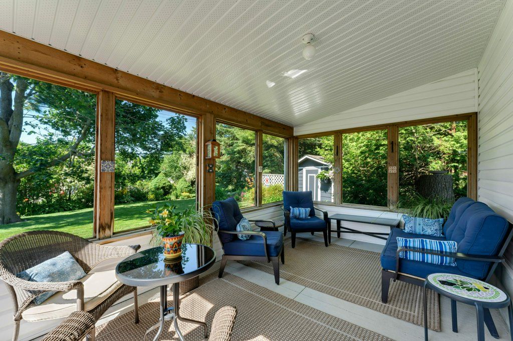 • Fully fenced backyard with gardens and screened-in sunroom.