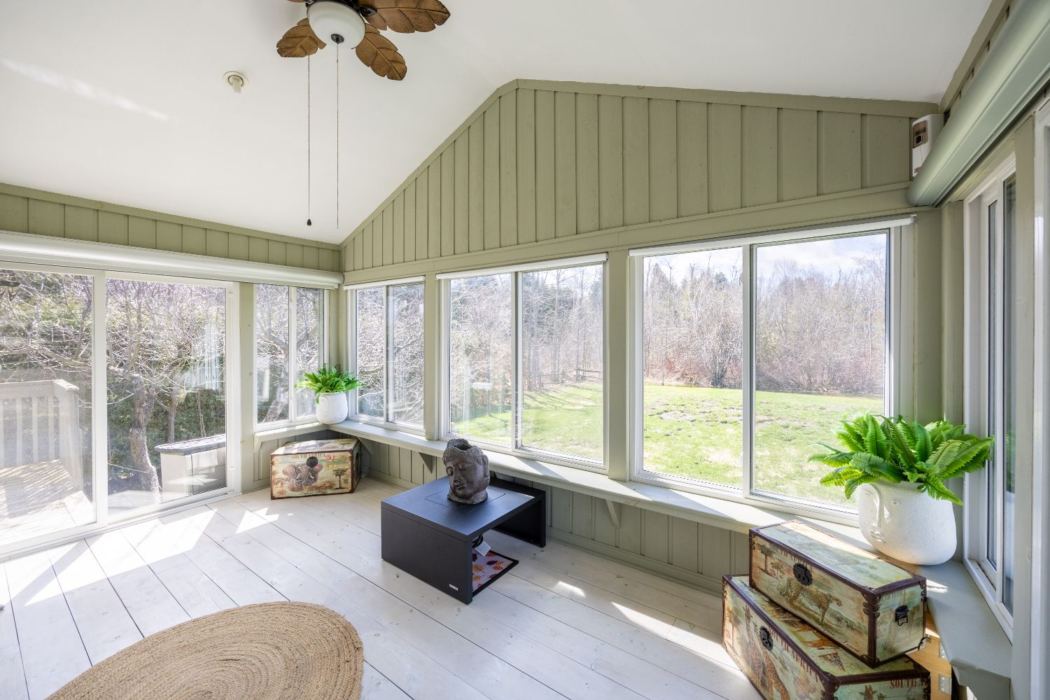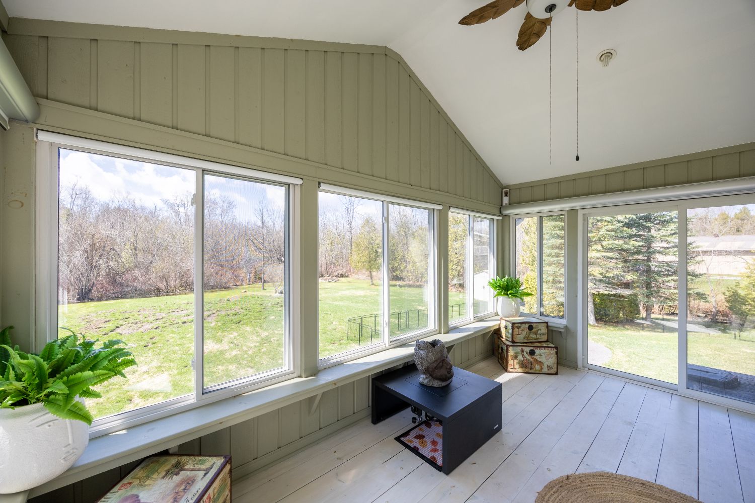 This thoughtfully designed custom-built bungalow offers 4 bedrooms (with potential for a 5th in the office/den) and 3 bathrooms, ideally situated on a private country lot just 25 minutes from peterborough, with access to lower buckhorn lake. The bright, open-concept main living space features vaulted ceilings, hardwood floors, crown molding, and california shutters, with a seamless walkout to a 3-season sunroom/screened-in porch-perfect for relaxing or entertaining. The kitchen is both stylish and functional, showcasing spacious cabinetry, granite countertops, a large island, and stainless-steel appliances. The main floor includes an oversized primary bedroom with floor-to-ceiling closets, a semi-private 4-piece ensuite, and its own private sunroom with backyard access. A second bedroom completes this level. The entry level offers a welcoming foyer, convenient 2-piece powder room, interior access to the oversized heated and insulated double garage, backyard access, and a versatile office/den that can easily serve as a fifth bedroom. Downstairs, the fully finished lower level is filled with natural light from above-grade windows and features a large recreation room with a cozy propane fireplace, two spacious bedrooms, a 4-piece bathroom, dedicated laundry room, separate utility room, and a generous crawl space for additional storage. Storage is abundant throughout, including the oversized garage (24. 4 x 27 ft) with heater and workbench, a large crawl space, covered outdoor storage beneath the sunrooms, and multiple garden sheds. The beautifully maintained gardens offer a stunning variety of perennials, including hostas, daylilies, hydrangeas, daffodils, tulips, and ornamental grasses-creating a peaceful outdoor retreat. For water enthusiasts, private lake access is just steps away, featuring a free boat launch and the option to dock a small boat for a minimal annual fee. A pre-home inspection is available for your review.