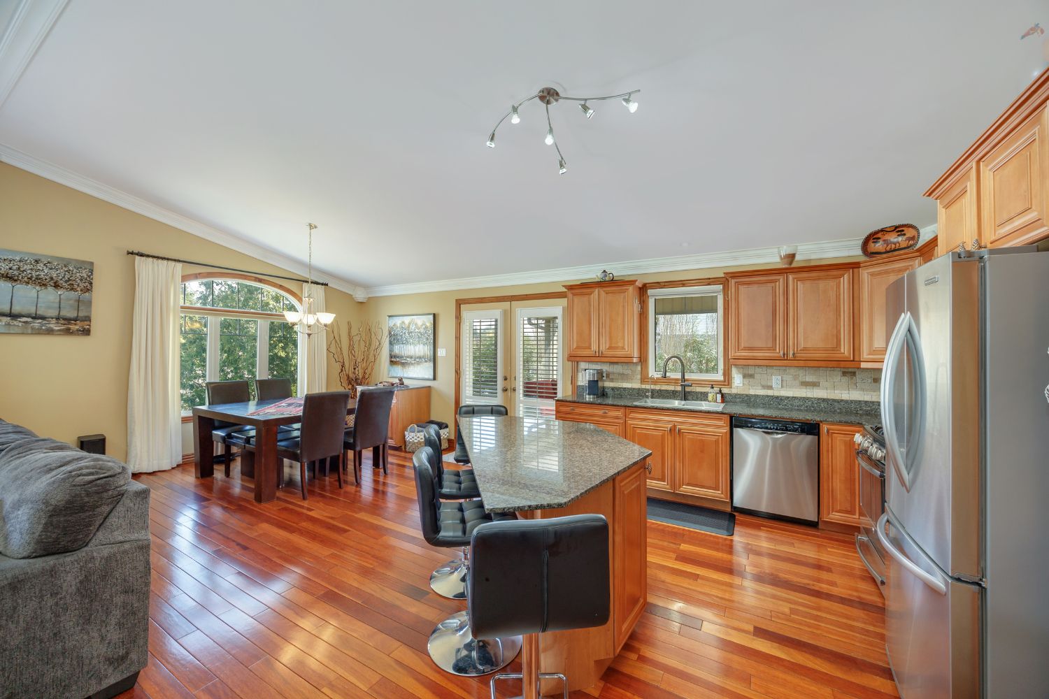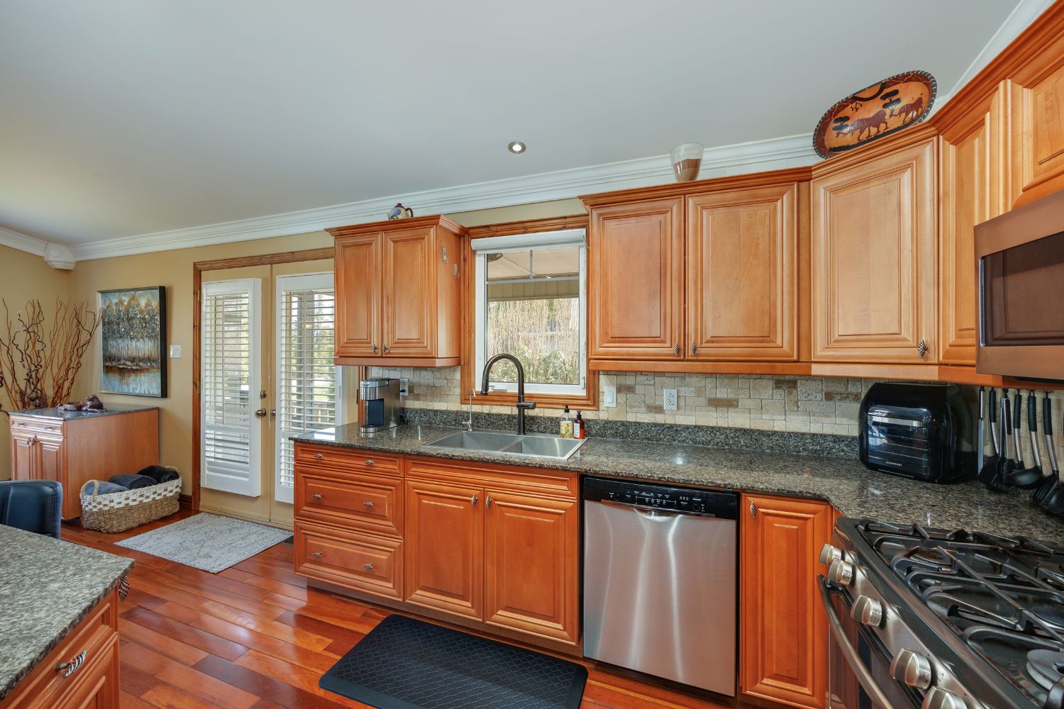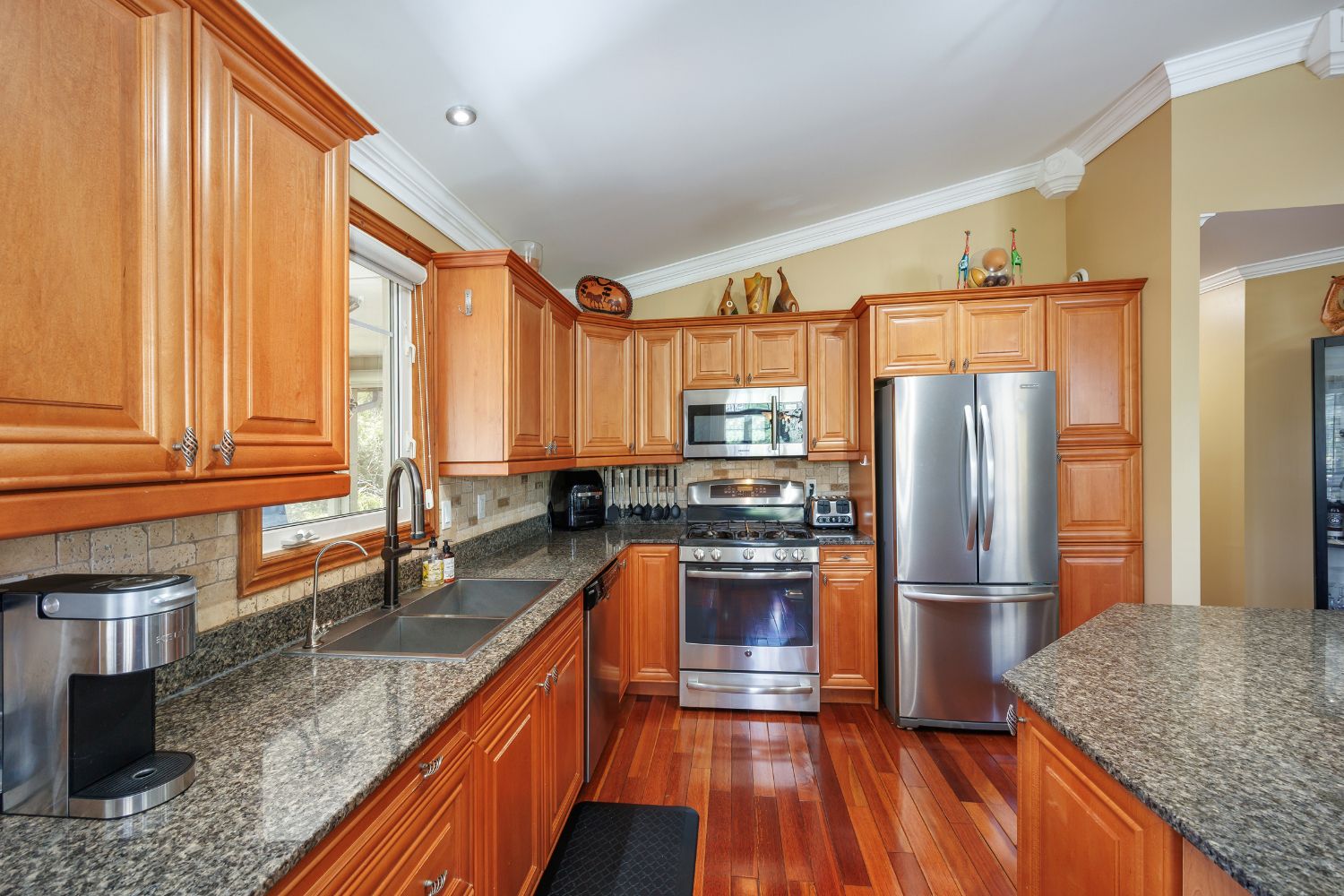 • Stylish kitchen featuring granite countertops and stainless-steel appliances.