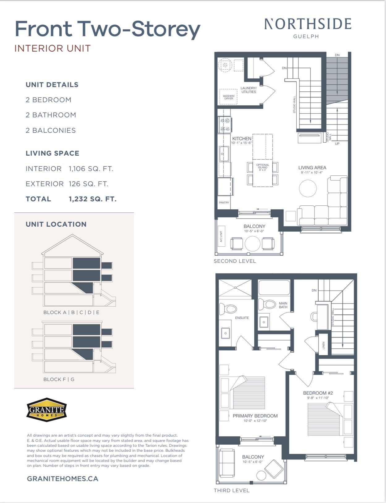 Welcome to 824 woolwich street, a beautiful 2 floor with 2 balconies, 2-bedroom, 2-bathroom unit in guelph's sought-after northside community! This modern stacked townhome offers a spacious open-concept layout with abundant natural light, a well-appointed kitchen with sleek cabinetry and stainless steel appliances, and a comfortable living area perfect for relaxing or entertaining. The primary bedroom features a private ensuite bathroom, while the second bedroom is generously sized and conveniently located near the additional full bathroom. -enjoy the convenience of in-suite laundry, ample storage space, and a private balcony for outdoor enjoyment. -located in a prime area, this home provides easy access to shopping ((walmart, dollarama, scotiabank, home sense etc.) , dining, parks, transit, and major highways.**all utilities extra & parking can be leased from the management at $100 monthly**
