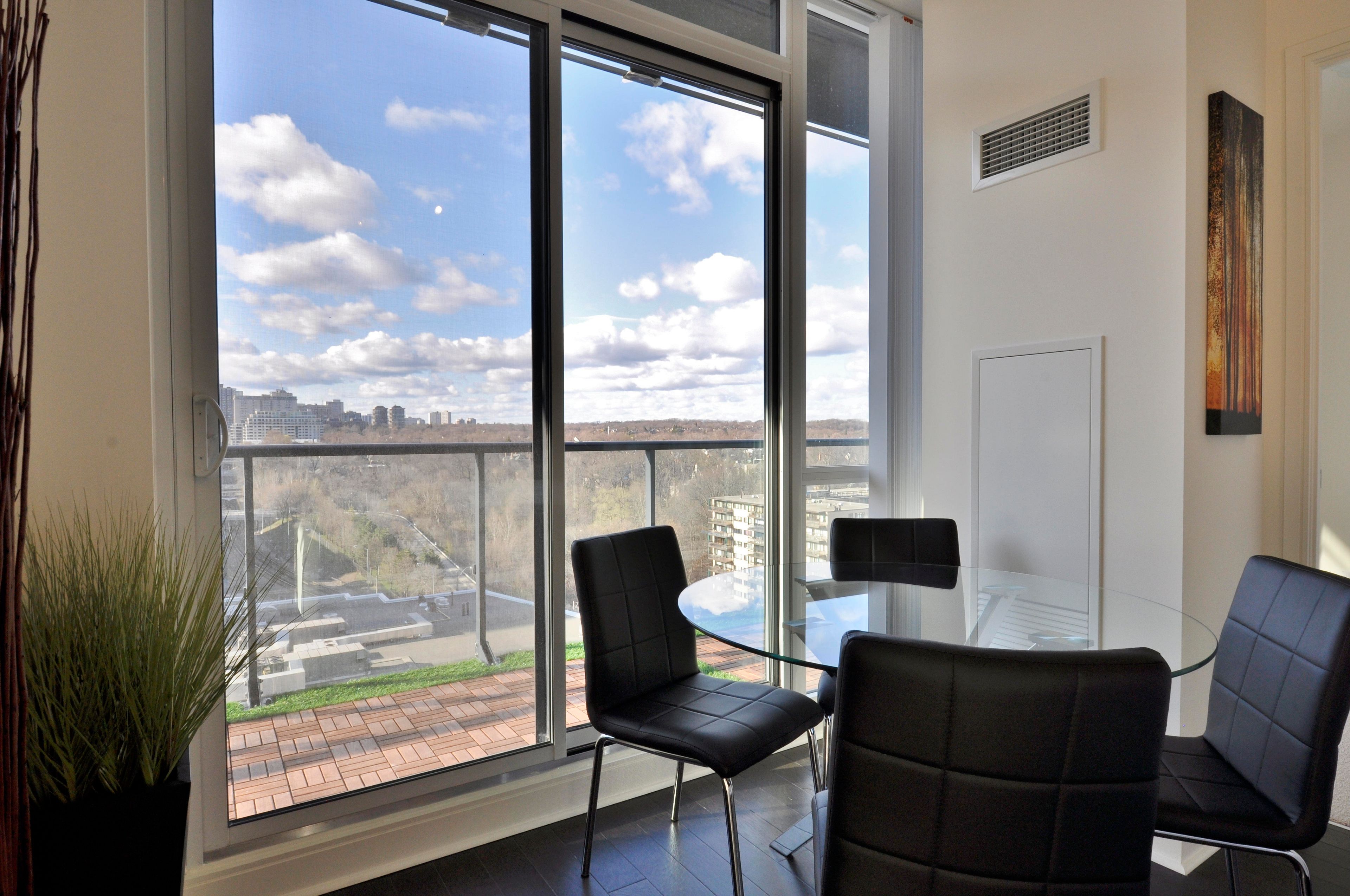 • Huge 300 sq ft balcony with views of Rosedale Valley.