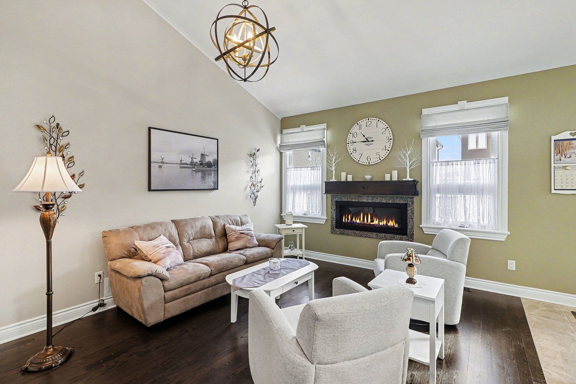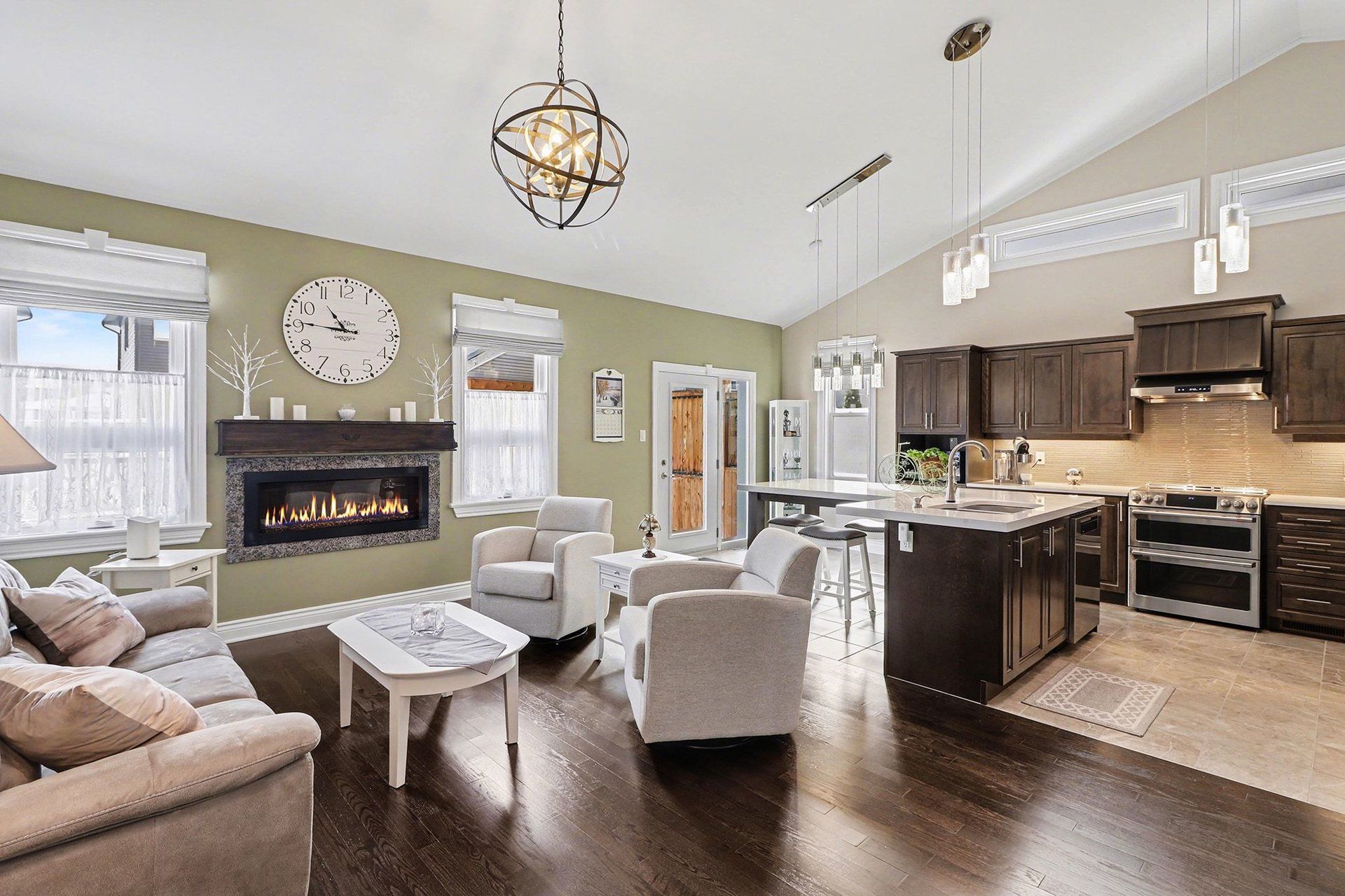 • Bright open-concept main floor with oversized windows and soaring ceilings.