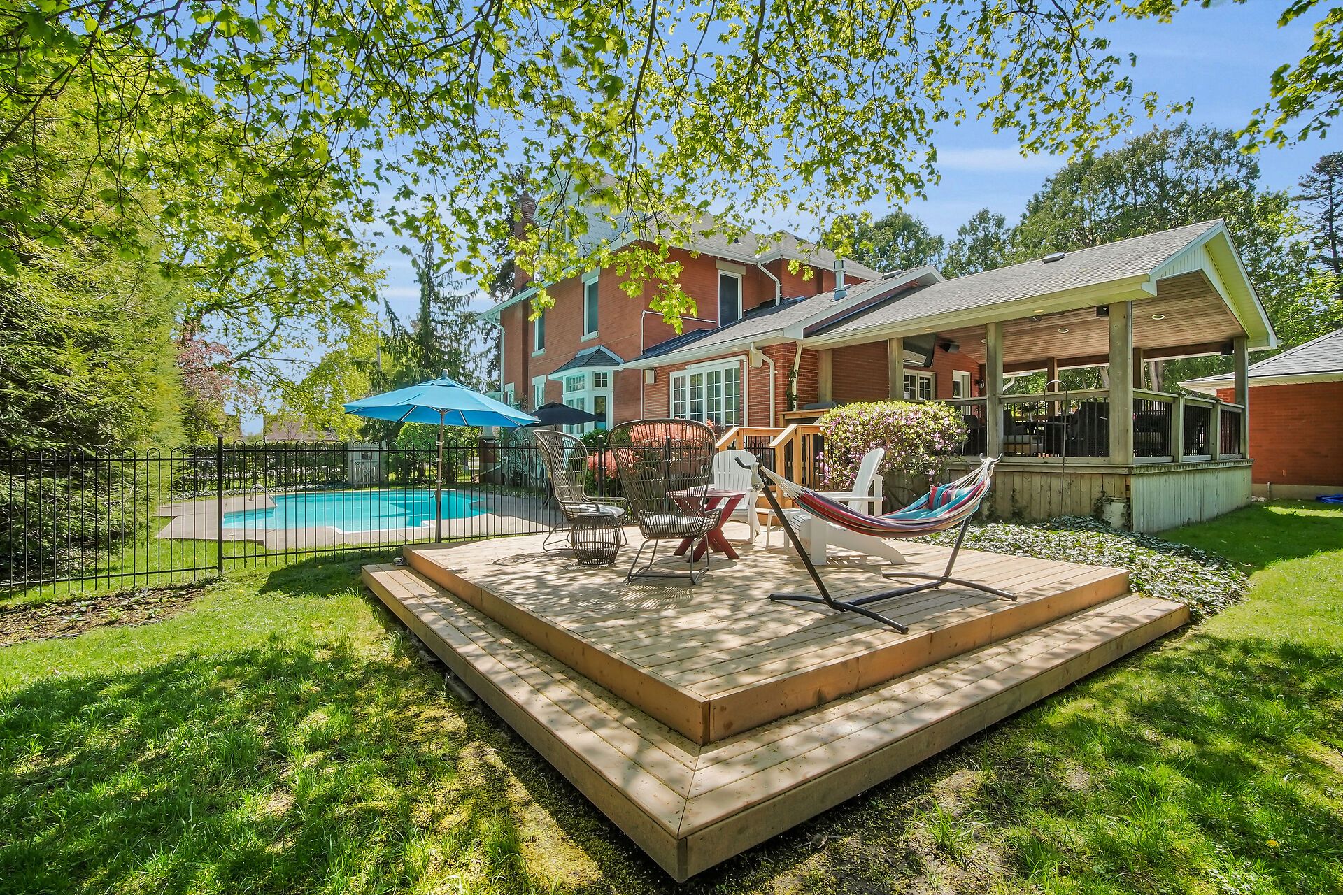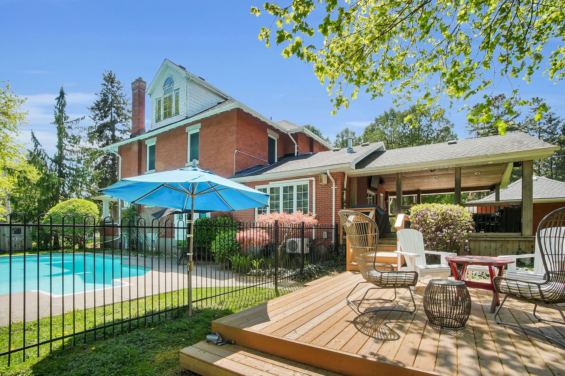 Beautiful estate sized lot(122ft x 157ft) near springbank park, a charming 2. 5 storey 4+1 beds, 3 bath home offers timeless charm and exceptional living space in a highly desirable location. Just steps from thames valley golf course and the pedestrian bridge to springbank park, and only a 10-minute drive to downtown london, this property combines serenity with convenience. Inside, you'll find spacious principal rooms with soaring ceilings, abundant natural light from large windows, and rich natural wood trim and doors throughout. The main floor features a cozy family room with a gas fireplace and custom oak wet bar, perfect for entertaining as well as a convenient laundry room. The kitchen boasts classic oak cabinetry, a center island with jenn-air stove, built-in oven. Upstairs, generous-sized bedrooms provide comfort and privacy, while the third-level loft offers flexible space for a home office, studio, or additional living area. Enjoy the outdoors on the newer covered deck or take a dip in the inviting backyard pool, ideal for relaxing summer days. Windows(2015),new a/c(2022), pool pump (2025), basement renovation -1 additional bedroom with full bath(2019), new kitchen faucet(2025), 2nd floor hallway and stairs (2025) and new dishwasher(2025). This is a rare opportunity to own a well-maintained character home in a premier london location.
