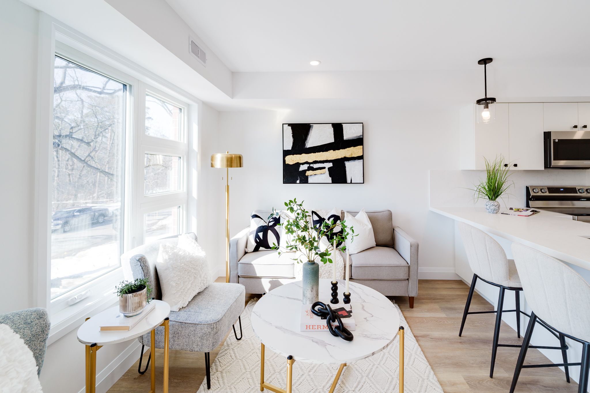 • Spacious 1,200 sq. ft. home with 9-foot ceilings and large windows.