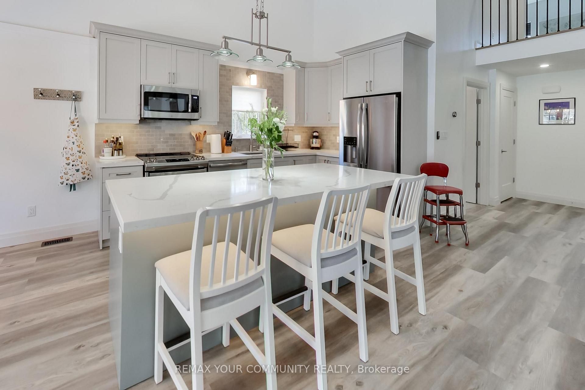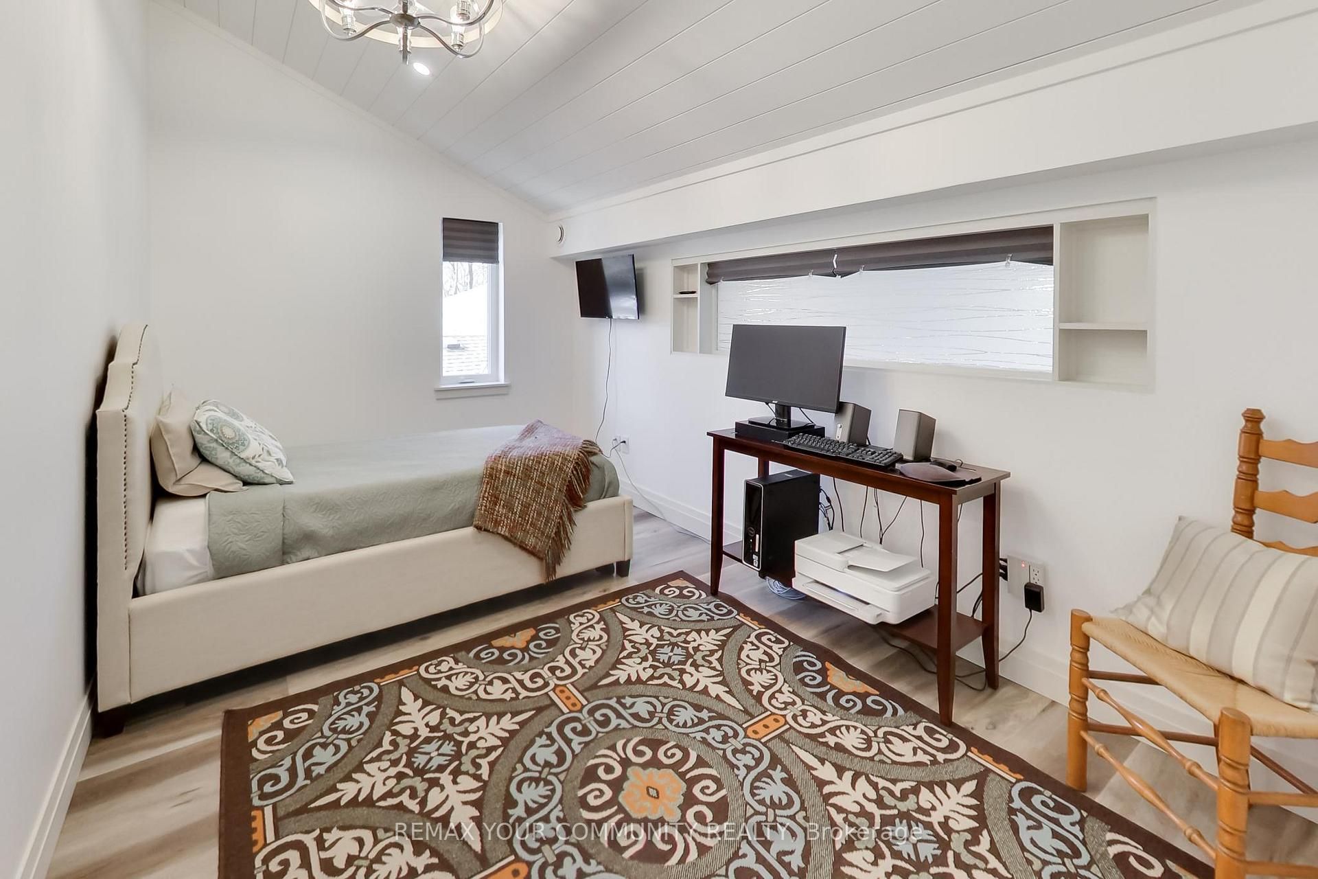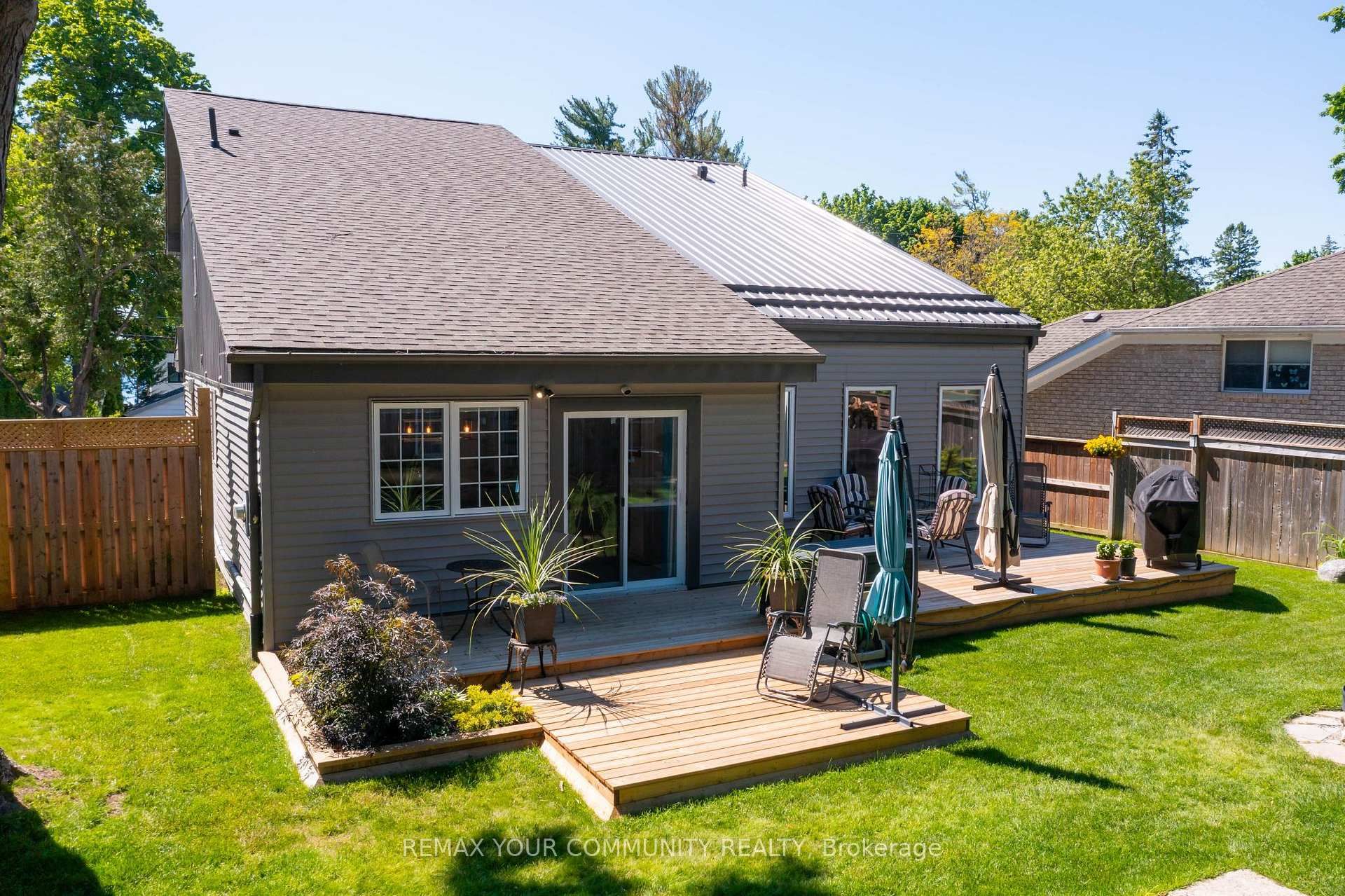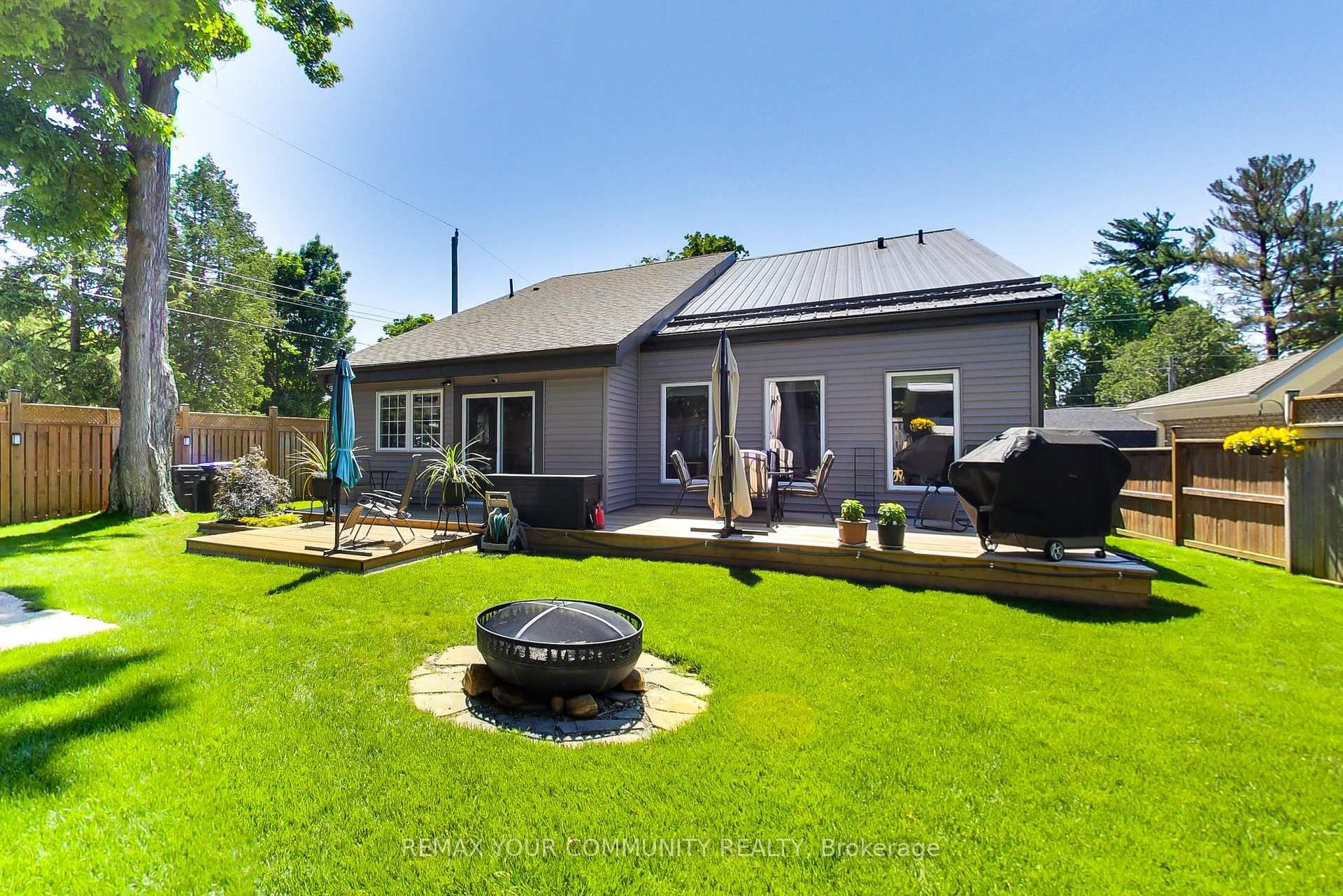 This "lakeside staycation" is more than just a home-it's a year-round retreat designed for those who love to entertain and unwind. From the soaring ceilings to the private beach access, every inch of this home is "dressed up" and ready for its next chapter. Featuring a main floor office/guest room with 3 more spacious bedrooms upstairs, 2 1/2 baths, a 6' shower with seat in ensuite, 10' wall of closets in primary bdrm., cathedral ceilings in 2 guest bdrms & the main bath. Open-concept living room/dining area and kitchen share soaring cathedral ceilings and abundant natural light from numerous windows! The kitchen features a 7' island, quartz counters, and a walk-in pantry! The double-attached garage is a powerhouse of functionality, equipped with its own electrical panel, forced-air gas heater, and built-in workbench with cabinetry. Plus, the mezzanine storage ensures you'll never run out of space for seasonal gear. Relax on the 34-foot wide rear deck overlooking perennial gardens and a manicured yard, or retreat to the charming front porch to catch the cool breezes off lake simcoe. A secondary rear driveway makes hosting guests or storing a boat effortless. You are just steps away from the abc club's private adult members beach and dock. Prefer a livelier afternoon? The much larger, family-friendly members' beach is just a short 5-minute stroll away. This home and its location are truly wonderful!