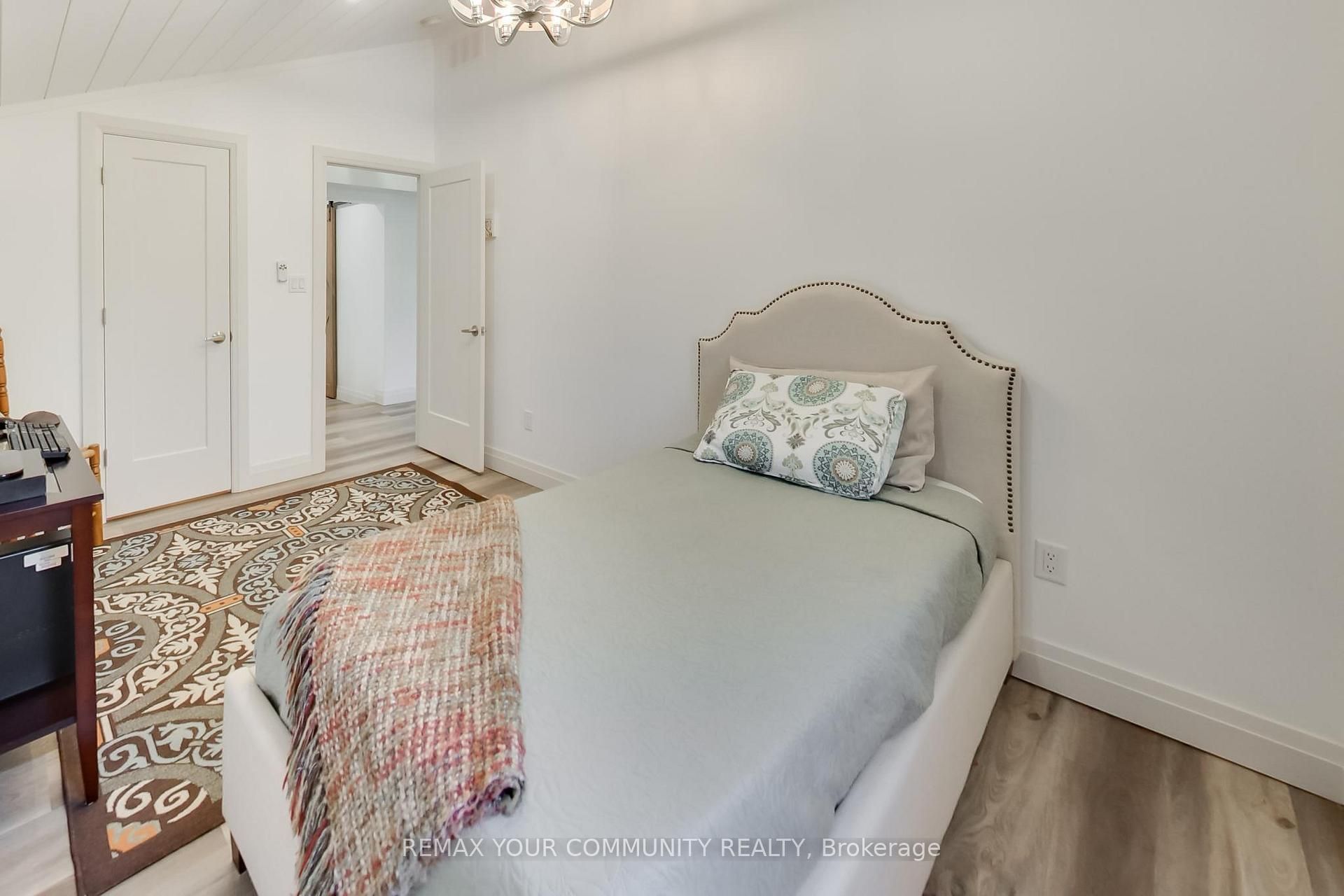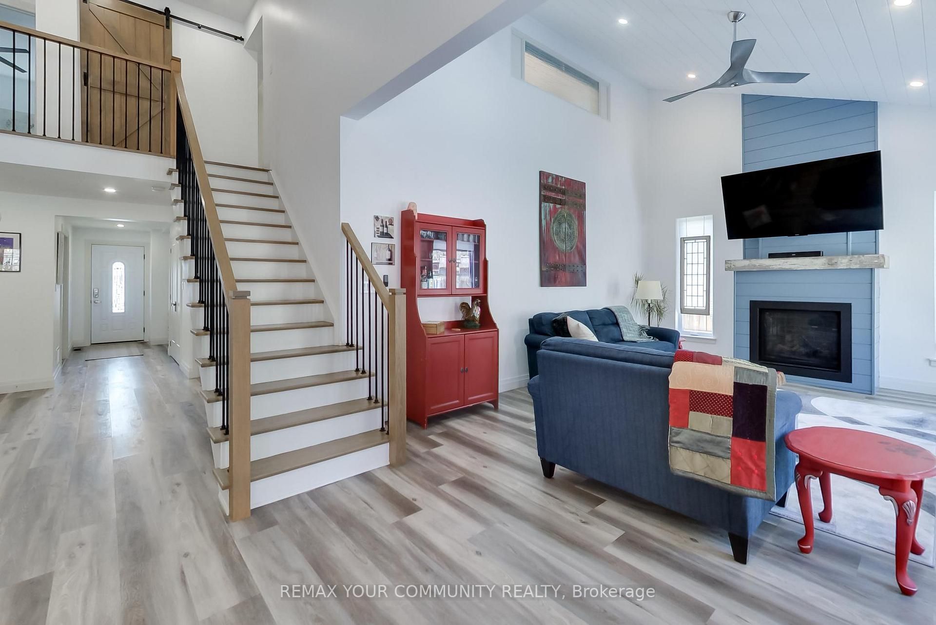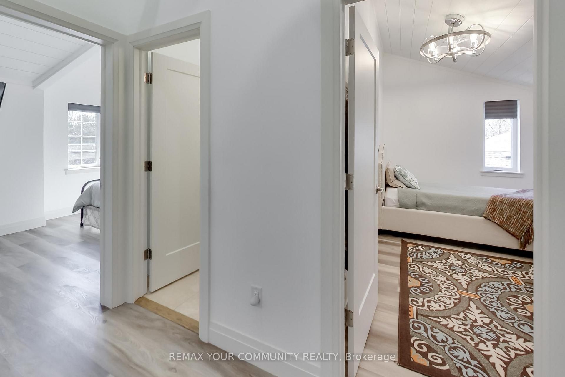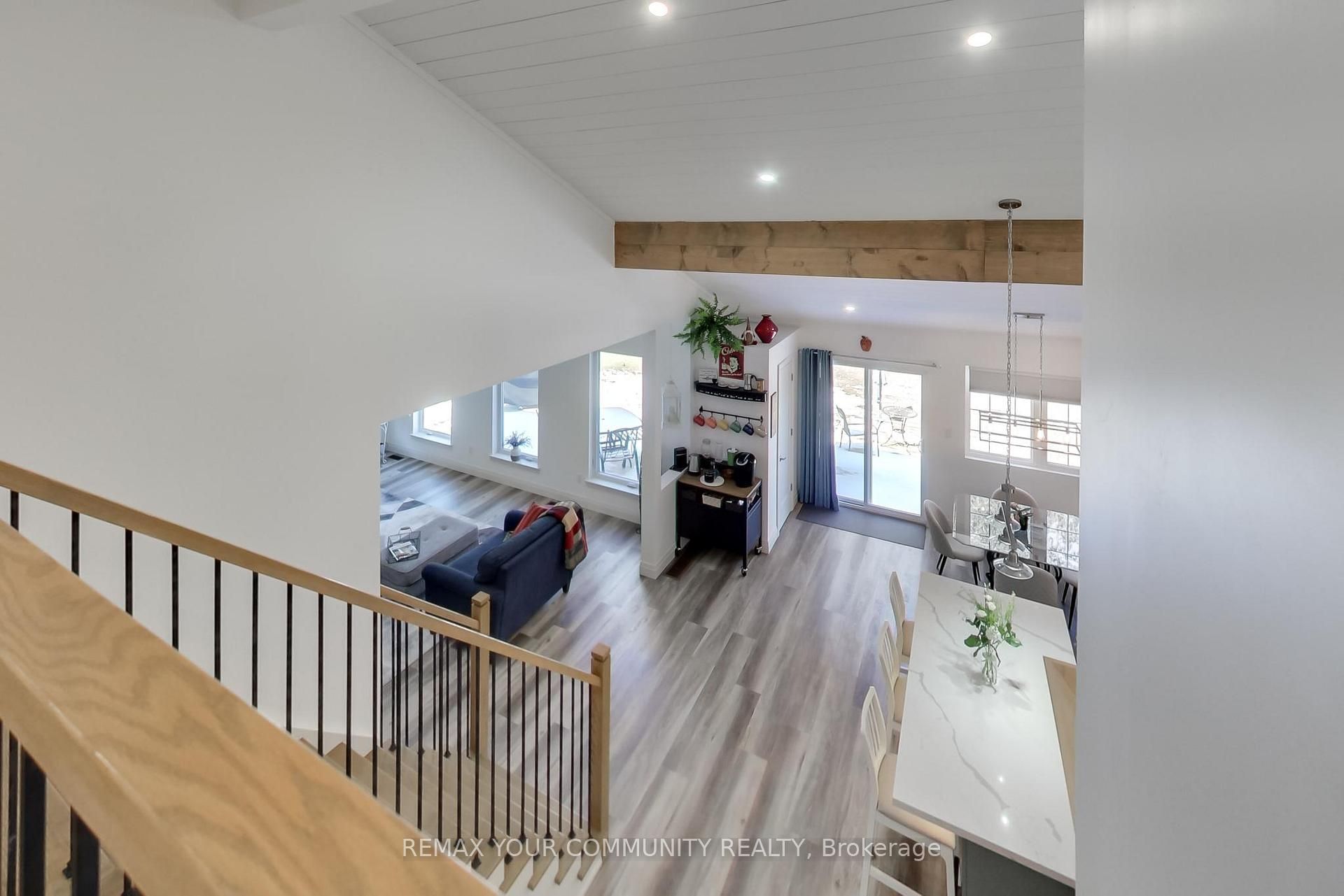 This "lakeside staycation" is more than just a home-it's a year-round retreat designed for those who love to entertain and unwind. From the soaring ceilings to the private beach access, every inch of this home is "dressed up" and ready for its next chapter. Featuring a main floor office/guest room with 3 more spacious bedrooms upstairs, 2 1/2 baths, a 6' shower with seat in ensuite, 10' wall of closets in primary bdrm., cathedral ceilings in 2 guest bdrms & the main bath. Open-concept living room/dining area and kitchen share soaring cathedral ceilings and abundant natural light from numerous windows! The kitchen features a 7' island, quartz counters, and a walk-in pantry! The double-attached garage is a powerhouse of functionality, equipped with its own electrical panel, forced-air gas heater, and built-in workbench with cabinetry. Plus, the mezzanine storage ensures you'll never run out of space for seasonal gear. Relax on the 34-foot wide rear deck overlooking perennial gardens and a manicured yard, or retreat to the charming front porch to catch the cool breezes off lake simcoe. A secondary rear driveway makes hosting guests or storing a boat effortless. You are just steps away from the abc club's private adult members beach and dock. Prefer a livelier afternoon? The much larger, family-friendly members' beach is just a short 5-minute stroll away. This home and its location are truly wonderful!