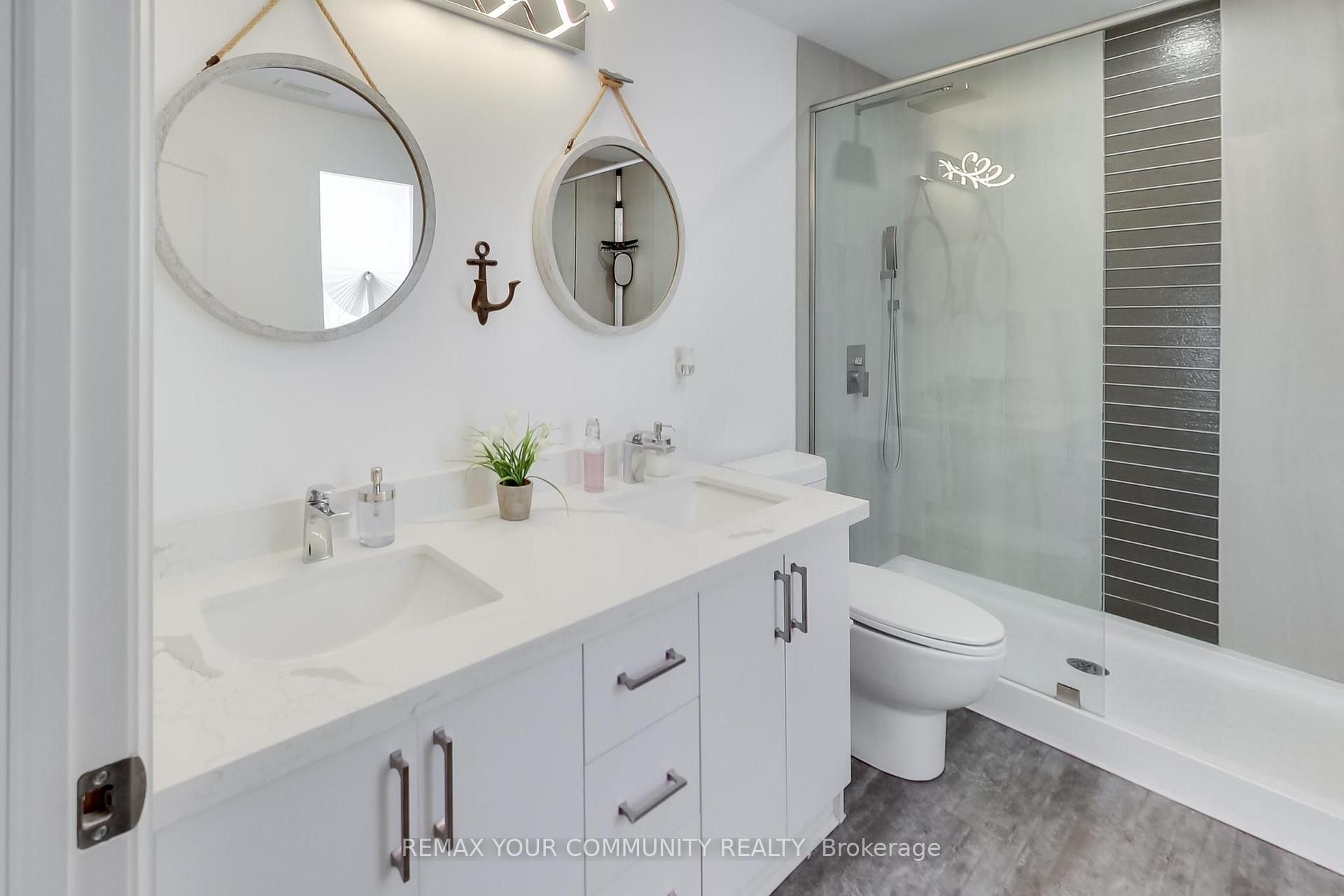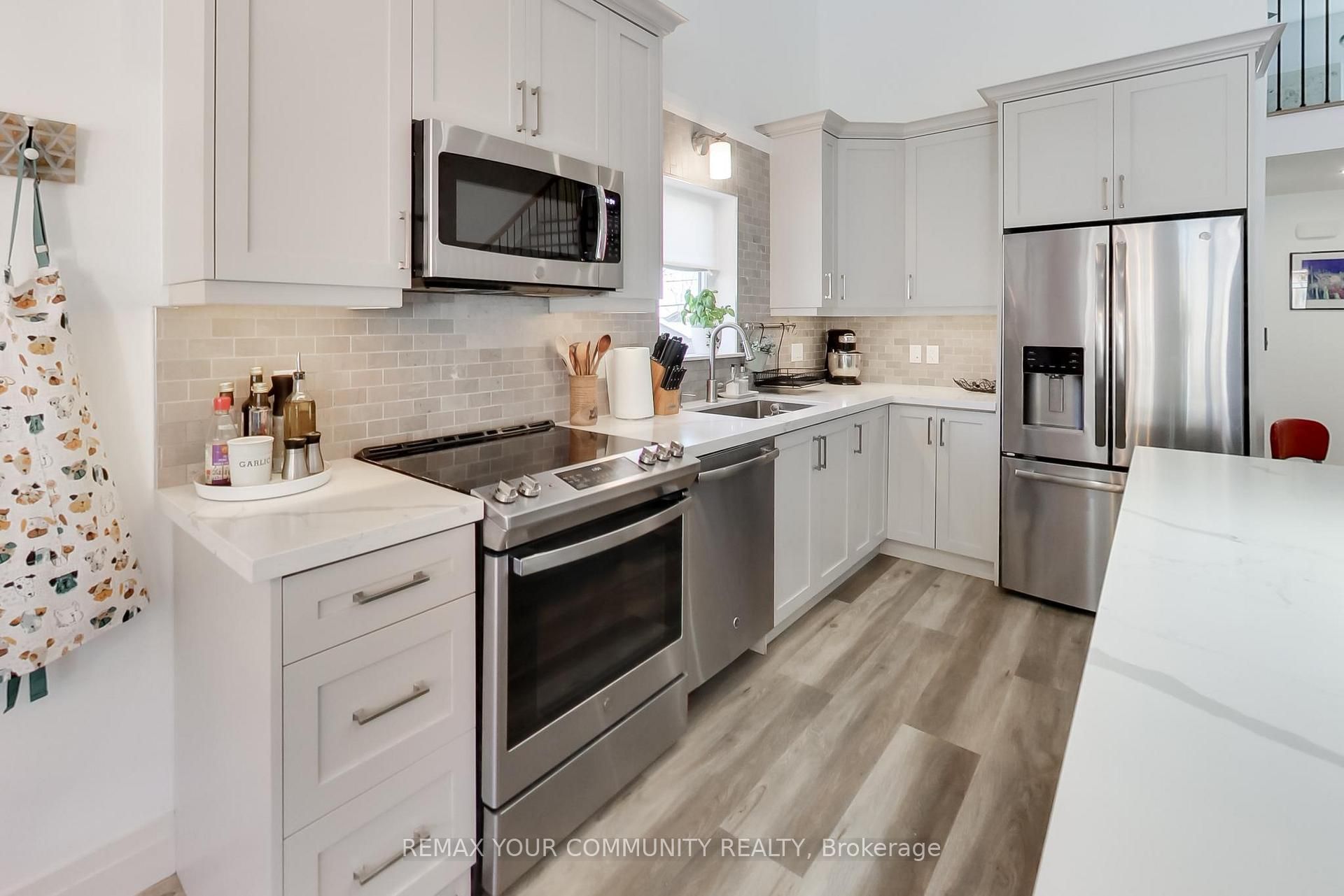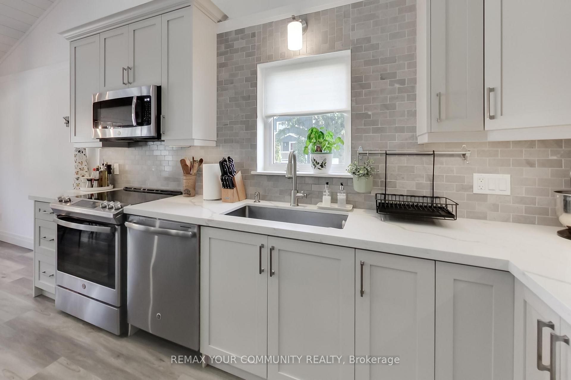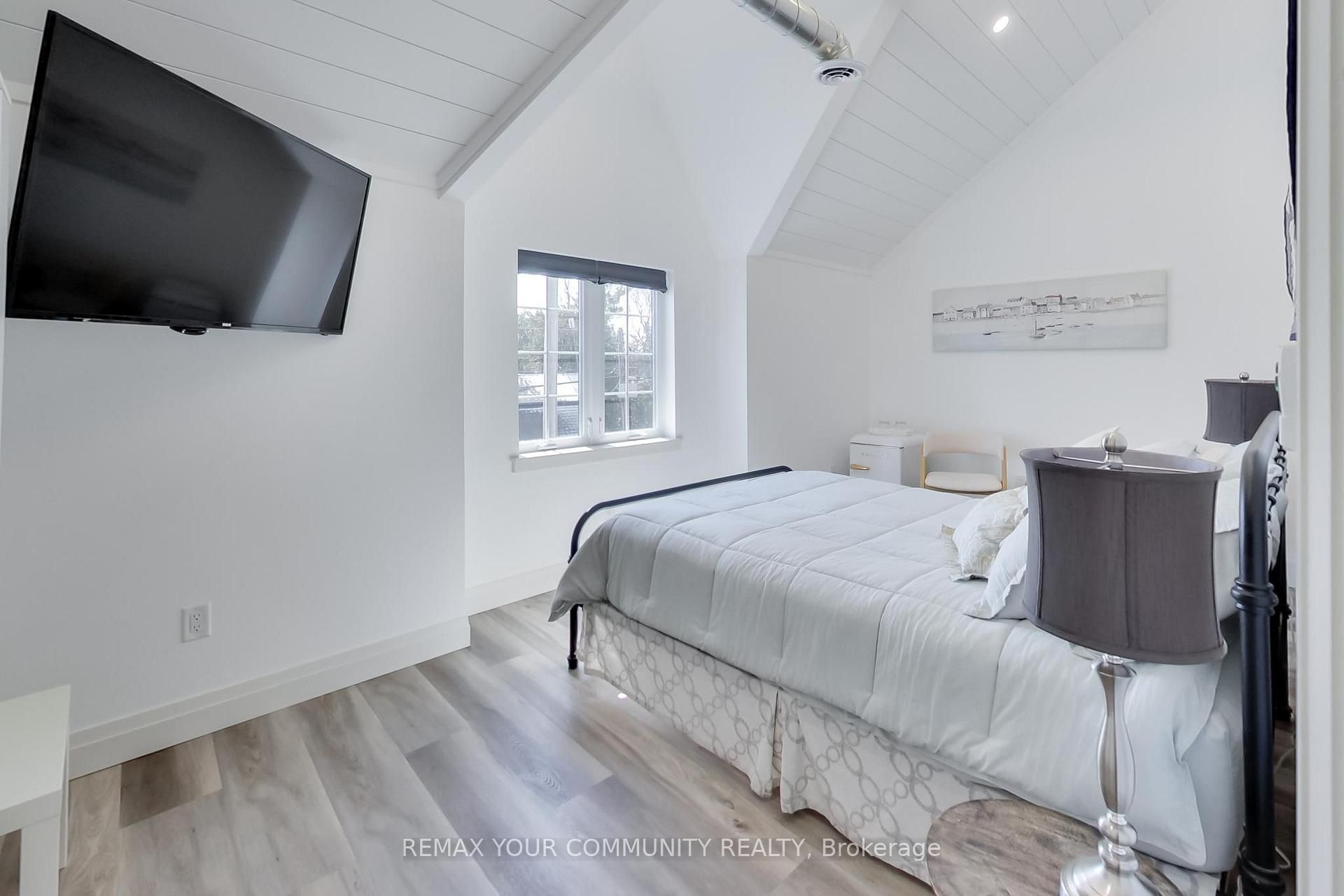 This "lakeside staycation" is more than just a home-it's a year-round retreat designed for those who love to entertain and unwind. From the soaring ceilings to the private beach access, every inch of this home is "dressed up" and ready for its next chapter. Featuring a main floor office/guest room with 3 more spacious bedrooms upstairs, 2 1/2 baths, a 6' shower with seat in ensuite, 10' wall of closets in primary bdrm., cathedral ceilings in 2 guest bdrms & the main bath. Open-concept living room/dining area and kitchen share soaring cathedral ceilings and abundant natural light from numerous windows! The kitchen features a 7' island, quartz counters, and a walk-in pantry! The double-attached garage is a powerhouse of functionality, equipped with its own electrical panel, forced-air gas heater, and built-in workbench with cabinetry. Plus, the mezzanine storage ensures you'll never run out of space for seasonal gear. Relax on the 34-foot wide rear deck overlooking perennial gardens and a manicured yard, or retreat to the charming front porch to catch the cool breezes off lake simcoe. A secondary rear driveway makes hosting guests or storing a boat effortless. You are just steps away from the abc club's private adult members beach and dock. Prefer a livelier afternoon? The much larger, family-friendly members' beach is just a short 5-minute stroll away. This home and its location are truly wonderful!