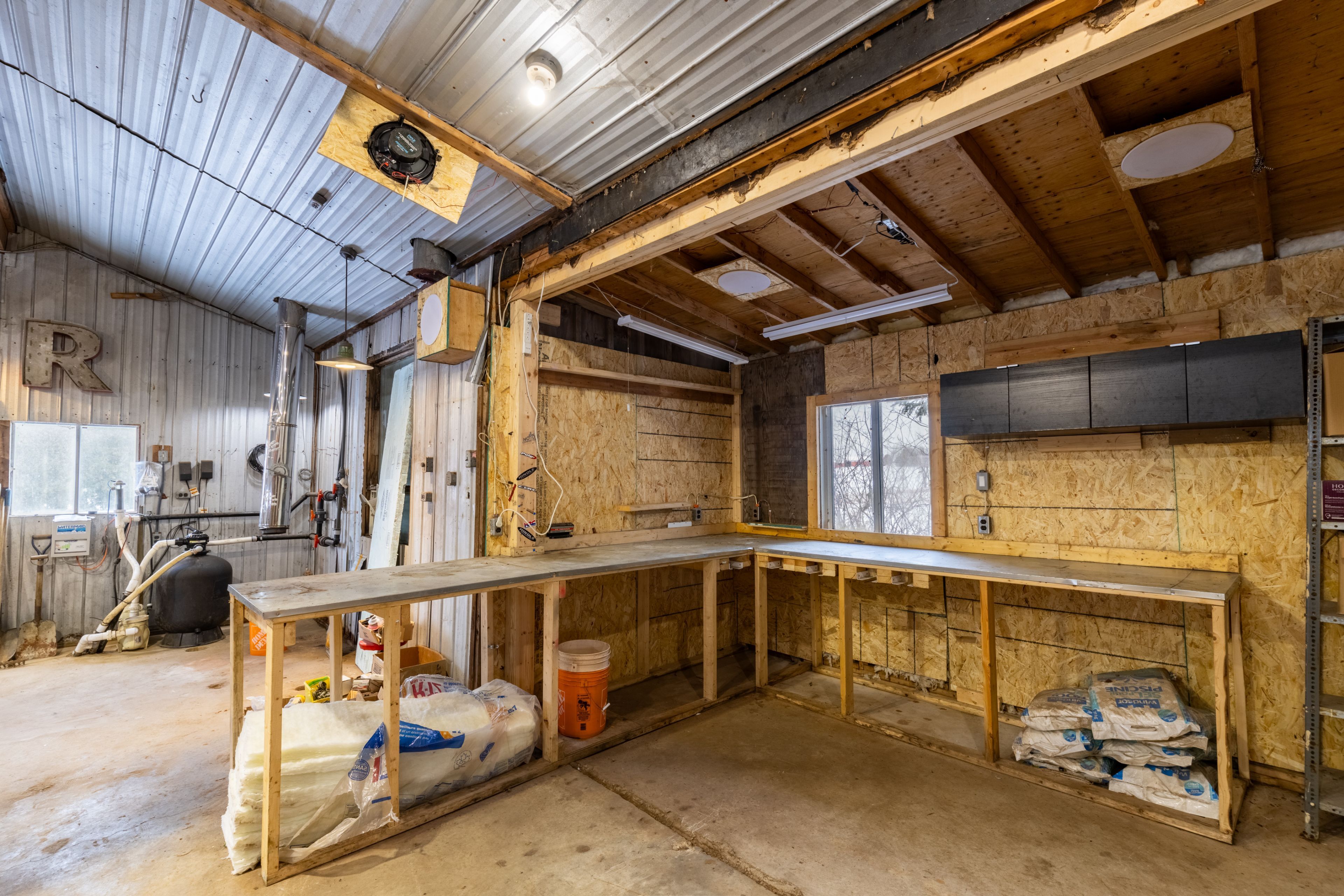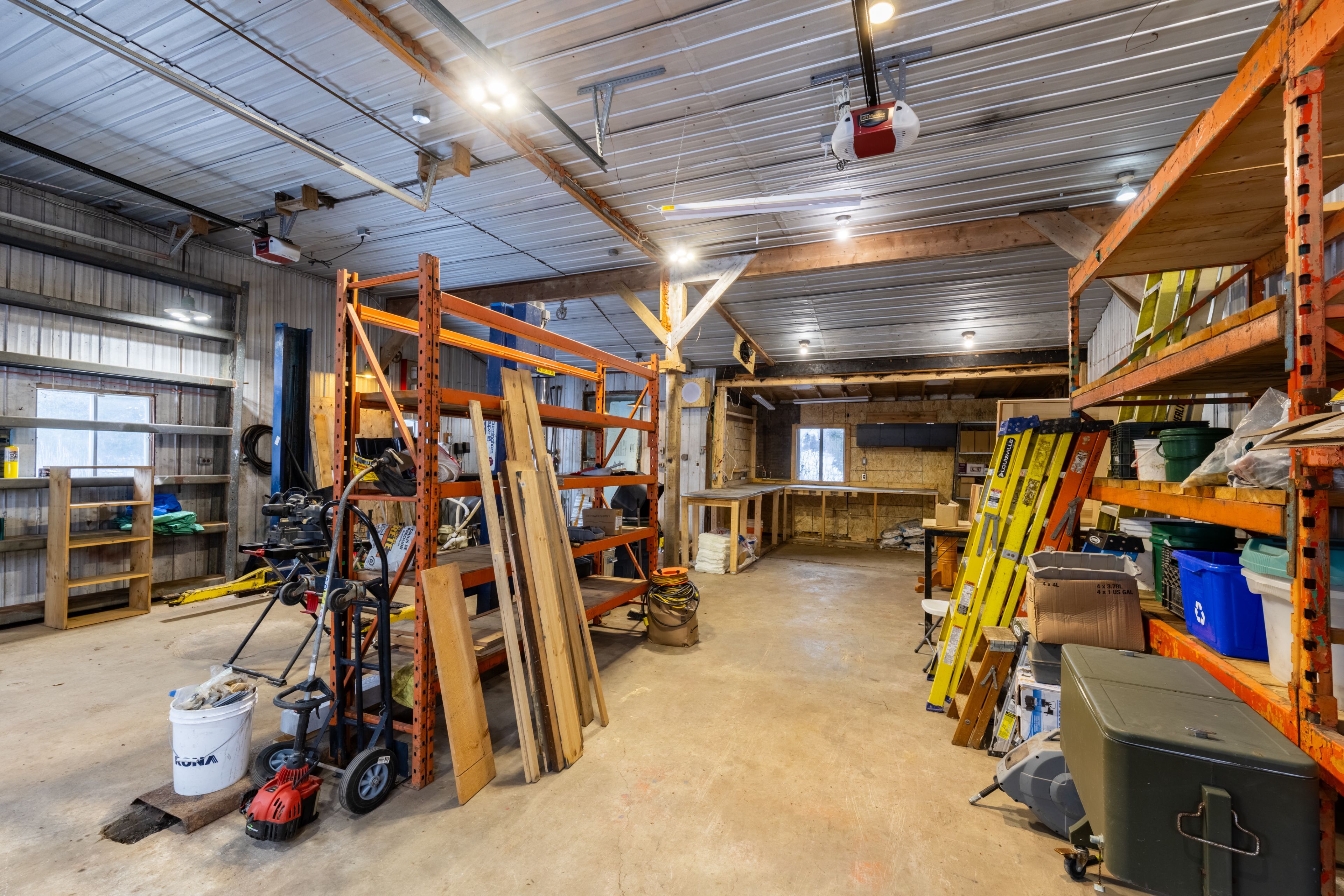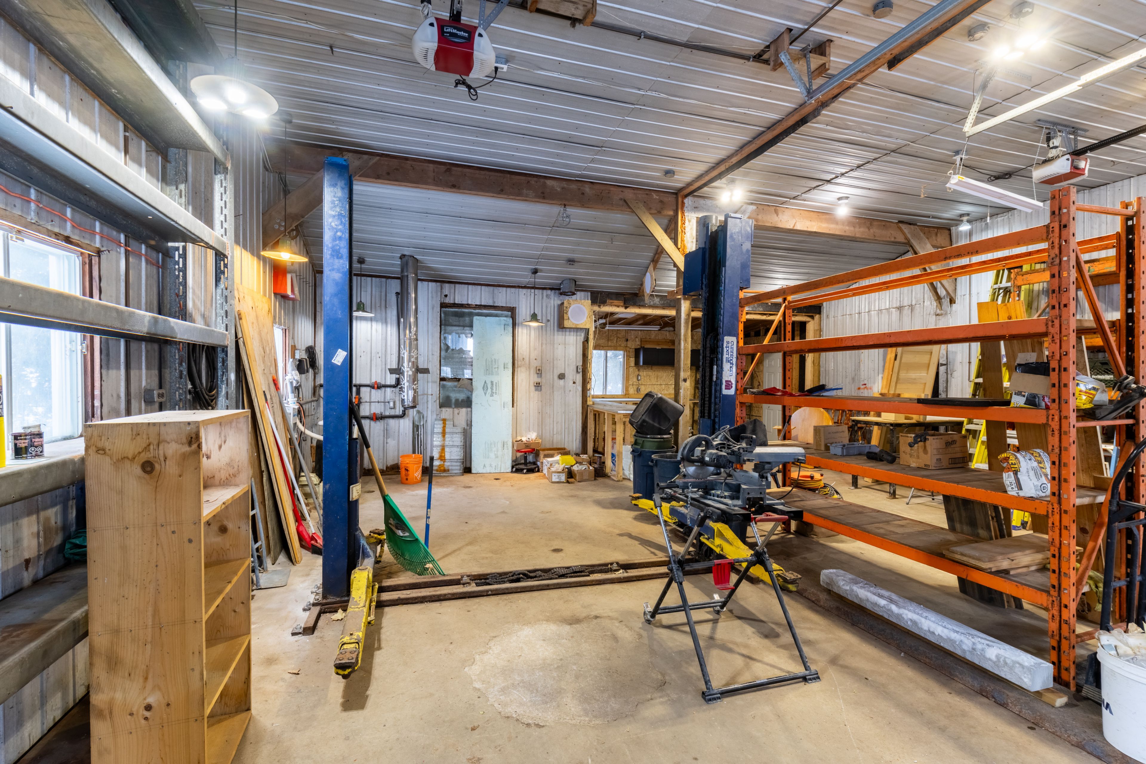 • 30' x 30' shop with hoist, perfect for car enthusiasts and hobbyists.