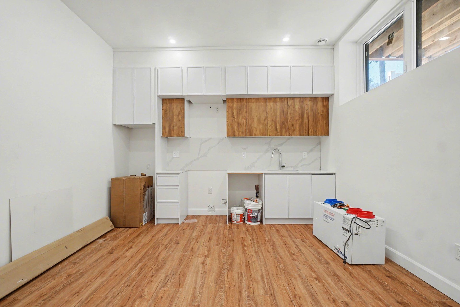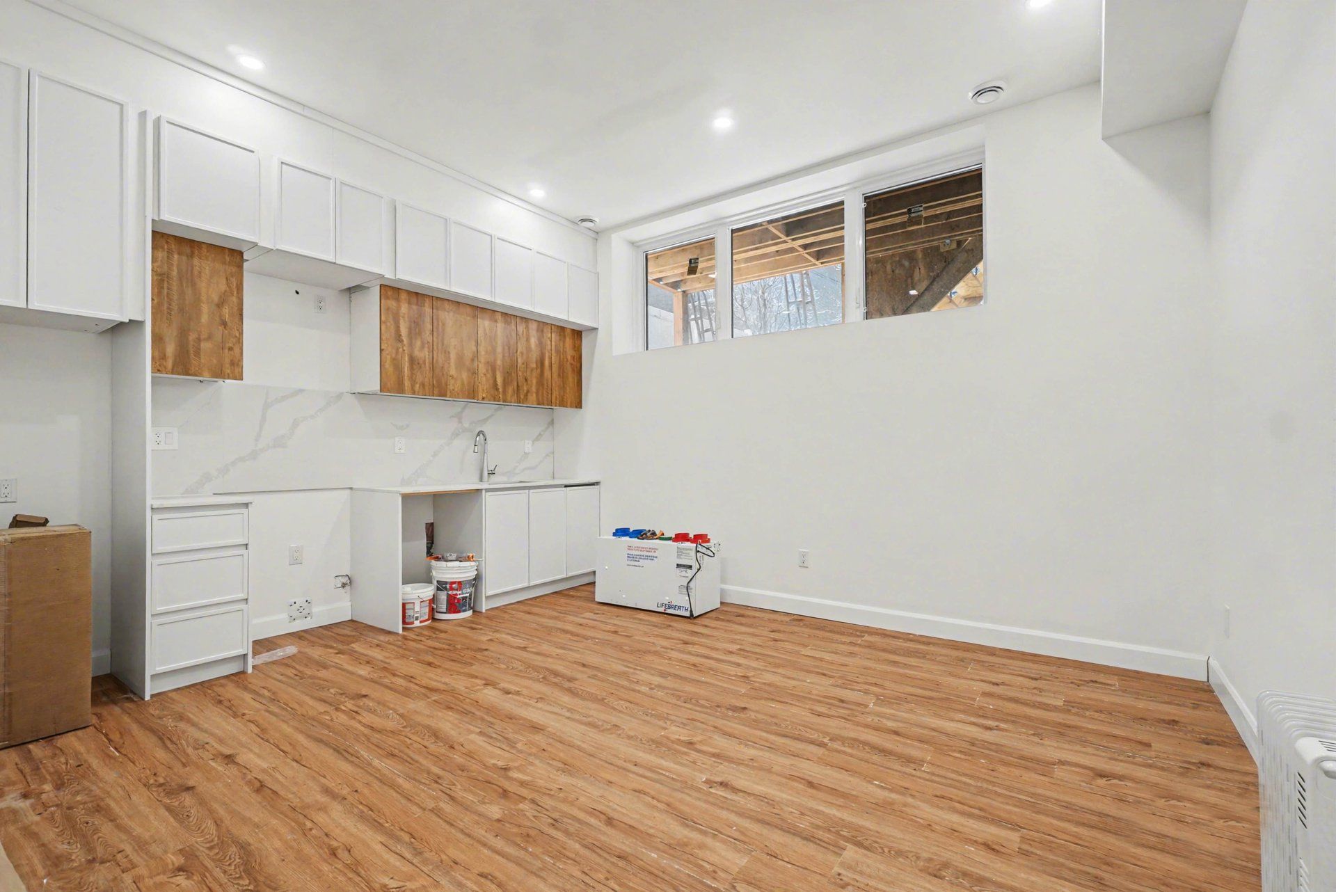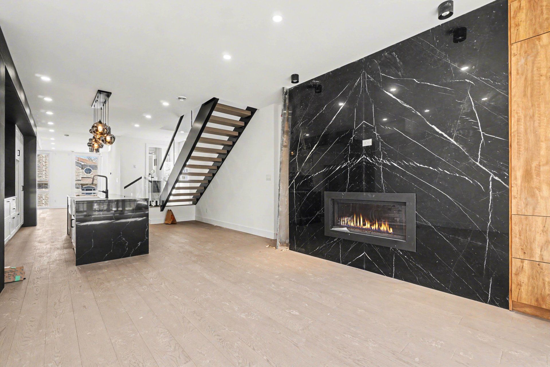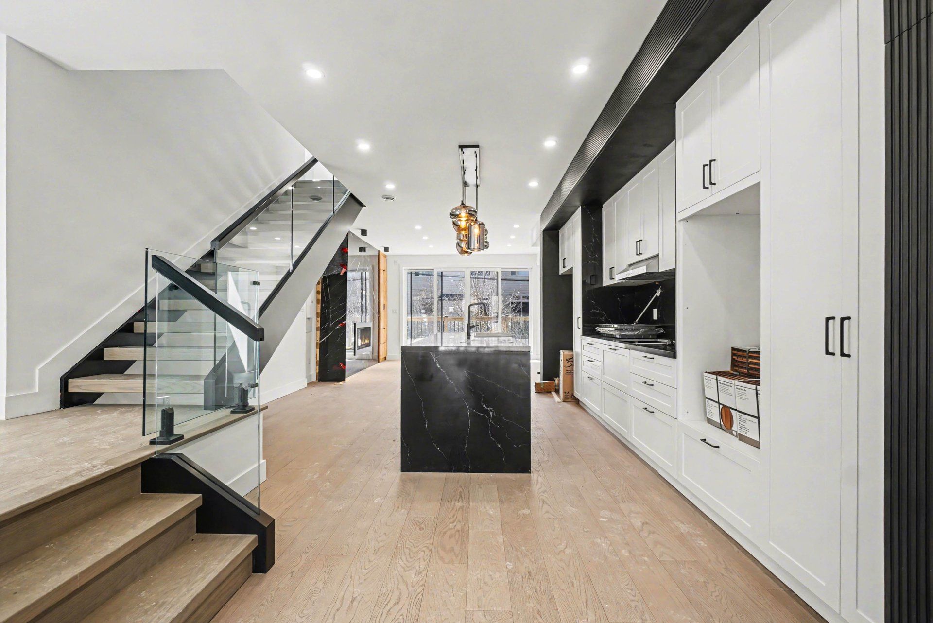 • Open-concept main floor features 10' ceilings and large windows.