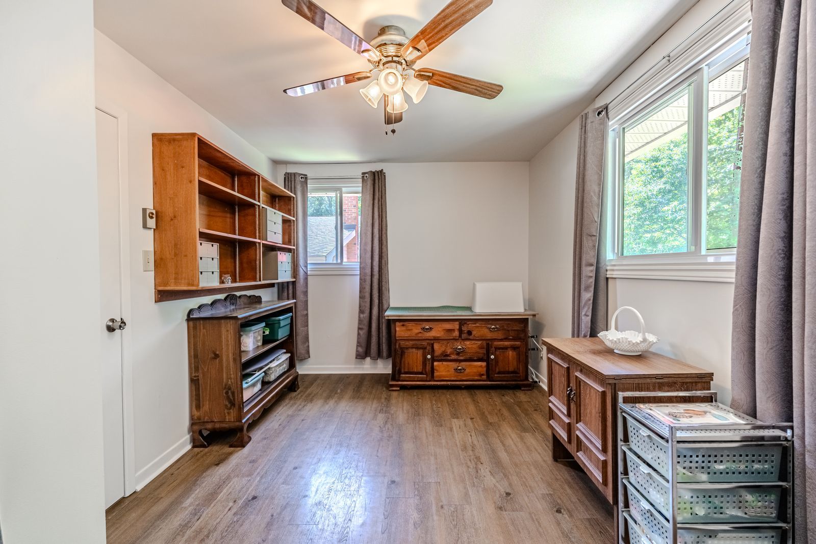 West end charmer with thoughtful updates, a legal suite with separate entrance, spacious interior, & set on a large in-town lot! You won't fully get this home until you step inside, but once you do, it all makes sense. Set on a 50 x 149 ft lot in midland's sought-after west end, this property presents over 2,600 fin sq ft with a layout that's incredibly versatile. The kitchen features warm wood-toned cabinetry, a refreshed backsplash, a double sink with a window above, and generous cabinetry, including pantry storage. The dining room feels bright and welcoming with crown moulding, a large window, and built-in storage, while the adjacent living room offers wood plank ceilings, more crown moulding, and a walkout to the sunroom. The front sunroom creates a practical space for shoes, coats, and daily storage without sacrificing flow. A generous office space features a walkout, separate entrance, and powder room, with the potential to be sectioned off from the rest of the home, making it an ideal setup for remote work or any role that benefits from a separate entry. The primary bedroom is located above the garage and features a walk-in closet plus an additional closet for overflow. Bamboo flooring adds durability throughout the main floor, while updated oak stairs create a stylish connection between levels. Downstairs, the legal second suite includes a separate entrance, an updated kitchen, newer flooring, a refreshed bathroom, and fresh paint. The basement rec room hosts a gas fireplace, stone surround, built-in desk, and crown moulding. Whether you're looking for a mortgage helper, space for extended family, or a smart investment opportunity, the legal basement apartment with its own entrance gives you flexibility. The backyard hosts a gazebo, patio, and two sheds. Updates include thermal double-paned windows, exterior doors, a metal roof (2008) with a transferrable warranty, and a furnace (2021.) it's not just a #hometostay - it's a move that makes sense!