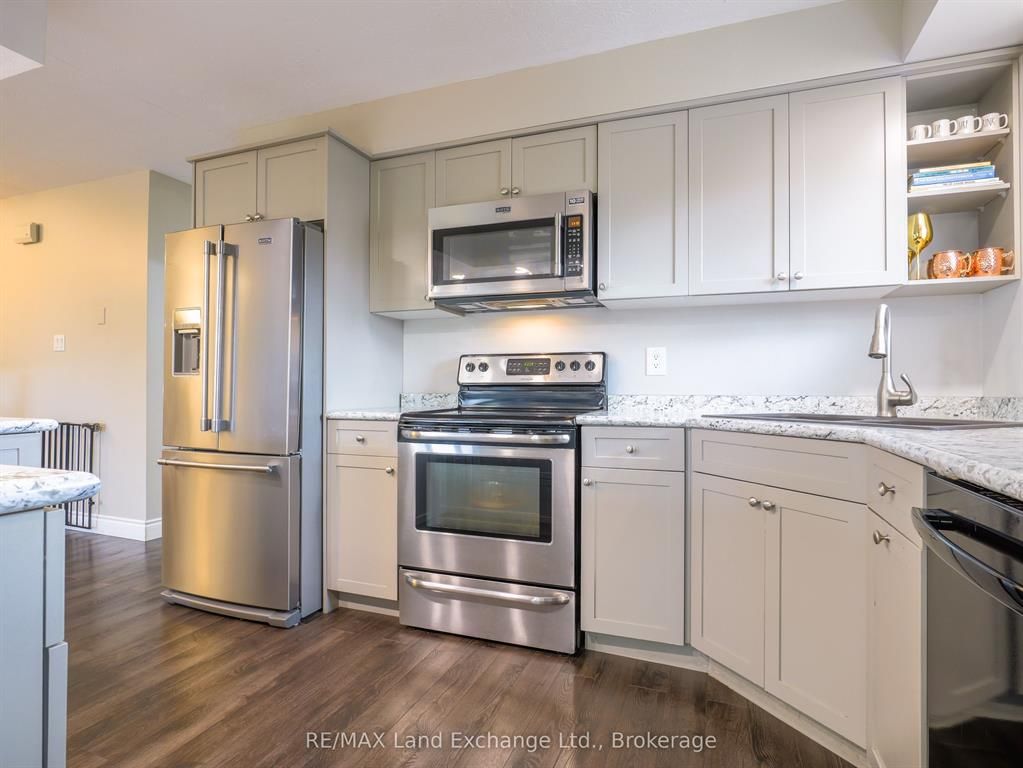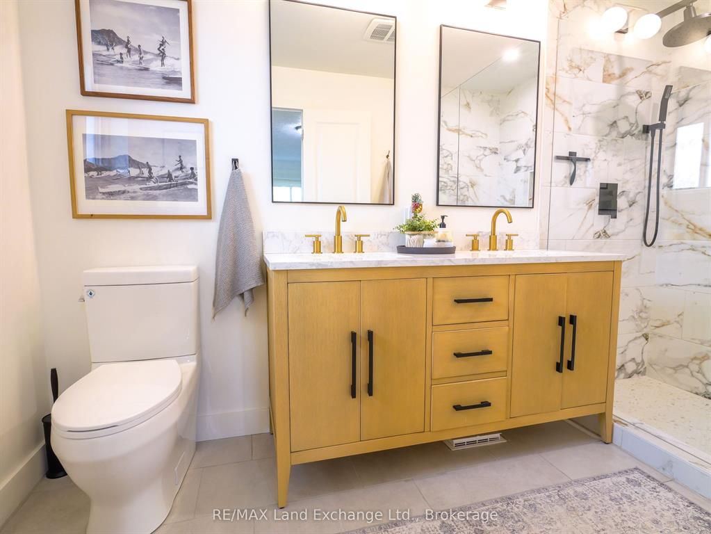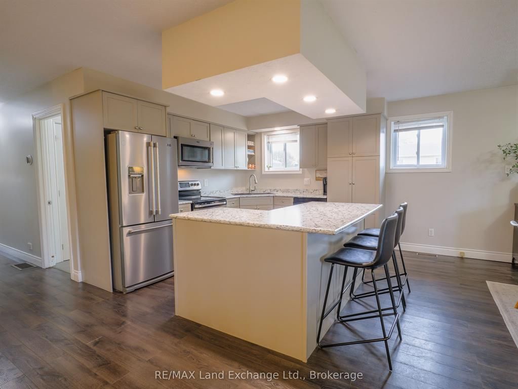 Spacious split-entry home located in a desirable area of port elgin. Ideally situated close to elementary schools, walking trails, the beach, and across the road from nodwell park. The functional foyer provides convenient access to the upper level, lower level, garage, and backyard. The bright main floor features an open-concept kitchen, living, and dining area, along with three bedrooms and a 4-piece main bathroom. The primary bedroom includes a custom-built-in closet and a stylish 4-piece ensuite. The lower level offers plenty of additional living space with a family room, recreation room, fourth bedroom, laundry room, and a 4-piece bathroom. Recent updates include the main 4-piece bathroom, ensuite bathroom, and the front deck. Additional highlights include a fireplace in the family room, central air conditioning, and gas forced-air heating. The double-wide concrete driveway provides ample parking. Set on an extra-large 62' x 168' lot, there's plenty of room for family fun, whether it's an ice rink in the winter or a pool in the summer. Outdoor entertaining is easy with both a front deck and a back deck. The fenced backyard is nicely landscaped and maintained with an irrigation system. Be sure to check out the 3d tour and book your private showing.