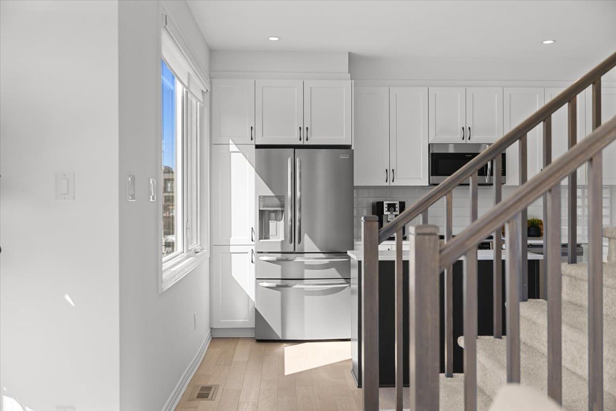If you've been waiting for something elevated, intentional, and completely move in ready, this is the one. Welcome to this upgraded corner unit townhome offering 3 levels of refined living in wateridge village on kiniw. A vibrant, sustainable community just minutes from downtown ottawa. Set on a corner lot with a long driveway and a covered porch that wraps to the front door, this home makes a strong first impression. Inside, tall flat ceilings and oversized windows create a bright, open feel throughout. The main level features tiled flooring, a dedicated office or den, generous closet space, and interior access to an extended 30 ft garage with built in shelving. The second level is the heart of the home with an open concept layout designed for everyday living and entertaining. Enjoy a sun filled family room, dining area with corner windows, and a beautifully finished kitchen with quartz counters, prep island, peninsula with extended breakfast bar, recessed sink, tile backsplash, and upgraded lighting. Step onto your private balcony with a privacy wall. Upstairs offers 3 bedrooms including a primary retreat with walk in closet with custom shelving and an ensuite with glass shower. Two additional bedrooms, full bath with quartz, and a convenient laundry room complete the level. Features include wide plank pre engineered flooring, upgraded carpet, designer plumbing fixtures, shaker style doors, and pot lights throughout. Close to parks, bike paths, montfort hospital, and everyday amenities including pharmacy, pilates, physio, dental, and a future coffee shop. Quick access to downtown, beechwood village, and the 417. A home that feels right the moment you walk in. Association fee of $175. 00 per month for private rd, grass cutting, snow removal, windows and common gardening