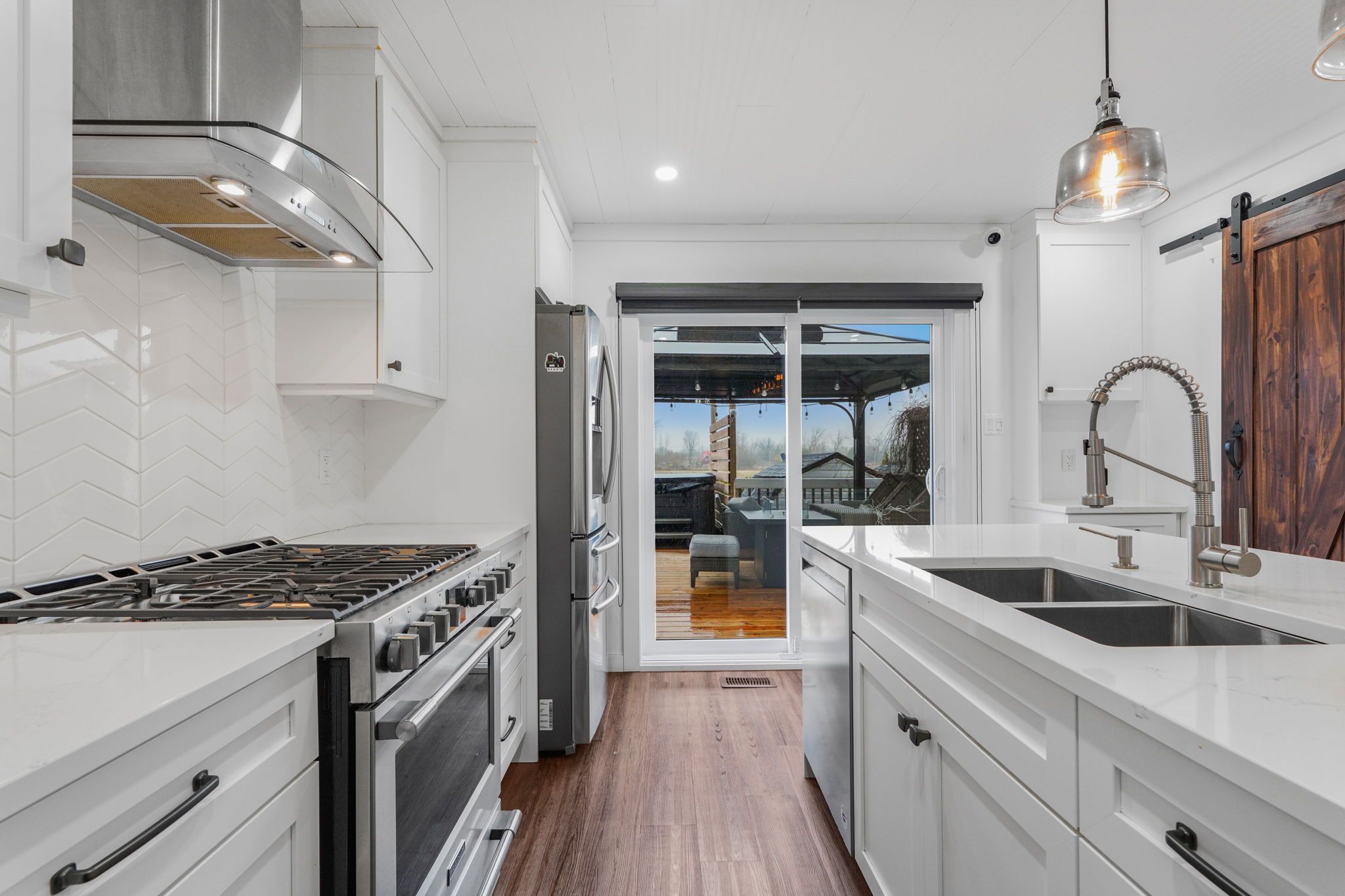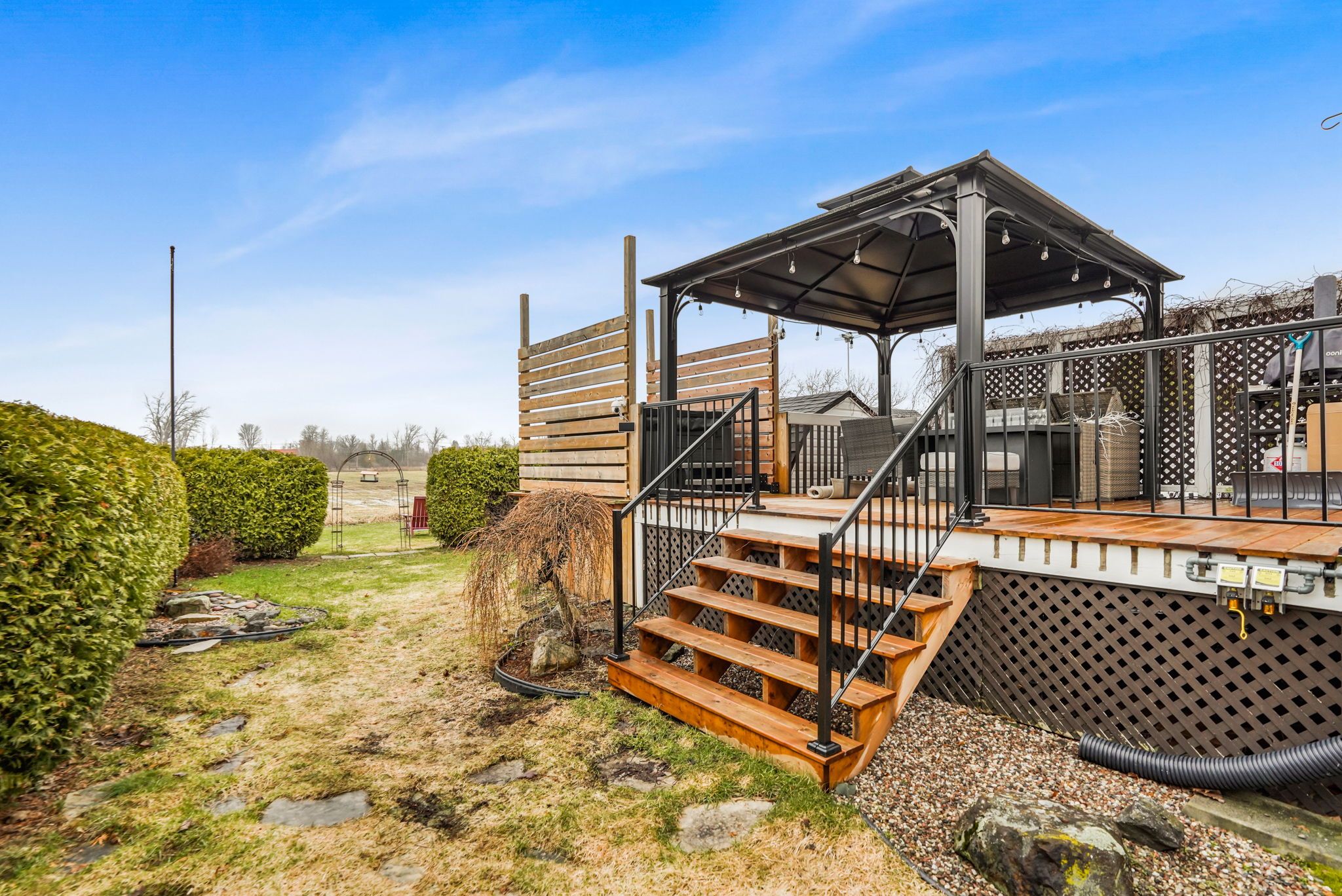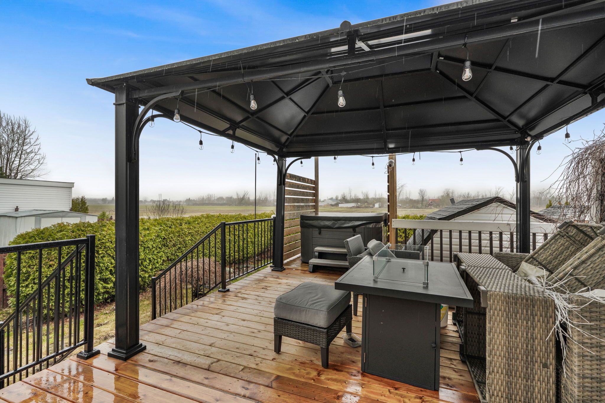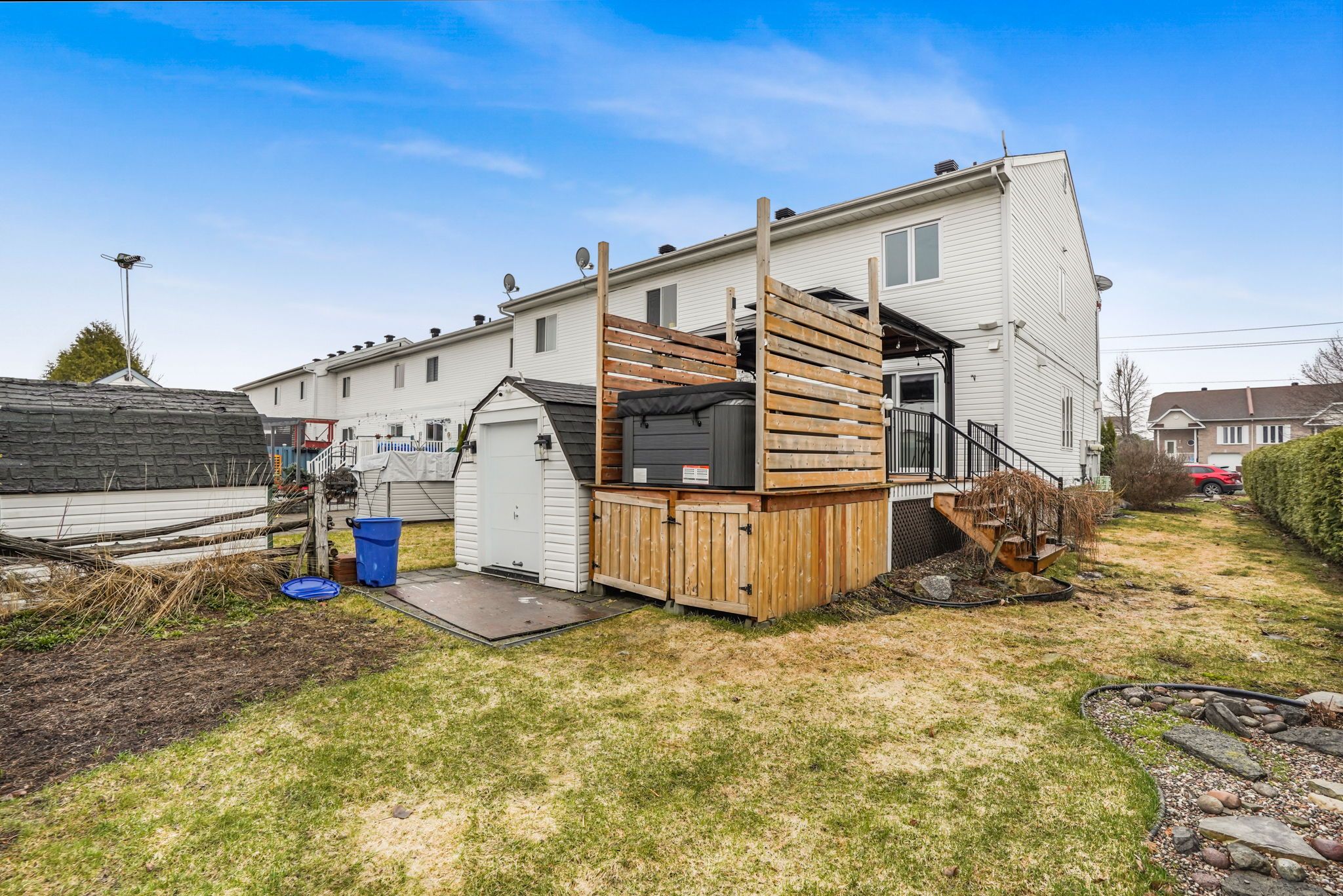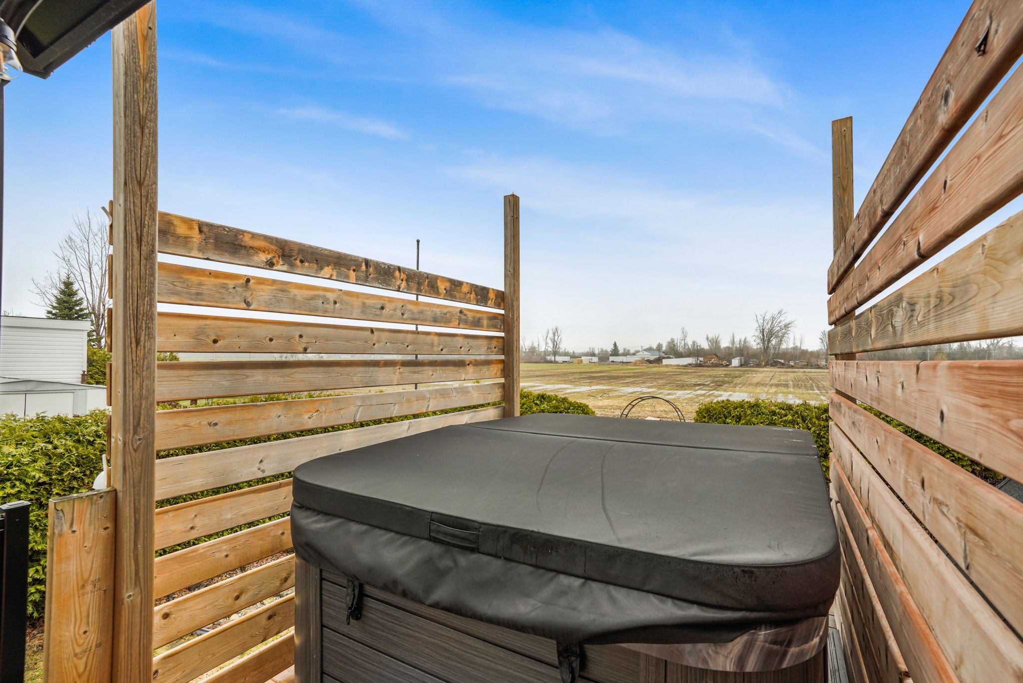 • Private deck with hot tub for relaxation and entertaining.