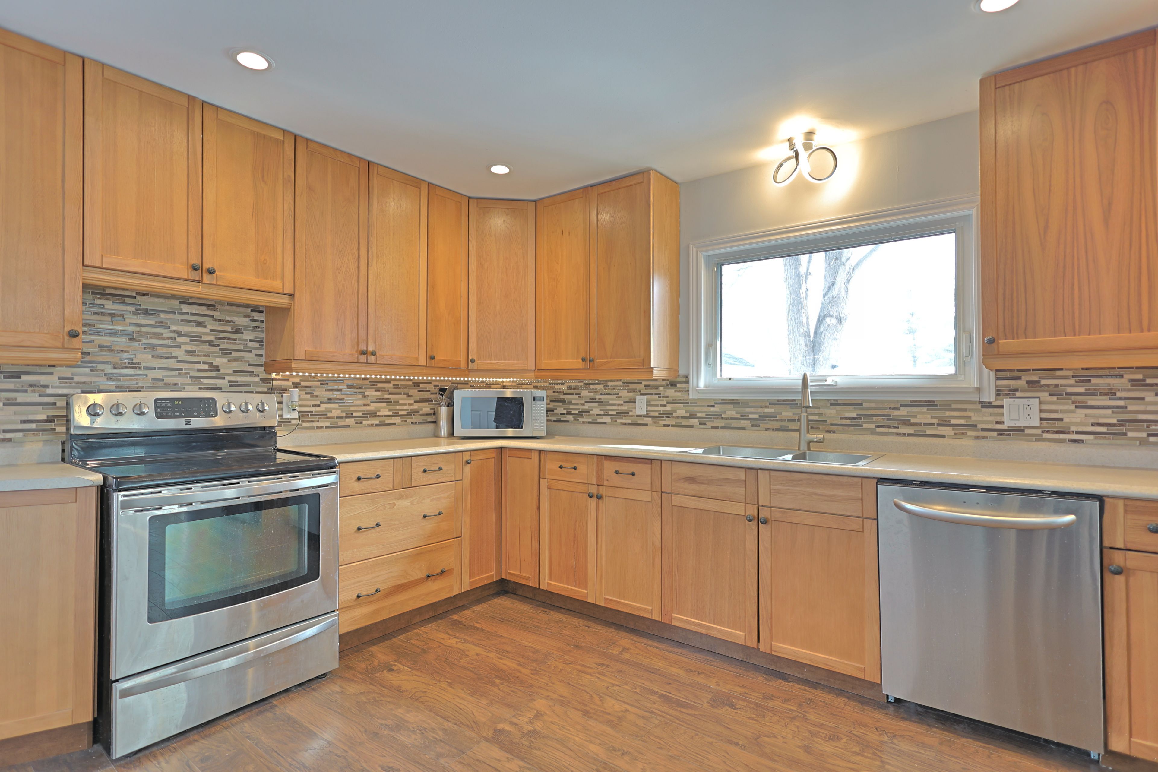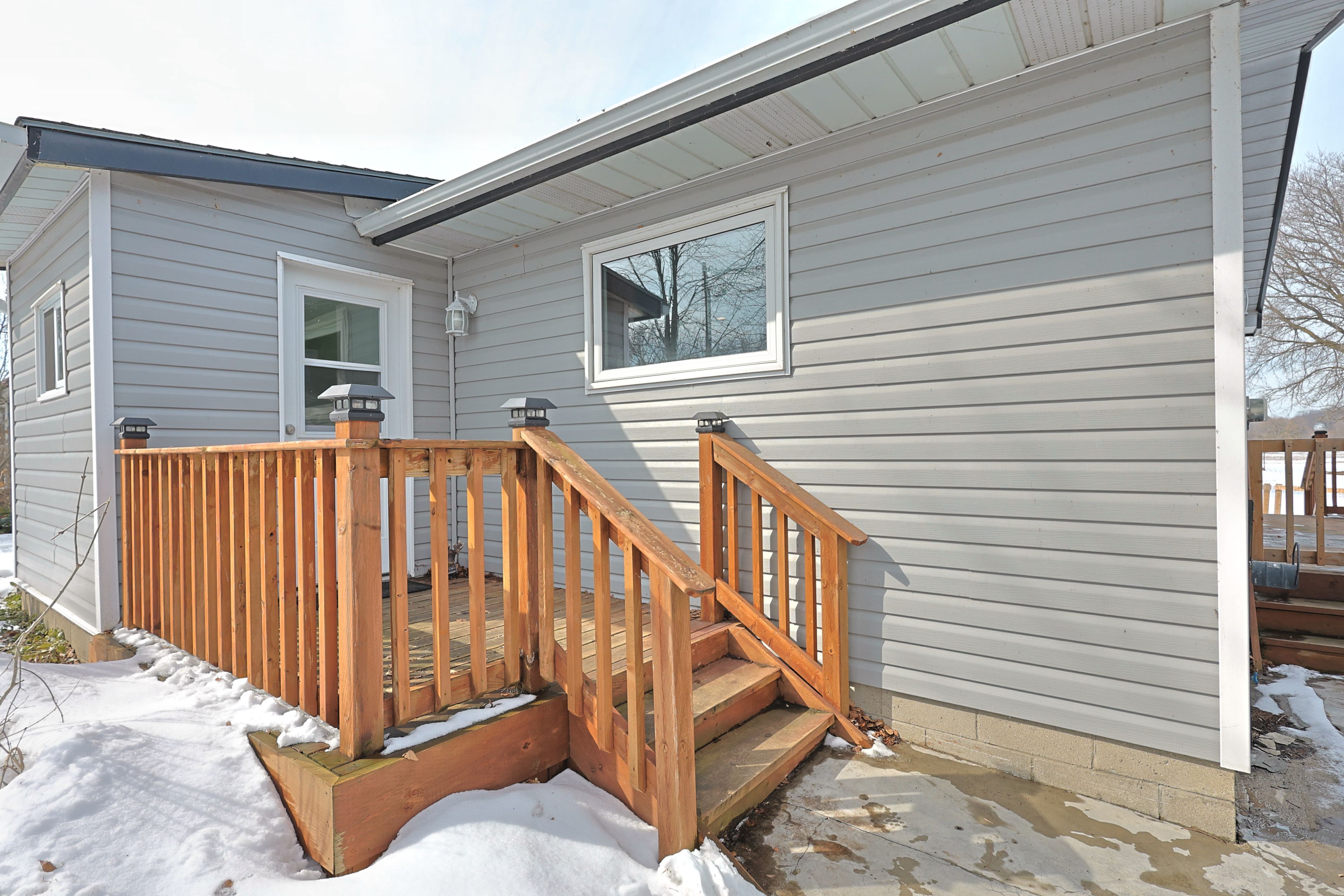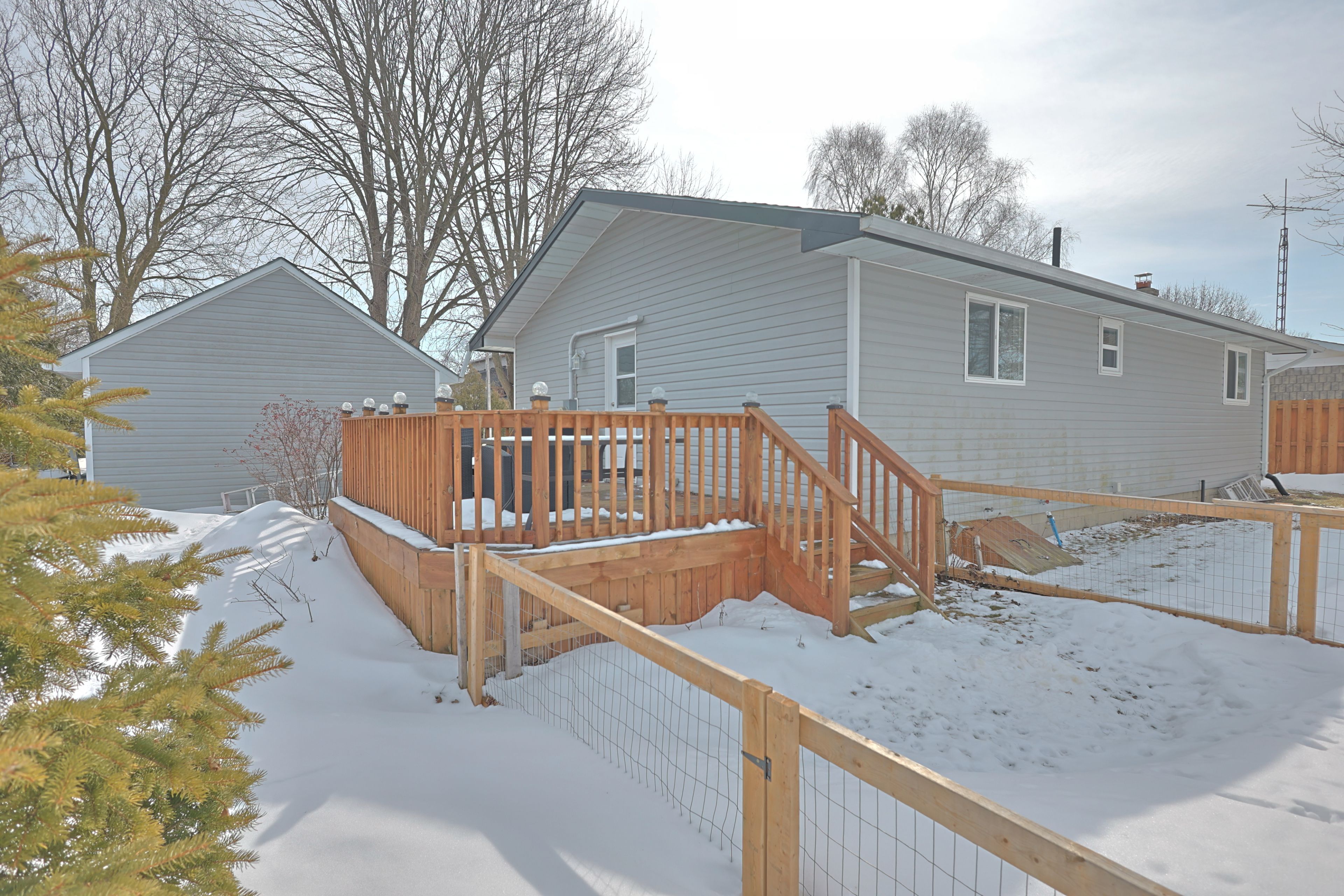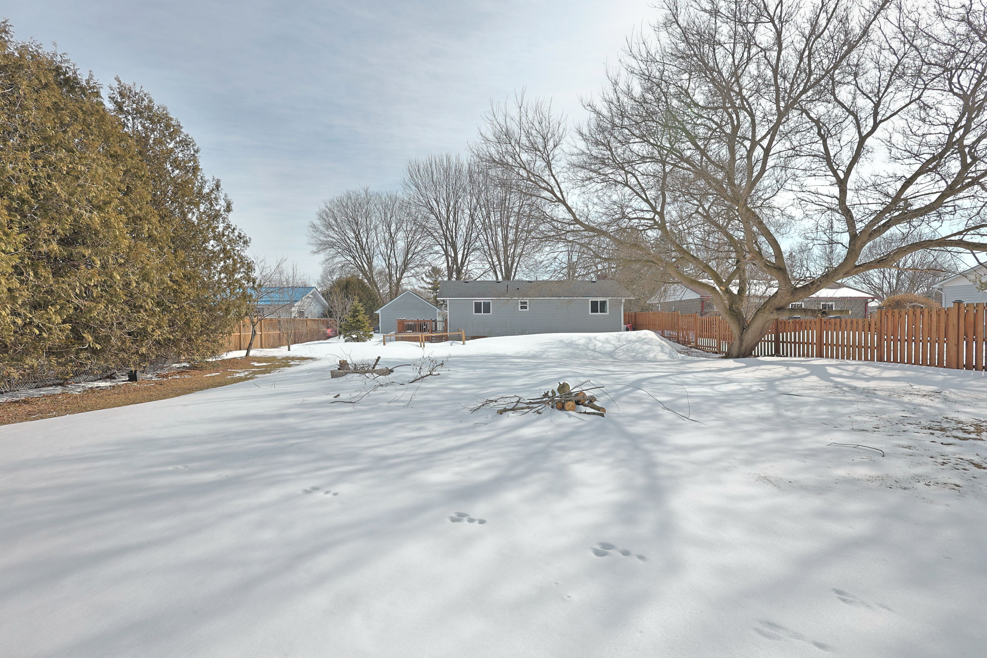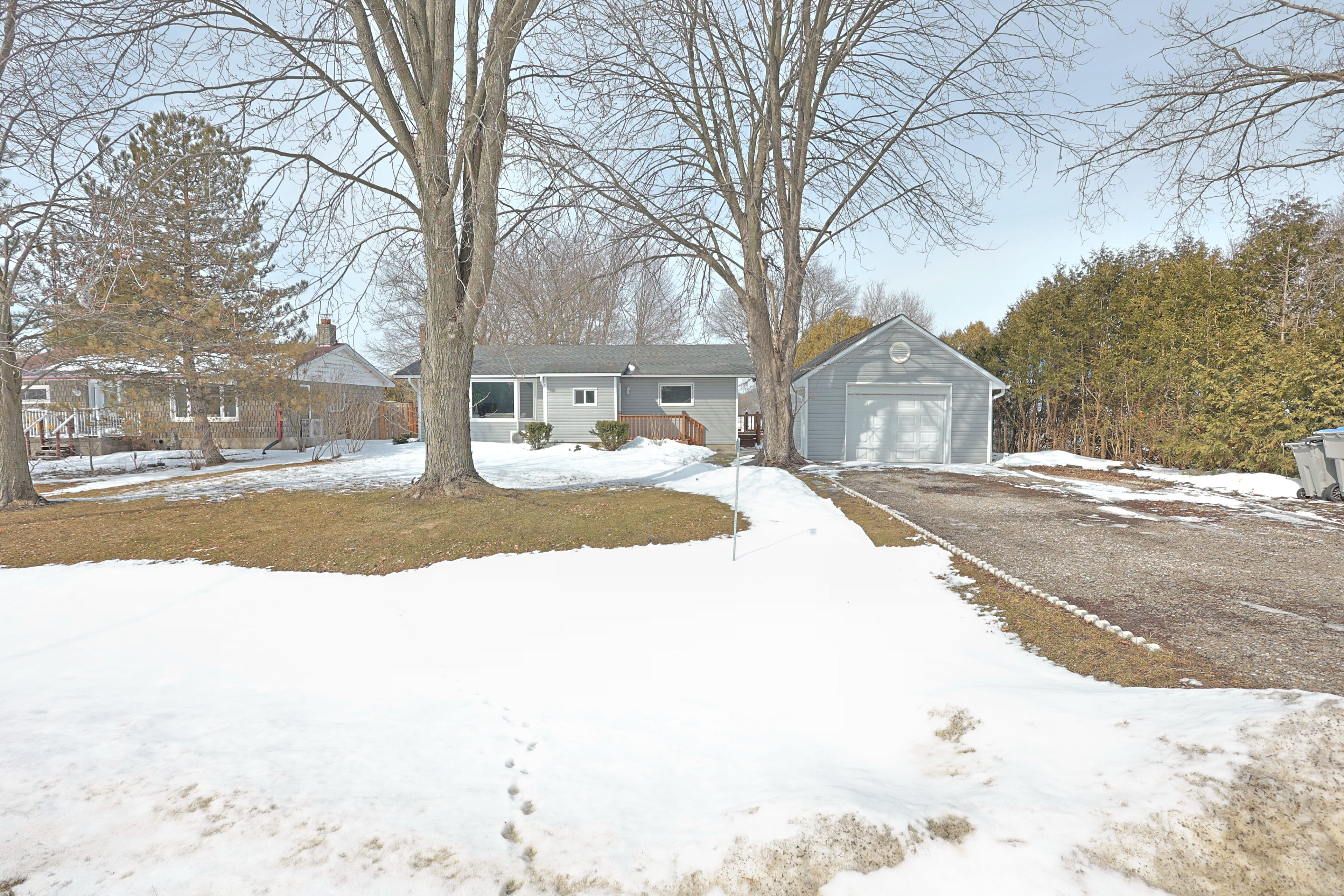 Welcome to 8296 burwell road - a nicely updated bungalow offering modern comfort in a peaceful rural setting near the ausable river. Just a short drive to grand bend, port franks, the pinery provincial park and the beaches of lake huron. Situated on a 75' x 200' private setting overlooking farmland the property gives you space to enjoy the outdoors while spending your evenings around the custom built back yard fire pit. Inside the home offers a bright, open concept design flowing with natural light featuring high quality laminate flooring throughout the main living space. The updated kitchen provides functional workspace and modern appeal with wood cabinetry, tile backsplash, undermount lighting, pot lighting and large pantry cupboard. The living room features a free standing gas fireplace set on a white washed brick feature wall with a large bay window overlooking the front yard. Spacious primary bedroom with large double closet plus additional linen closet. Good sized second bedroom for kids, guests or work from home office space. Enjoy the heated tile floor in the bathroom complete with a large vanity, walk in shower and bathtub. The home makes great use of space to keep life organized including the built in wall closet with bench in the front entrance. Outside you have a great spot to entertain on the side deck overlooking the spacious yard with no rear neighbors. Vinyl siding, double wide gravel drive and insulated detached garage add to the curb appeal as you drive up. This home is perfect for first-time buyers, downsizers, retirees, or those looking for a quiet country retreat. Whether you're relaxing on the deck with your morning coffee or unwinding after a long day, the setting offers true tranquility. Located just a short walk from the ausable river and within easy driving distance to nearby amenities, this property delivers the perfect balance of rural charm and everyday convenience.