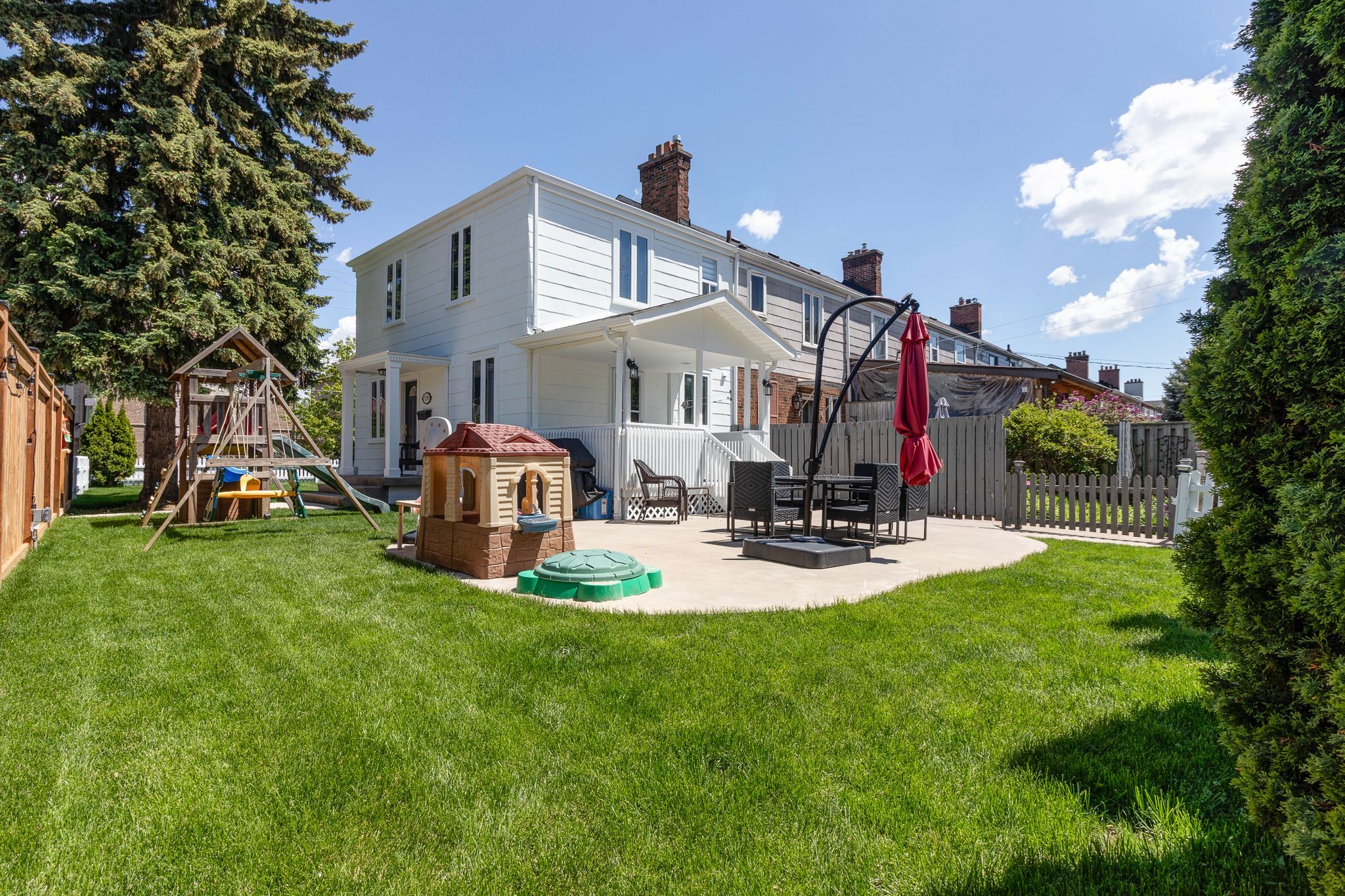 End-unit freehold townhome situated on an exceptional, oversized lot offering a rare blend of privacy and outdoor space. This charming property features a cottage-like feel and has been well maintained with many recent updates, including a new roof, new driveway, newly fenced yard, and a brand-new shed. Ideal for outdoor living and entertaining, the backyard includes a large patio area and massive green space. The home also includes a fully covered front porch, garage, and 5 car parking. Located at the end of the row, this home offers additional privacy and space not typically found in townhomes. A unique opportunity for buyers seeking a freehold property with substantial outdoor amenities and move-in-ready updates.