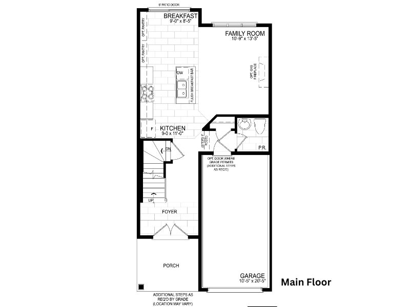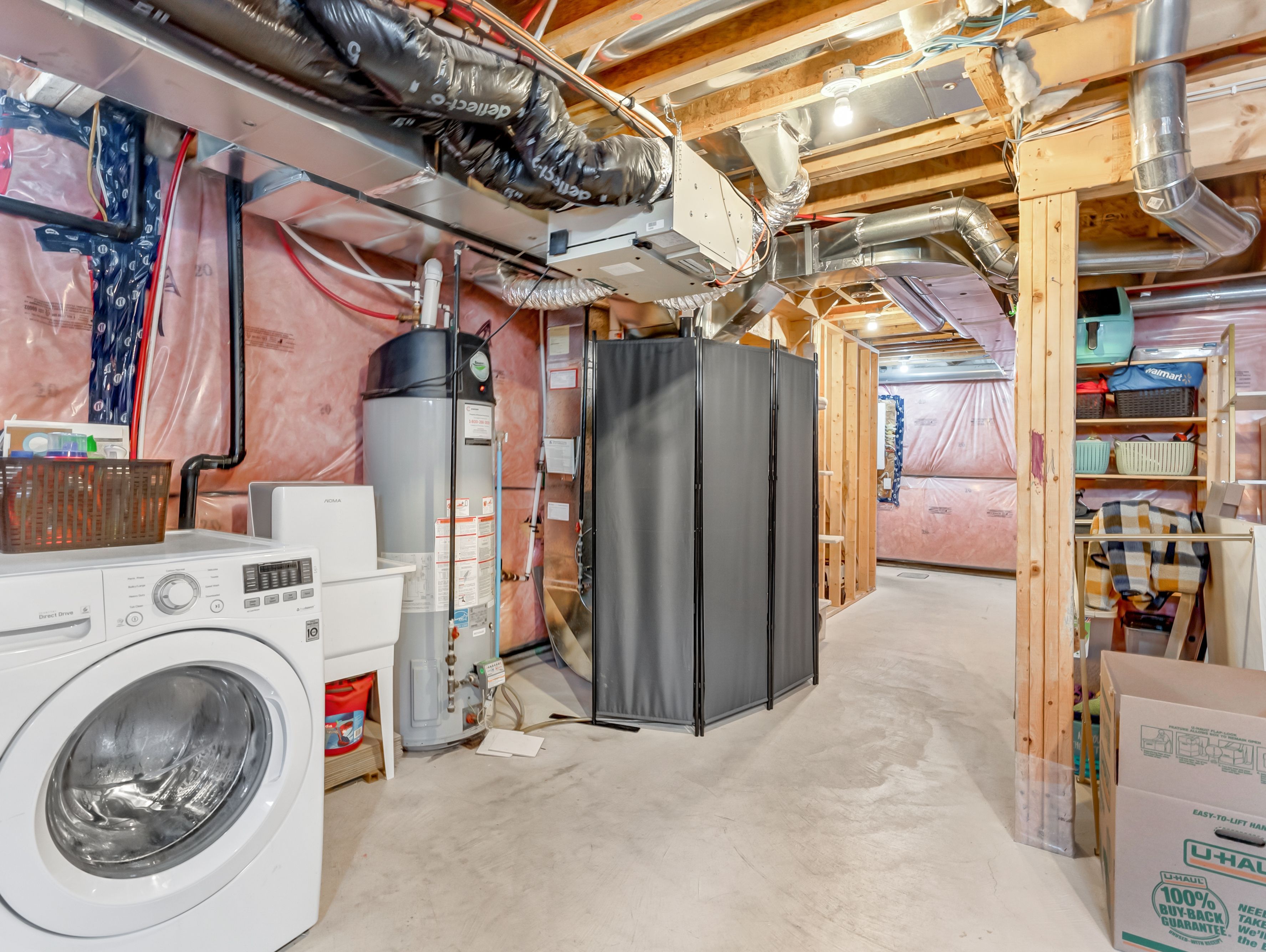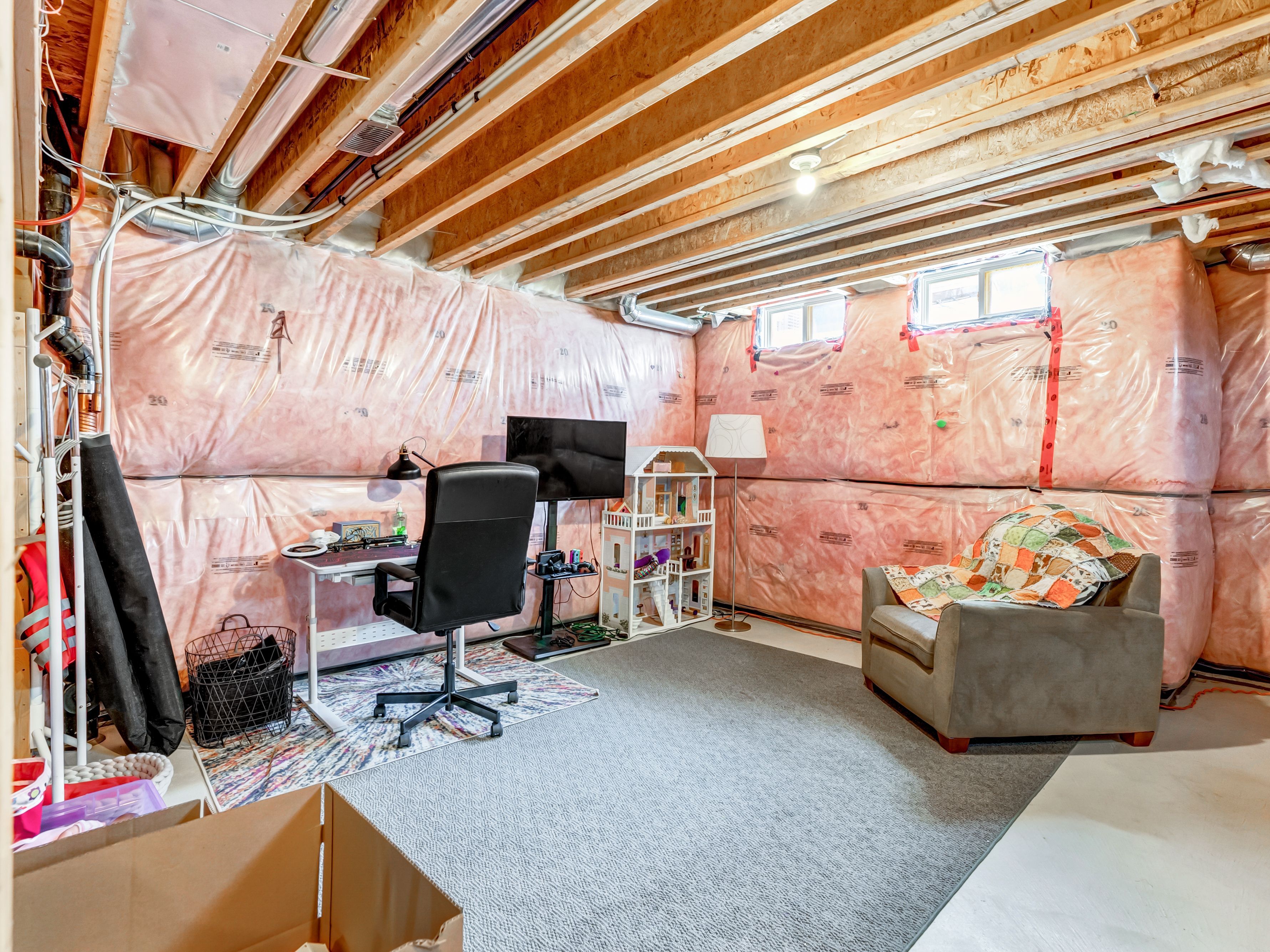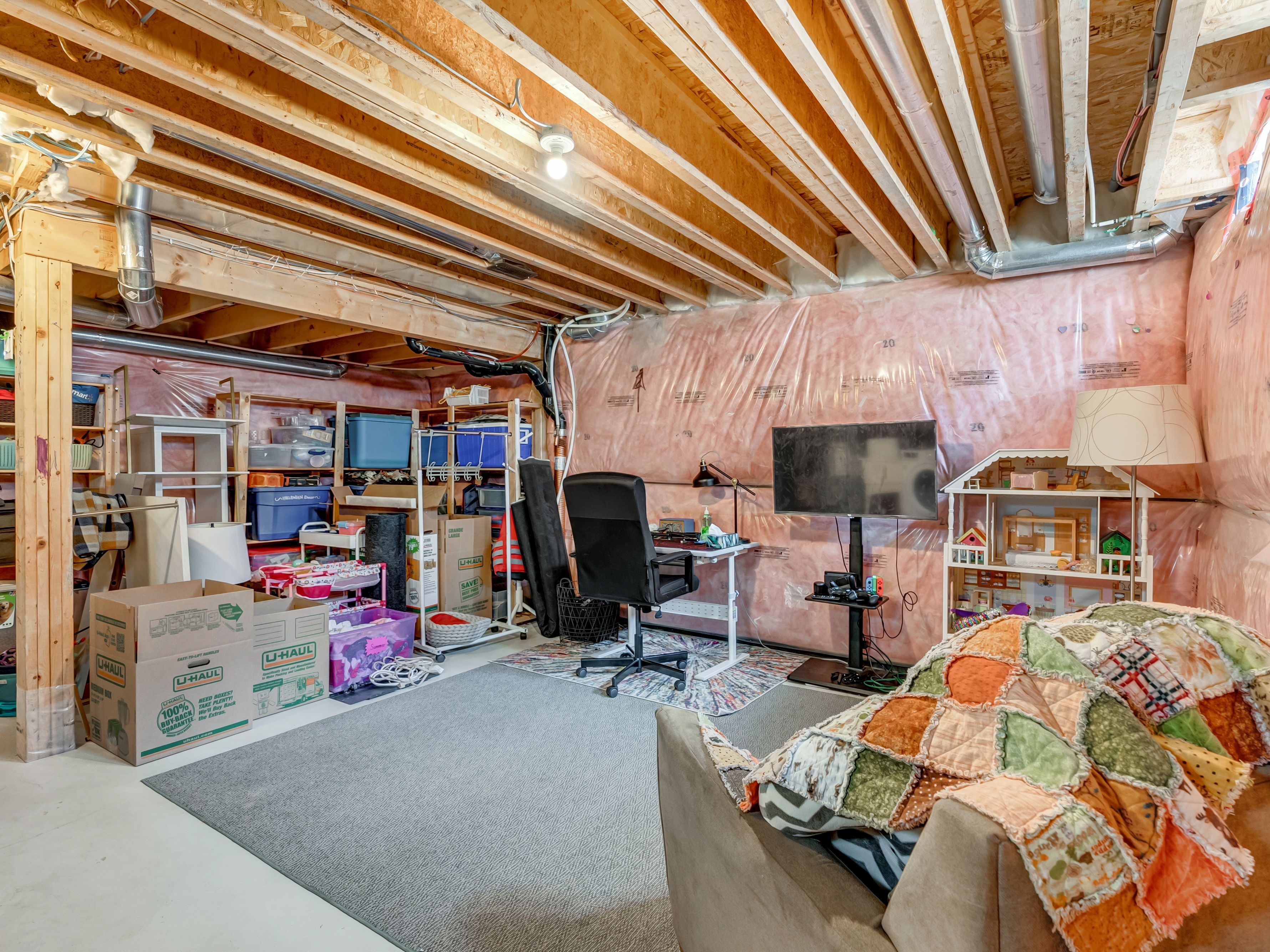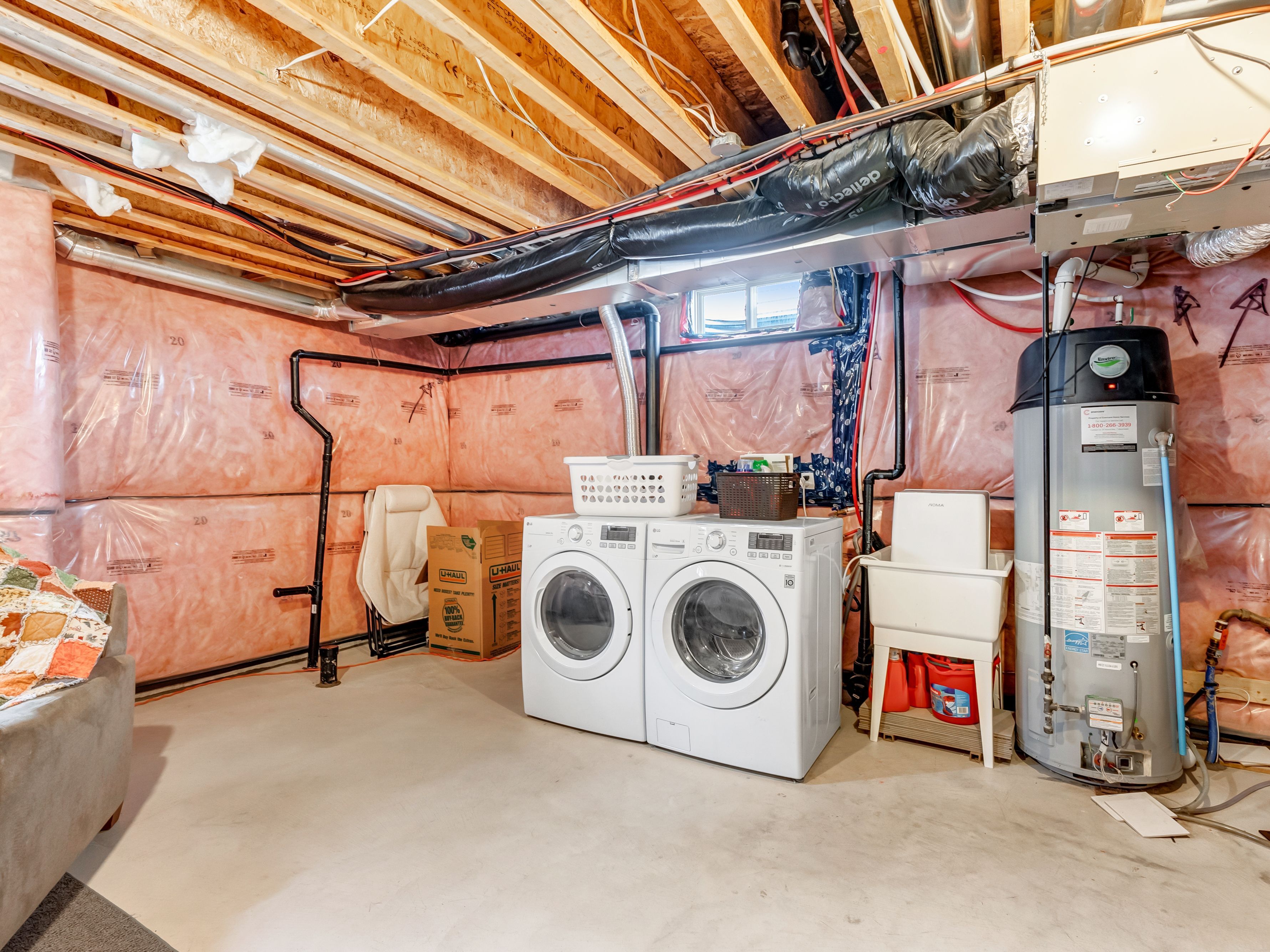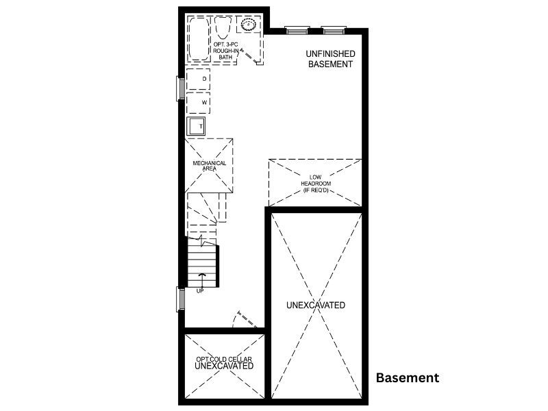 • Unfinished basement with bathroom rough-in for future customization.