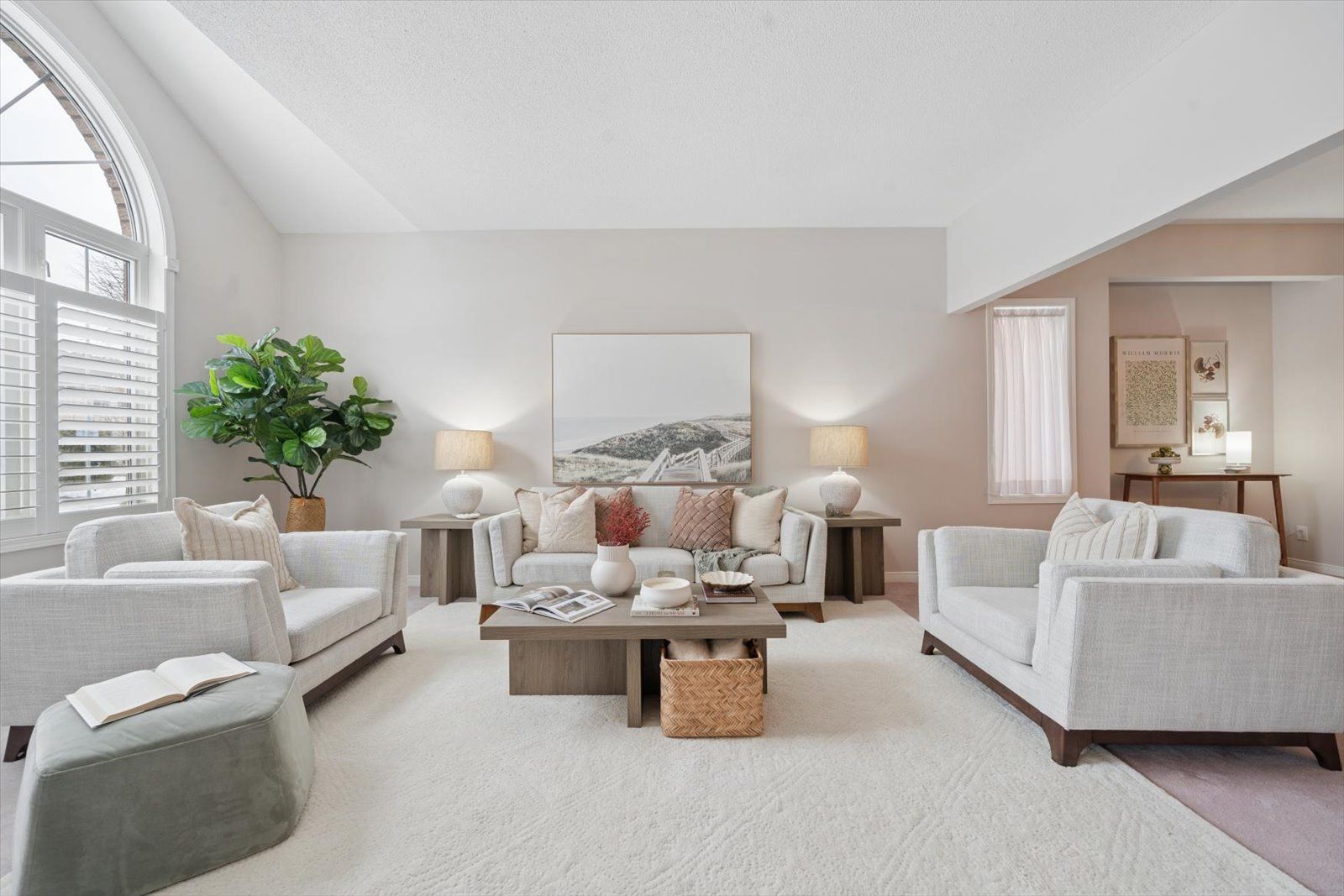 • Bright living and dining area with large windows for natural light.