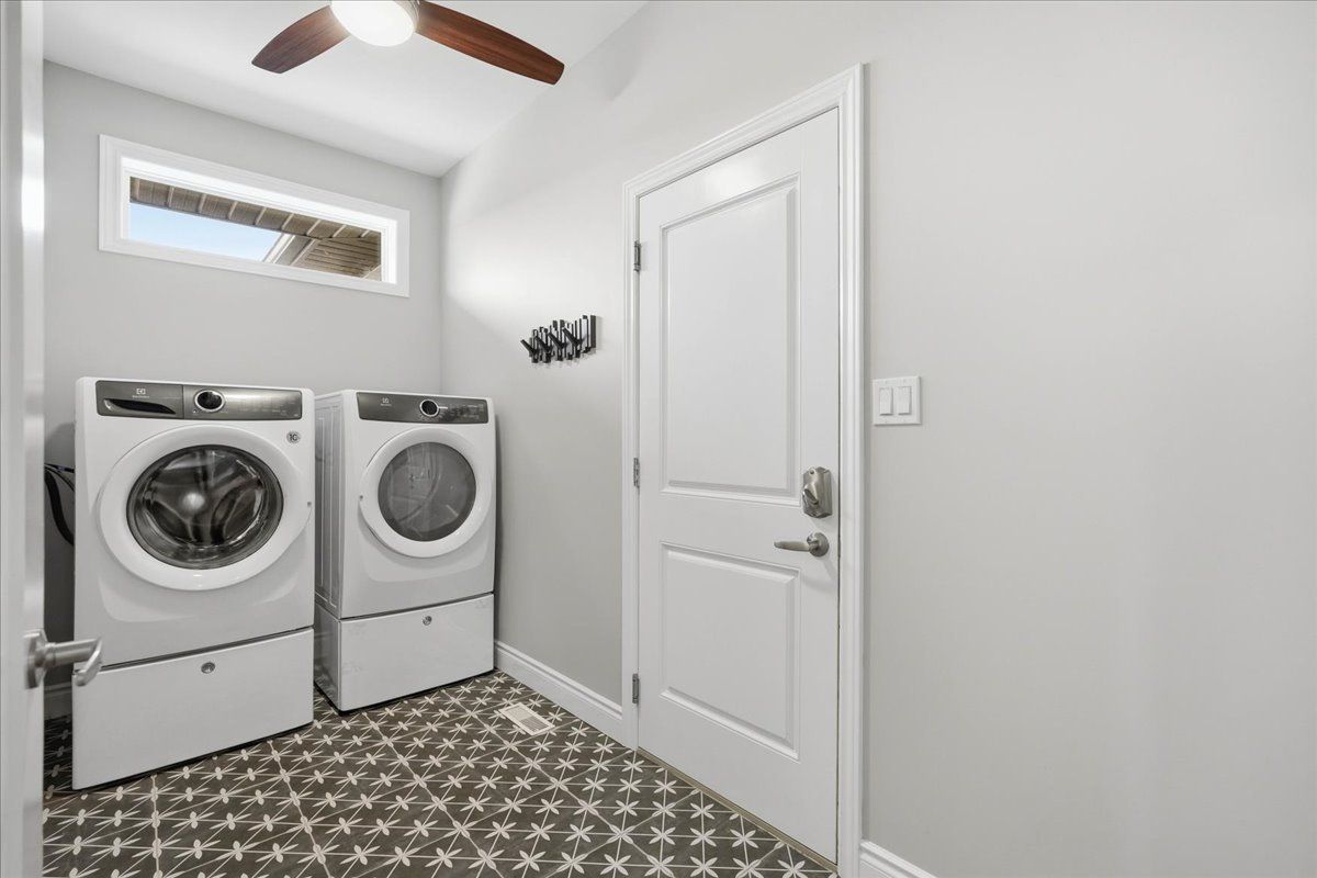 • Maintenance-free yard with irrigation system and fenced backyard for pets.