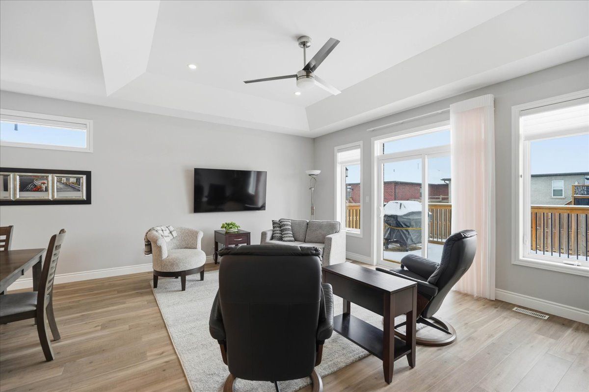 Welcome to easy living in the sought after settlers ridge subdivision. This spacious 4 bedroom, 3 bath brick bungalow with double garage, built in 2020, offers modern design, quality finishes, and a fully finished layout ideal for down sizers, families or anyone seeking low maintenance living - with no construction zone hassle. The beautifully landscaped front entry, framed by lilac and sunburst locust trees, along with the covered porch, creates a warm welcome for guests and the perfect spot to relax with your favourite beverage. Inside, the bright open concept main floor features a spacious kitchen with island and pantry, a dining area that flows effortlessly into the living room with coffered ceiling, and patio doors leading to the back deck - perfect for both everyday living and entertaining. Two bedrooms are located on the main level, including a generous primary suite with walk-in closet and 3-piece en-suite featuring a tile and glass shower. The second bedroom which would also make a great home office has its own walk-in closet. A 4-piece bathroom, plus convenient inside entry from the insulated garage into the laundry room, add to the home's thoughtful and functional design. The builder finished basement extends the living space with two additional bedrooms, a 4-piece bathroom, a spacious rec room, and a large storage/utility/workshop room - ideal for teens, guests,hobbies, or a growing family. Outside, the irrigation system helps make maintenance a breeze, while the fully fenced backyard with gas line for the bbq offers plenty of room to relax, garden, or let children and pets play. Move-in ready and impeccably maintained, with all appliances and bbq included, this beautiful home delivers modern comfort in a fantastic neighbourhood close to parks, shopping, and all the amenities belleville has to offer.