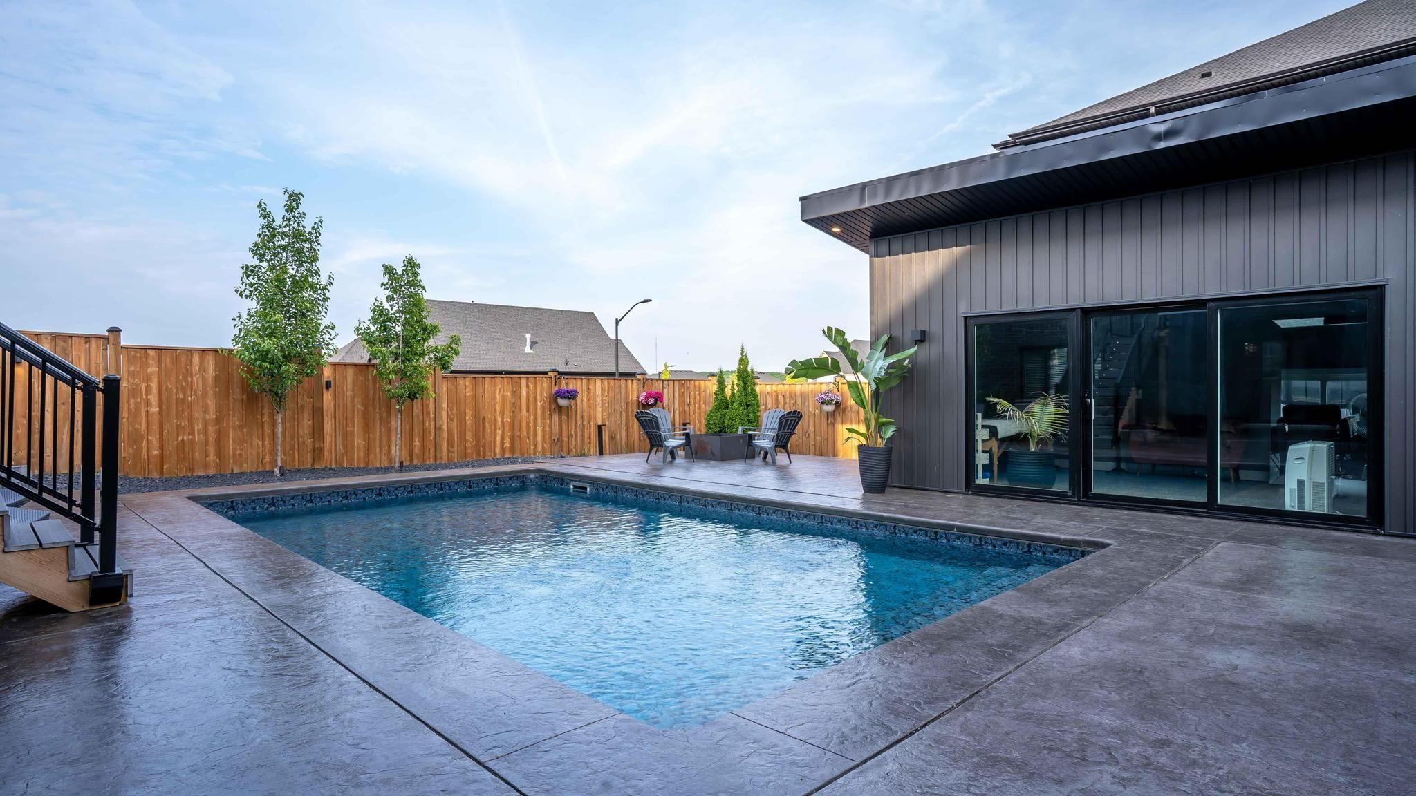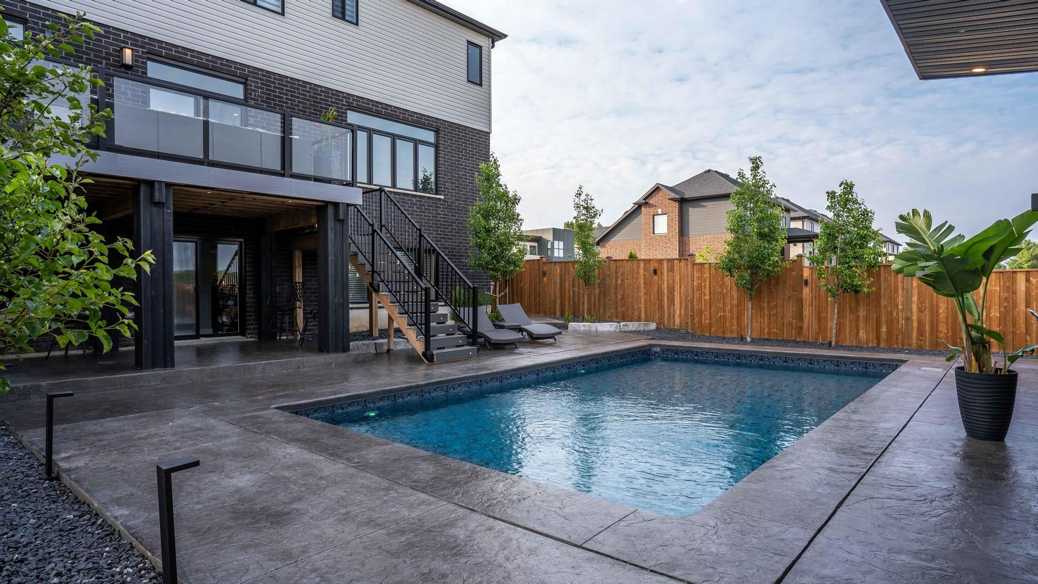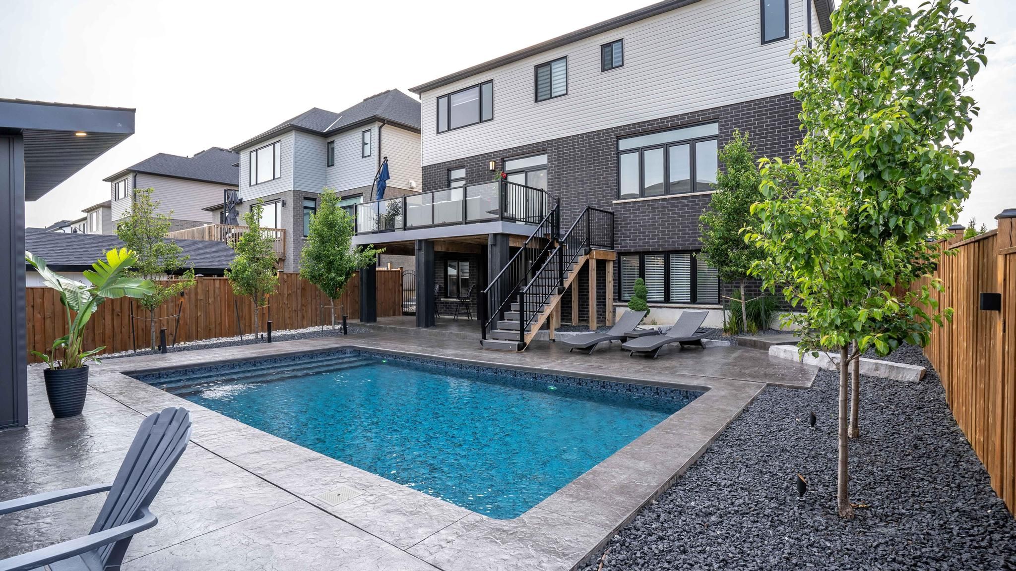 Comfortable, luxury living in this stunning two storey home in kilworth. Situated on a fully fenced corner lot, this modern and elegant home features a walkout basement and a show-stopping backyard retreat. Built in 2022 with extensive upgrades completed in 2023, this 4+1 bedroom, 4. 5 bathroom home offers over 3,000 sq ft of finished living space, including a sleek open-concept main floor with a gas fireplace, formal dining room, and a designer kitchen with built-in stainless appliances, gas stove, quartz island, and access to a tiered vinyl deck overlooking the thames river valley. Upstairs, two of the four bedrooms have private ensuites, including a luxurious primary suite with walk-in closet and spa-style 5-piece bath. The third and fourth bedroom share access to a jack-and-jill style ensuite bathroom. The finished walkout basement includes a custom bar, family room, gym, dedicated wine cellar, guest bedroom, and 3-piece bath with heated floors. Step outside to your private oasis with a heated inground pool (programmable pump, puck chlorinator, 300,000 btu heater), fully powered pool cabana with gas heat, a/c, water & internet. Outdoor living enhanced by the professionally designed landscaping with wifi-controlled lighting and a lawn sprinkler system for easy maintenance. The immaculate heated, 2-car garage is in showroom condition with direct access to the main floor laundry and plenty of space for storage or hobby use. Kilworth offers a peaceful, family-friendly lifestyle just minutes from london's west end amenities, trails, parks, and the thames river.