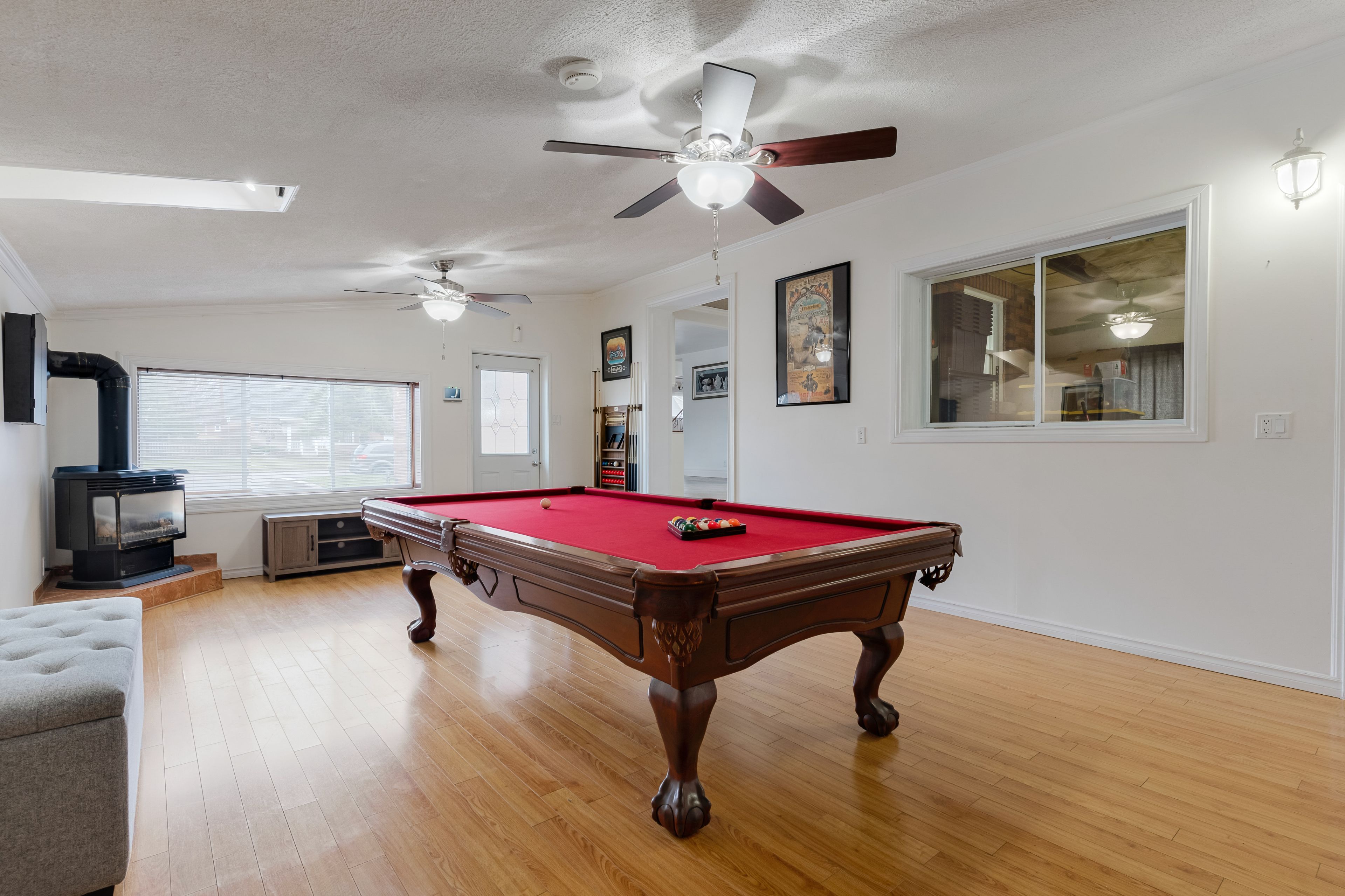 A story of home: 83 dunsdon street. 83 dunsdon street, a charming 1. 5-storey nestled in the highly desirable north end of brantford, where over 2,400sqft of versatile living space awaits your next chapter. From the moment you arrive, the property's unique features stand out, including 2 private driveways & a drive-through detached garage that offers the perfect workshop or storage solution for a hobbyist. Inside, the main floor unfolds with a sense of connection and ease, featuring a spacious kitchen with ample counter space that flows naturally into a large dining area, ideal for hosting holiday meals or quiet morning coffees. You are spoiled for choice when it comes to relaxation, with both a formal living room and a cozy family room centered around a natural gas fireplace, while a bright sunroom provides a peaceful vantage point to admire the backyard. The layout is thoughtfully designed for flexibility, offering 2 main-floor bedrooms (one currently serving as a convenient laundry suite) and a full 3pc bath, ensuring comfort for multi-generational living. Venture to the upper level to discover a true primary retreat, a private & serene escape tucked away from the hustle and bustle of the rest of the home features a 3pc ensuite. The story continues in the finished lower level, which expands your living options with a 3rd full bathroom, a generous recreation room perfect for a home theater or gym, & the home's original laundry area. Stepping outside, the fully fenced backyard transforms into your own private oasis, complete with 2 secure gates & a refreshing above-ground pool paired with an expansive deck, perfect for cooling off on those golden summer afternoons. Perfectly situated near schools, parks, major shopping & transportation.*roof 2017, furnace 2019, asphalt driveway on the right side w/exposed aggregate curbs, as well as updated fascia, soffits w/lights, & eaves 2025. 4 new windows on the left side, while the remaining windows were professionally capped.