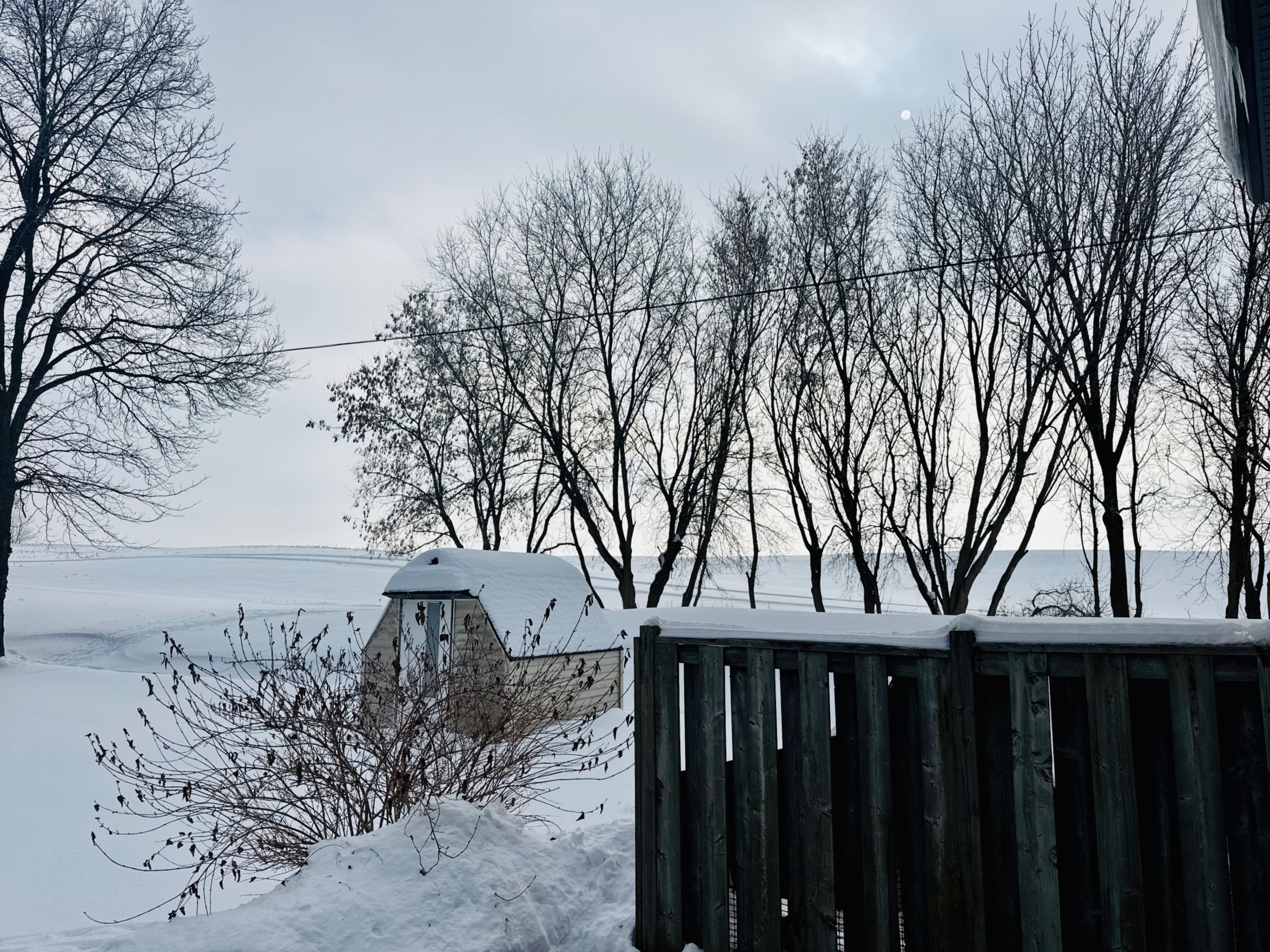 • Good sized backyard backing onto farmer's fields with a spacious shed.